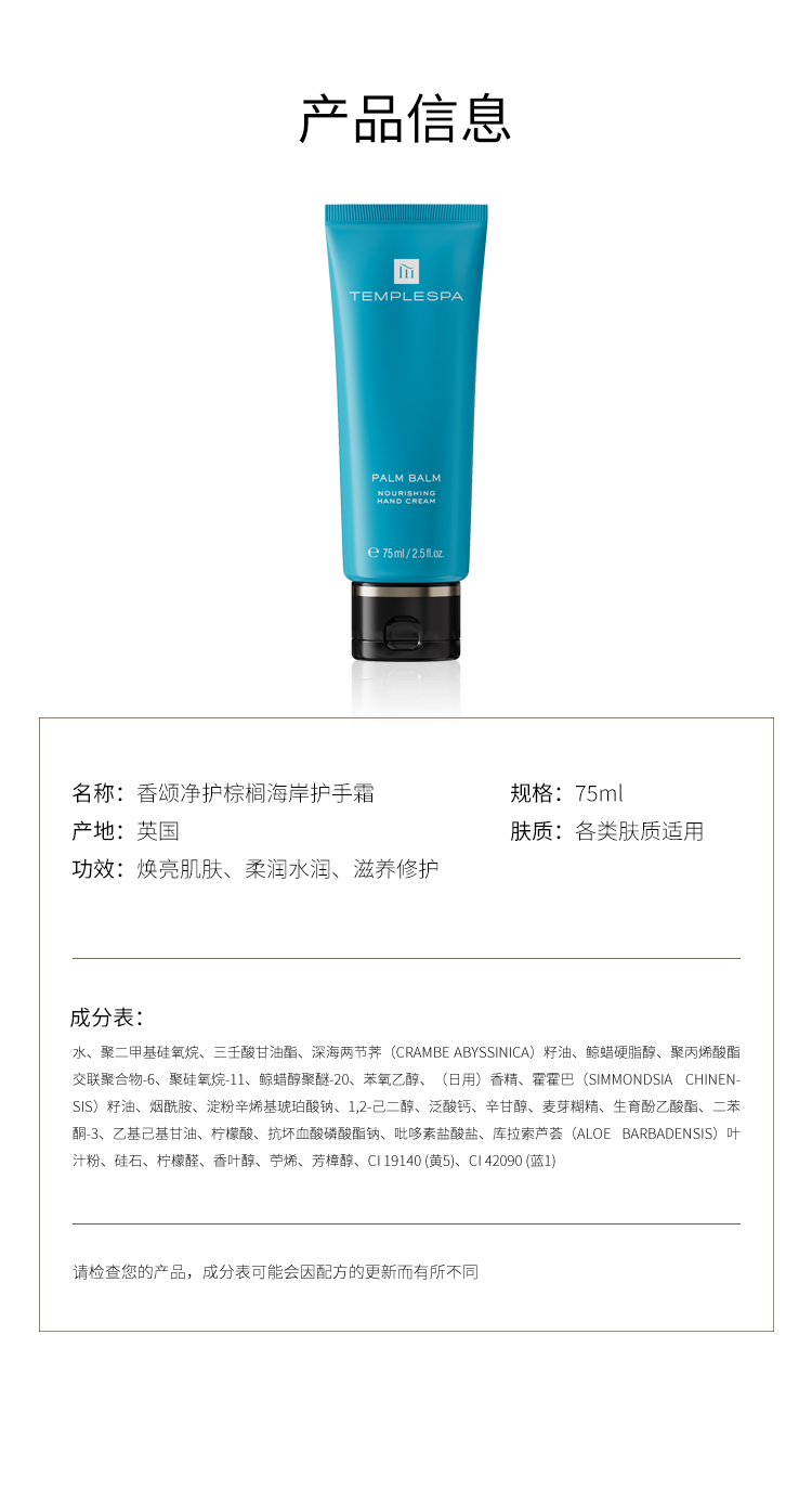 TEMPLESPA 香颂净护棕榈海岸护手霜75ml