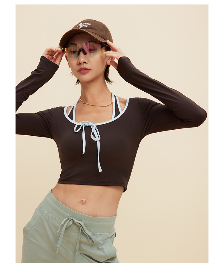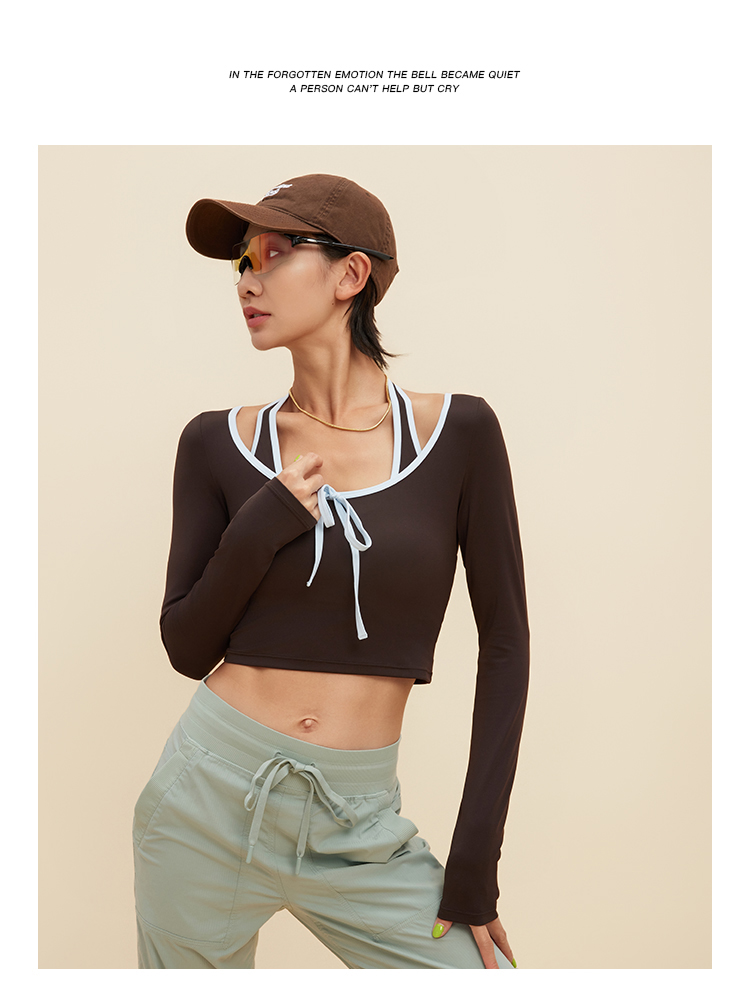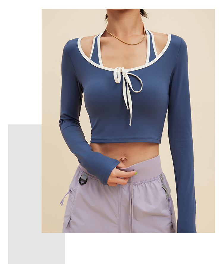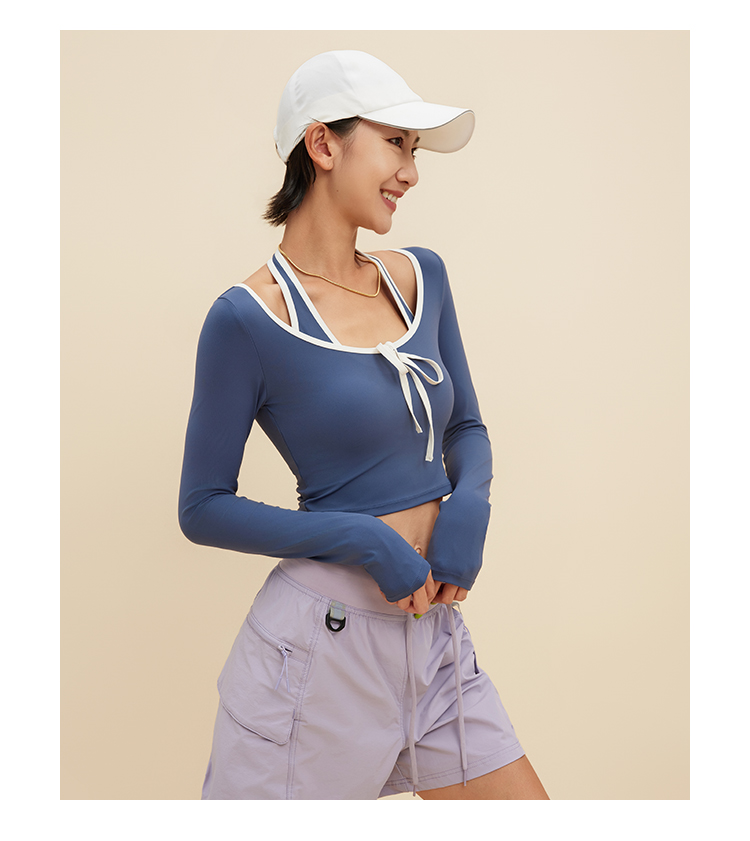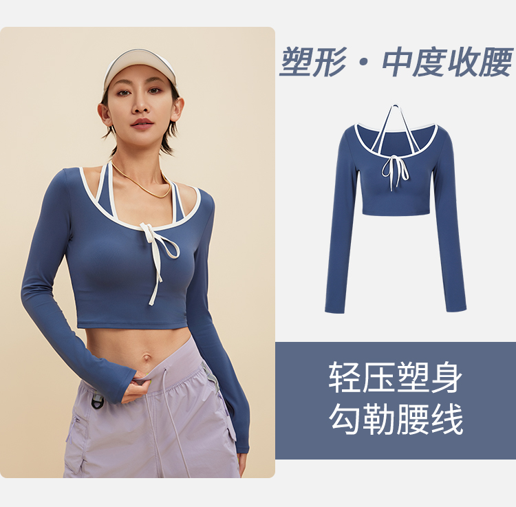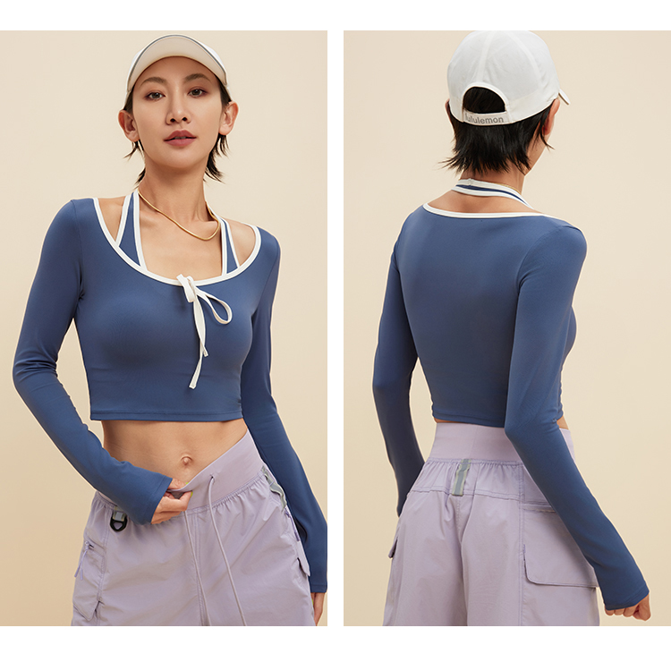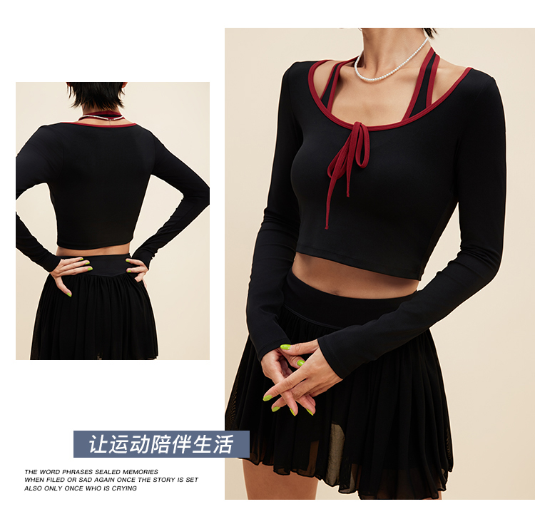 【限时秒】YOGACODE【火树银花系列】假两件挂脖长袖瑜伽服女固定杯短款运动上衣DWT125654