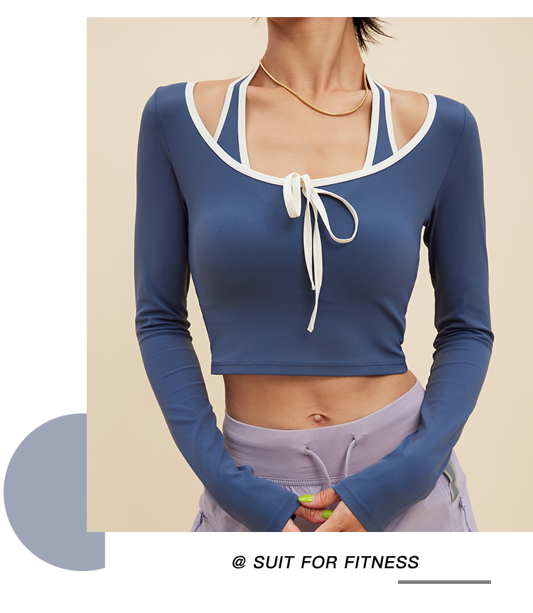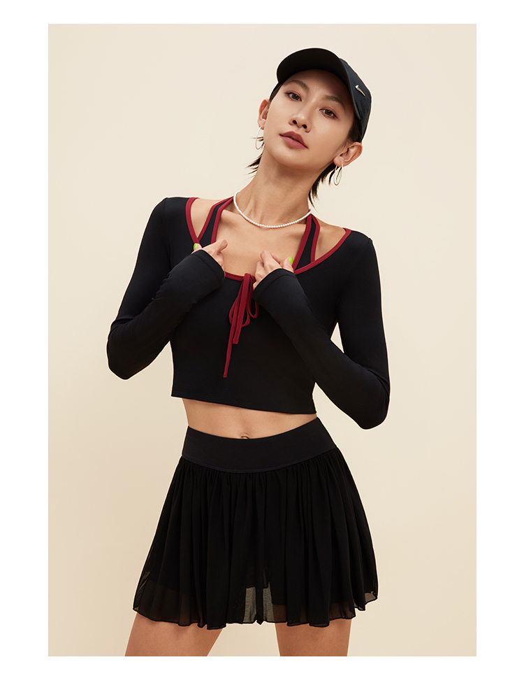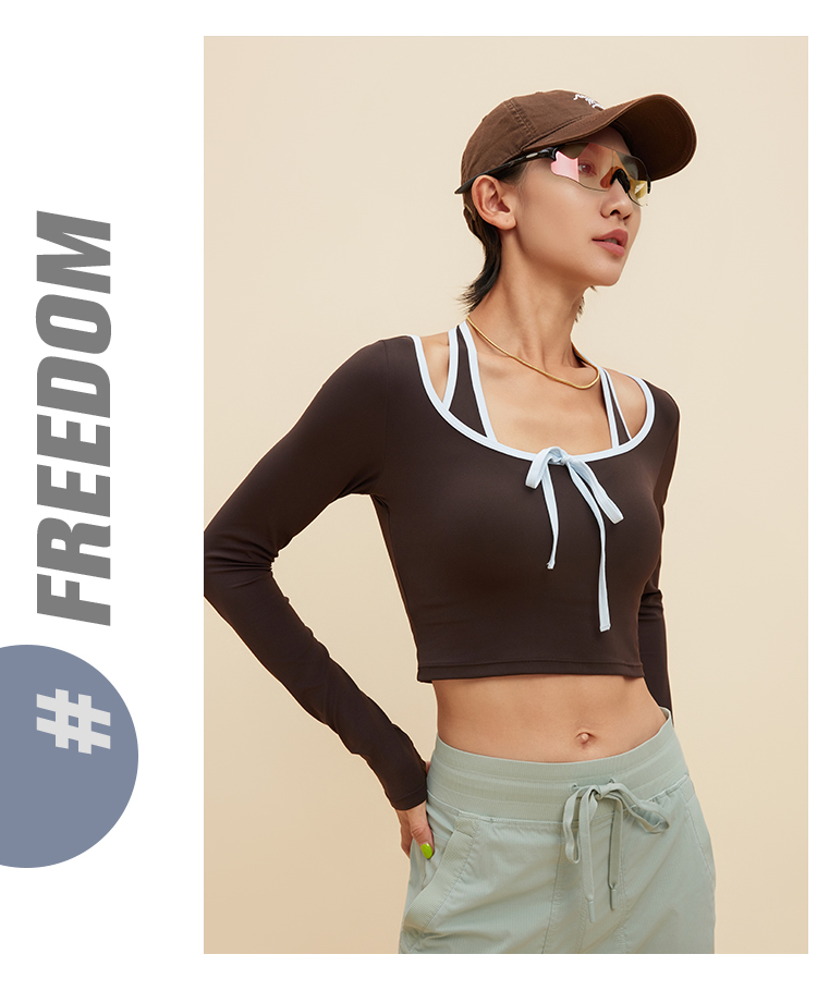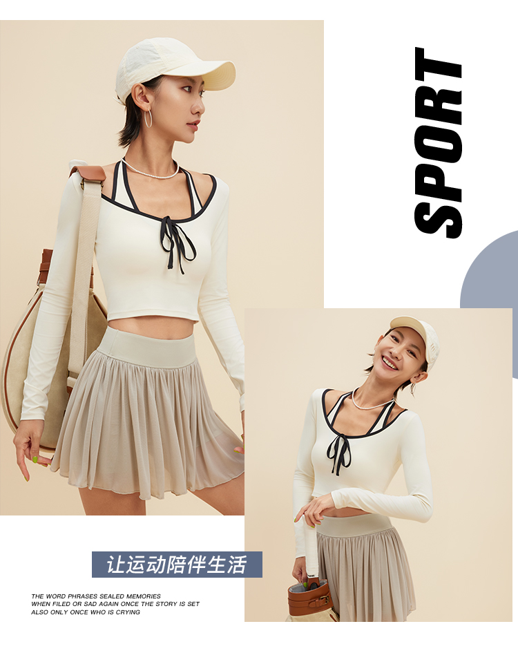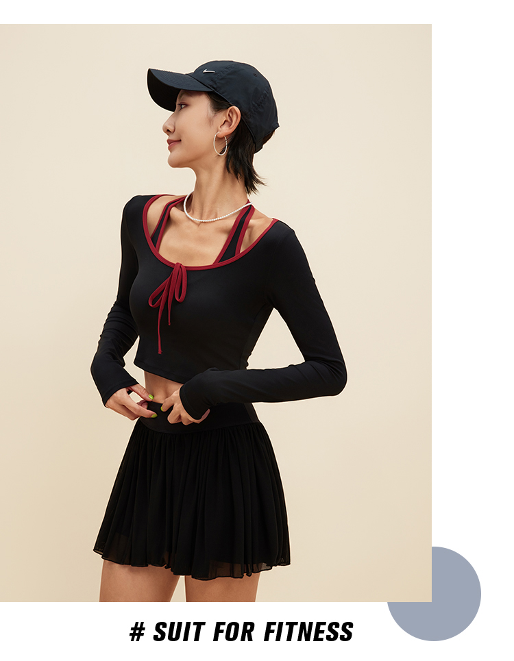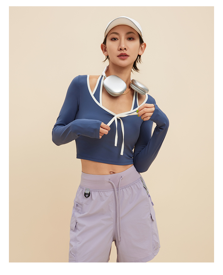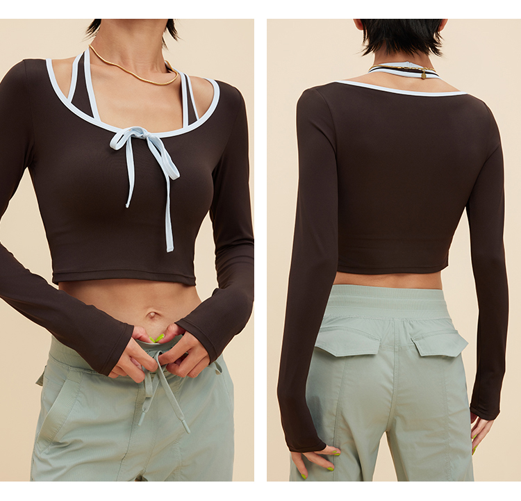 【限时秒】YOGACODE【火树银花系列】假两件挂脖长袖瑜伽服女固定杯短款运动上衣DWT125654