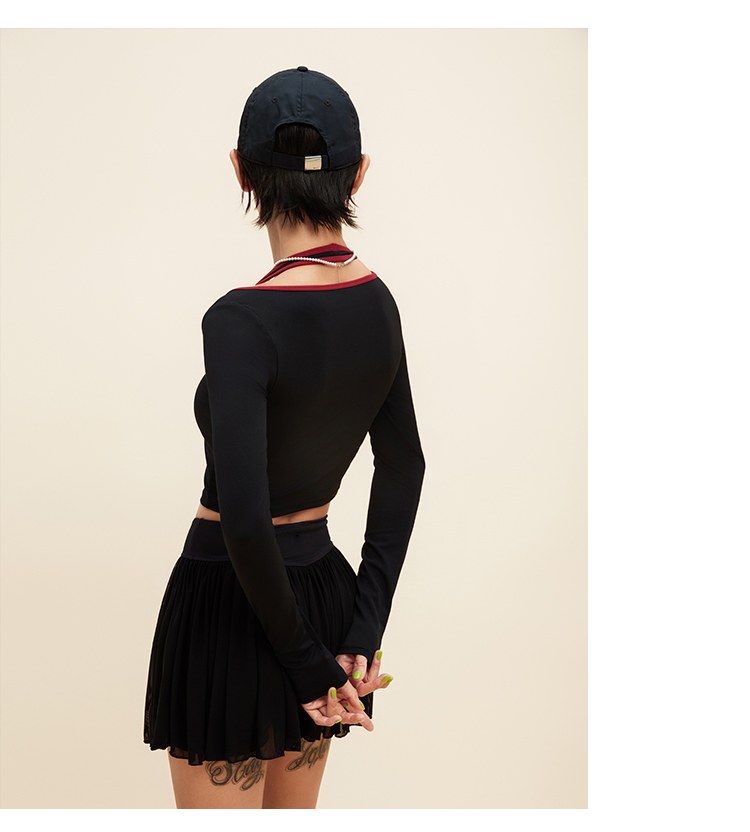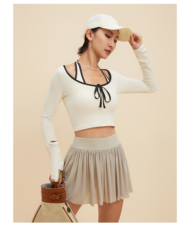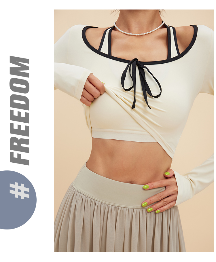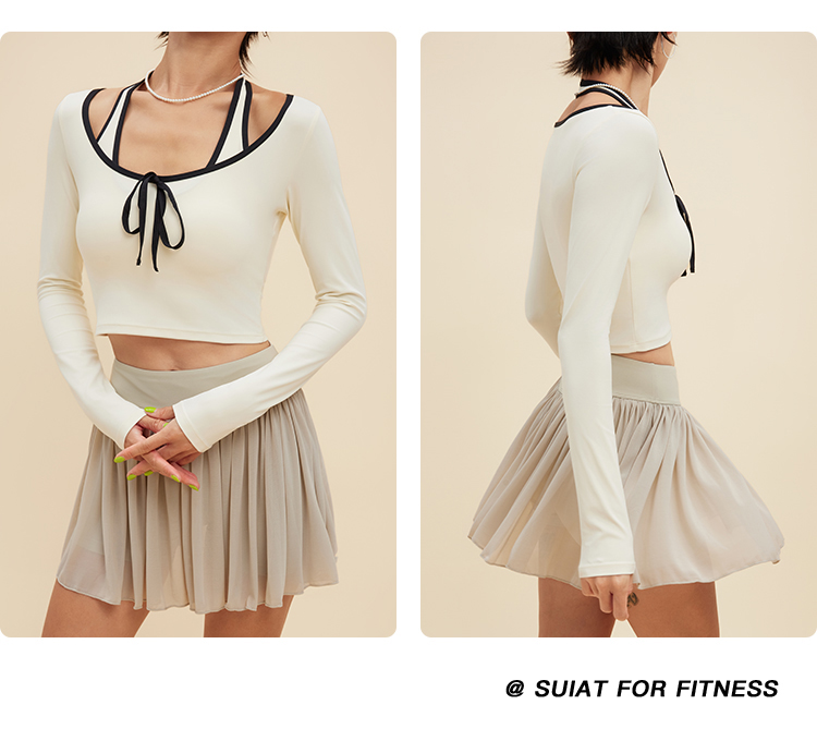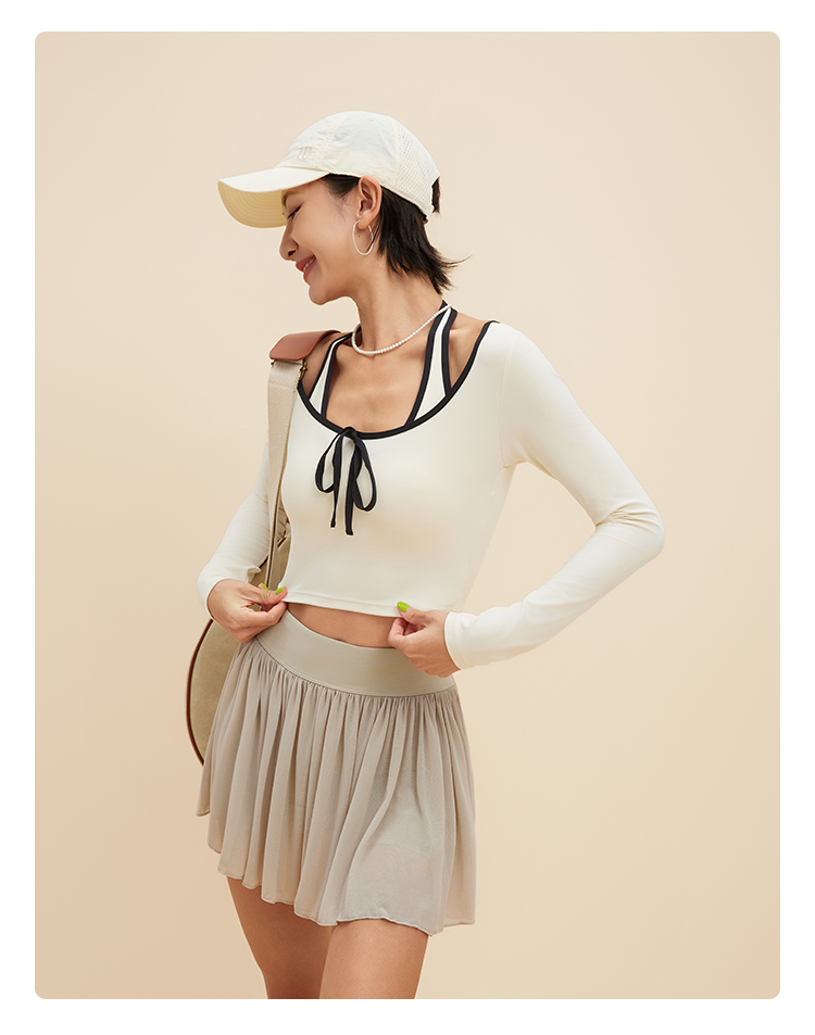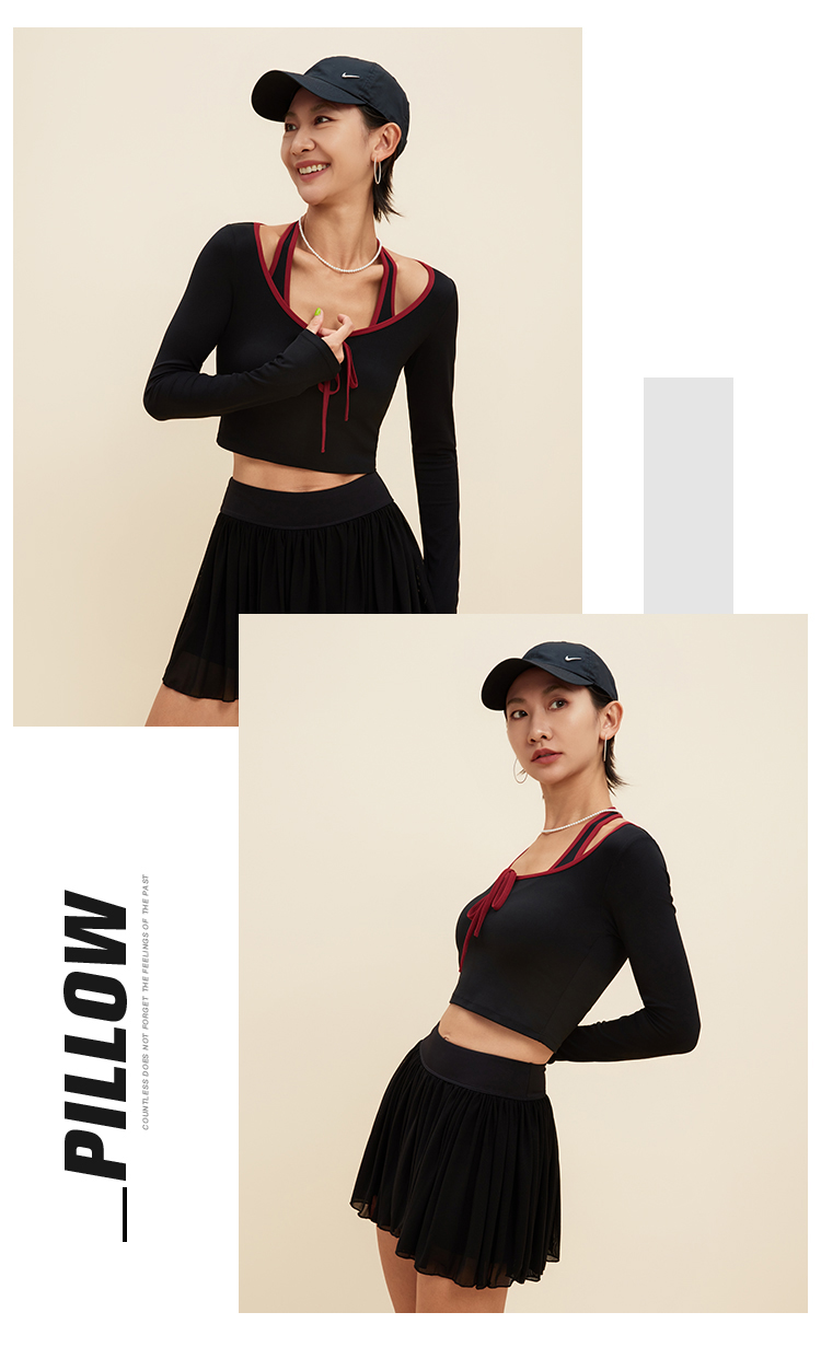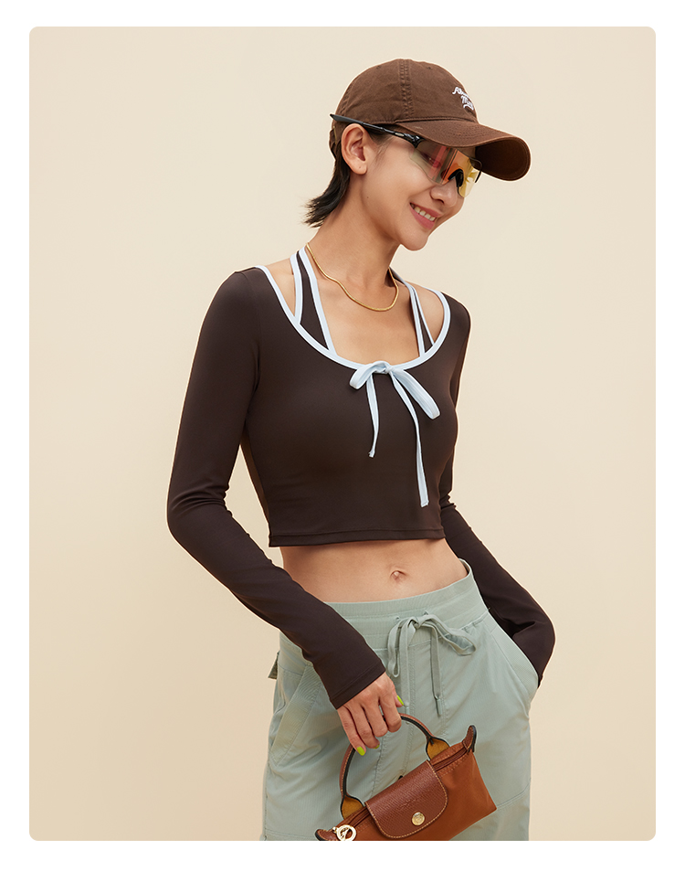 【限时秒】YOGACODE【火树银花系列】假两件挂脖长袖瑜伽服女固定杯短款运动上衣DWT125654
