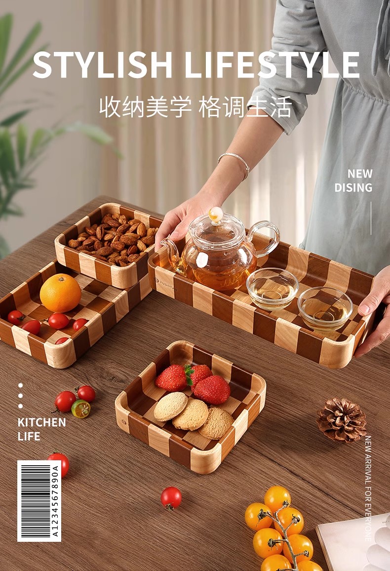 棋盘格坚果盘(方形款)