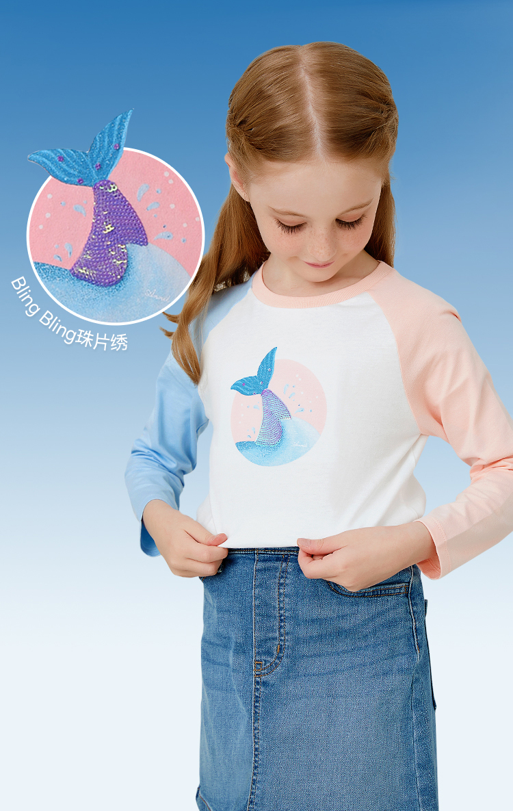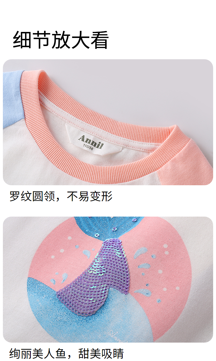 女童圆领长袖T恤春季新款安奈儿童装EG611616