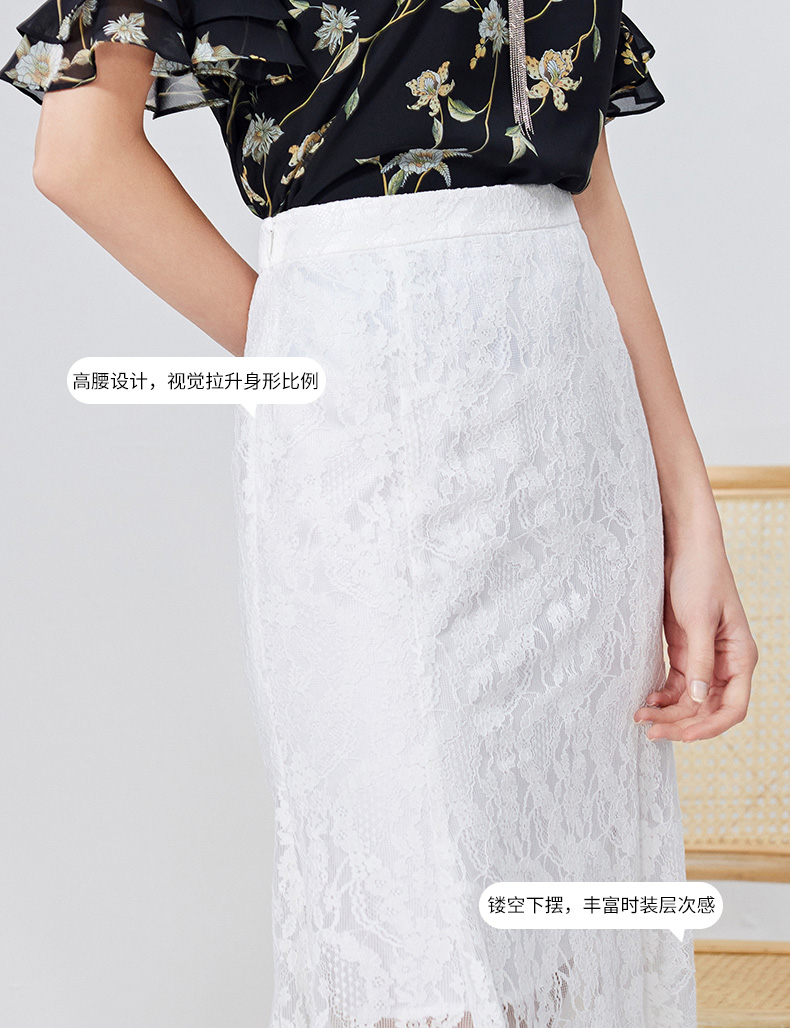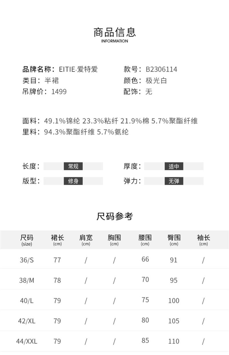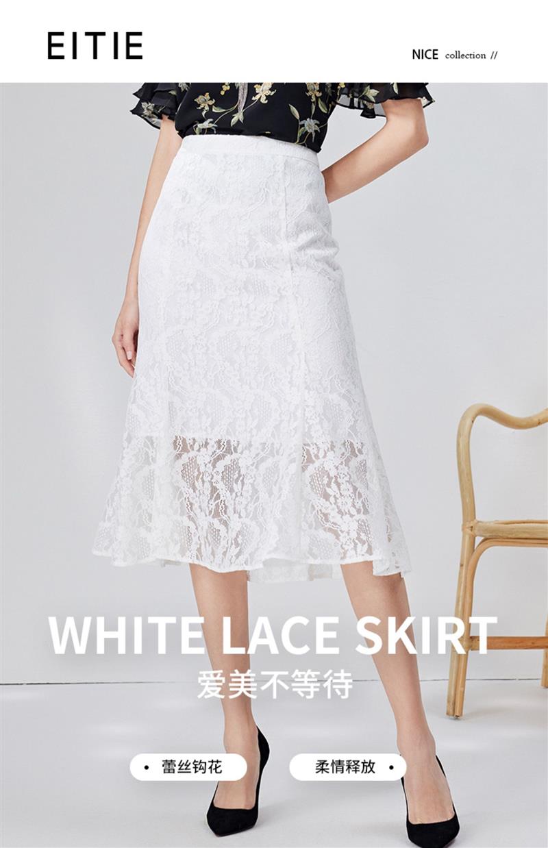 EITIE爱特爱时尚精致优雅法式包臀高腰蕾丝半身裙白色夏季新款B06114