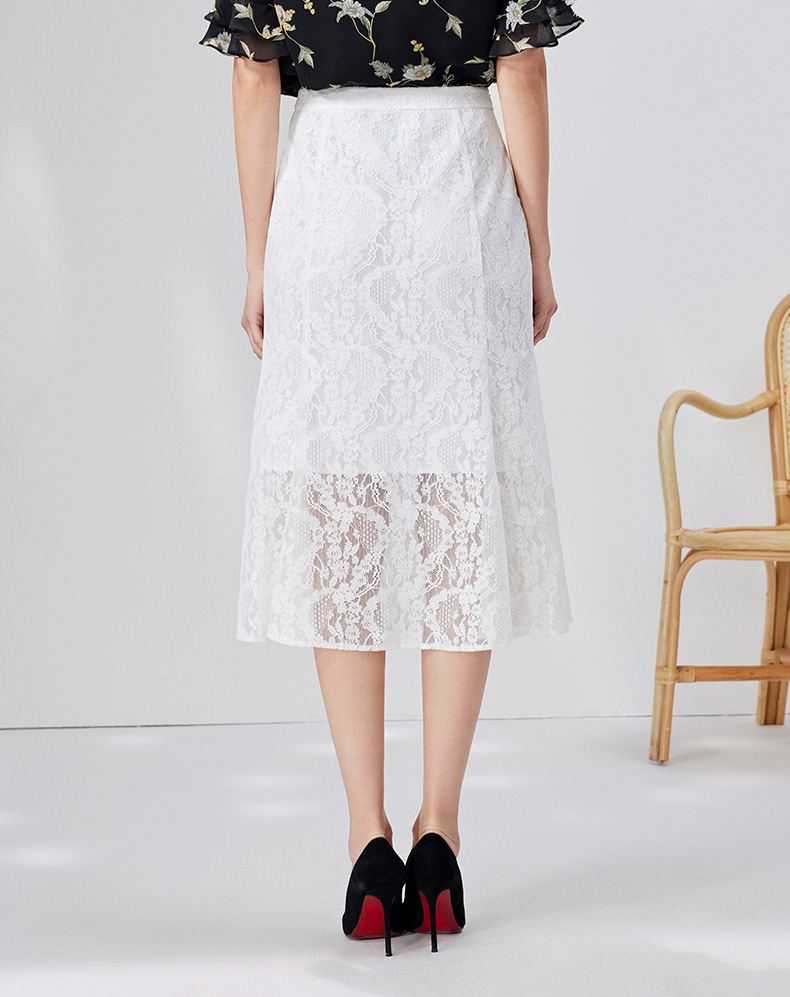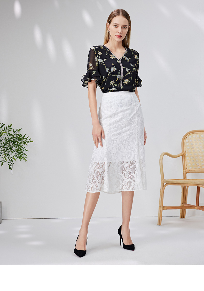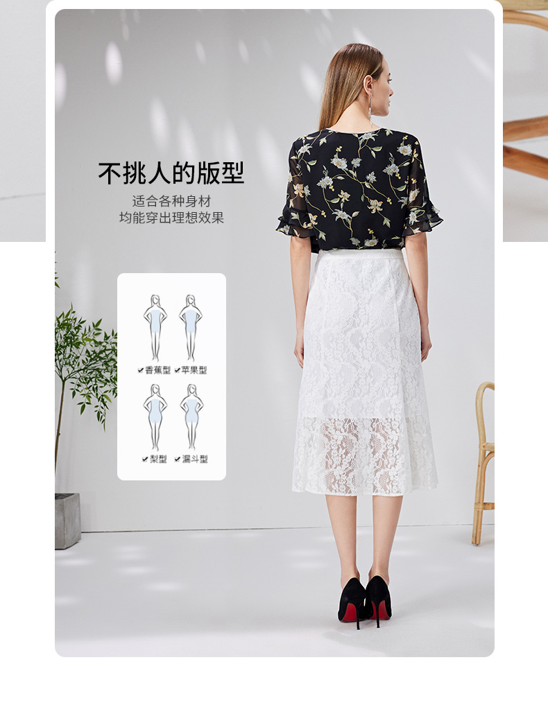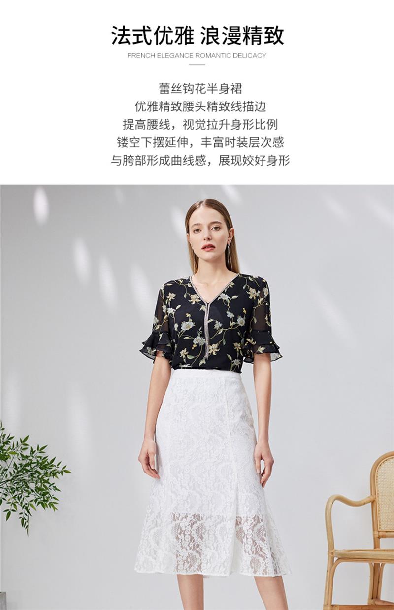 EITIE爱特爱时尚精致优雅法式包臀高腰蕾丝半身裙白色夏季新款B06114