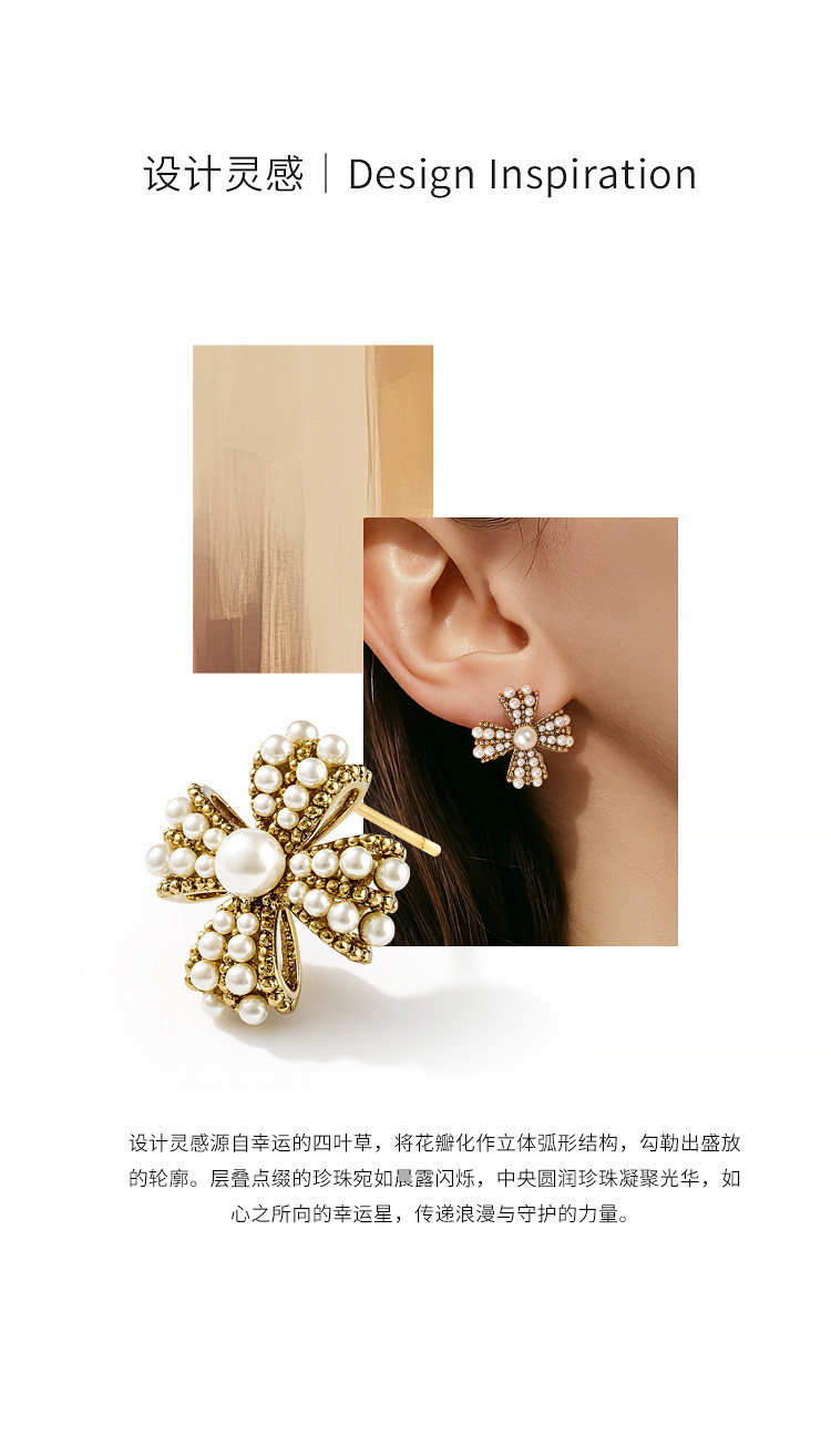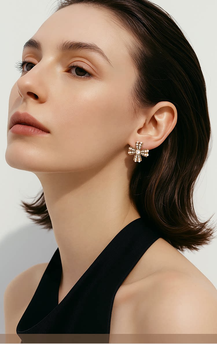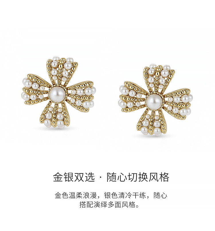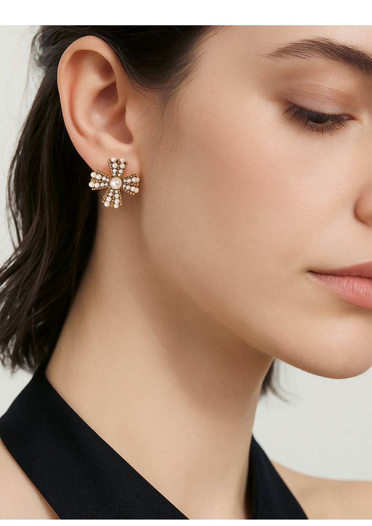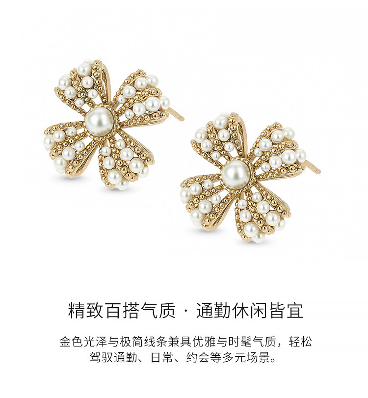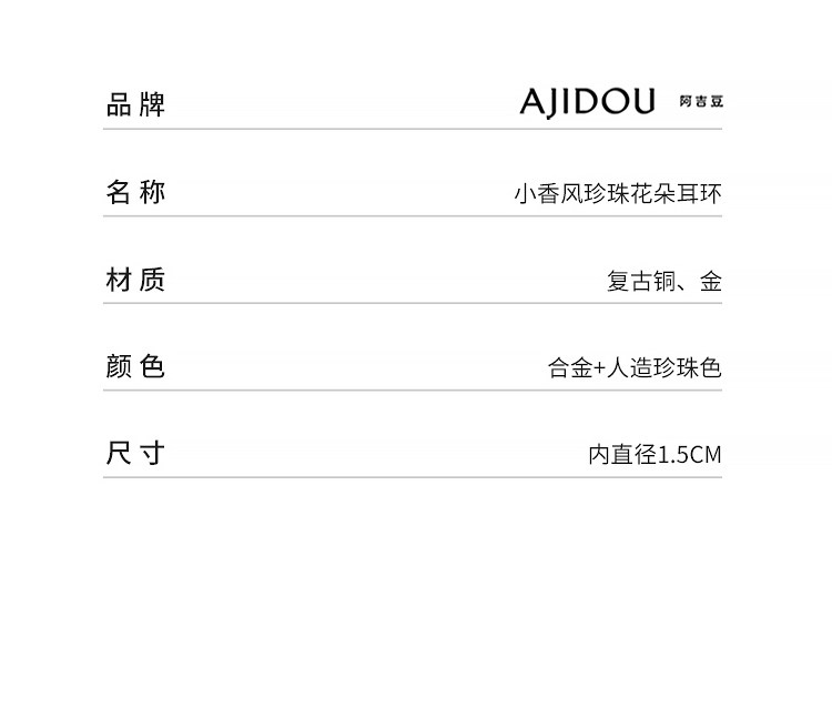 AJIDOU阿吉豆耳钉女小香风珍珠耳钉花朵耳环轻奢配饰小众爆款耳饰