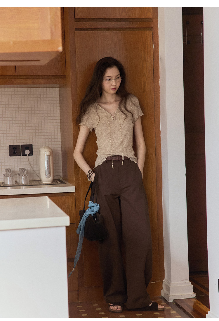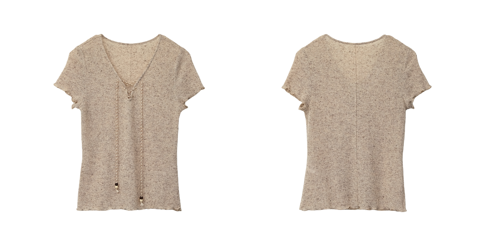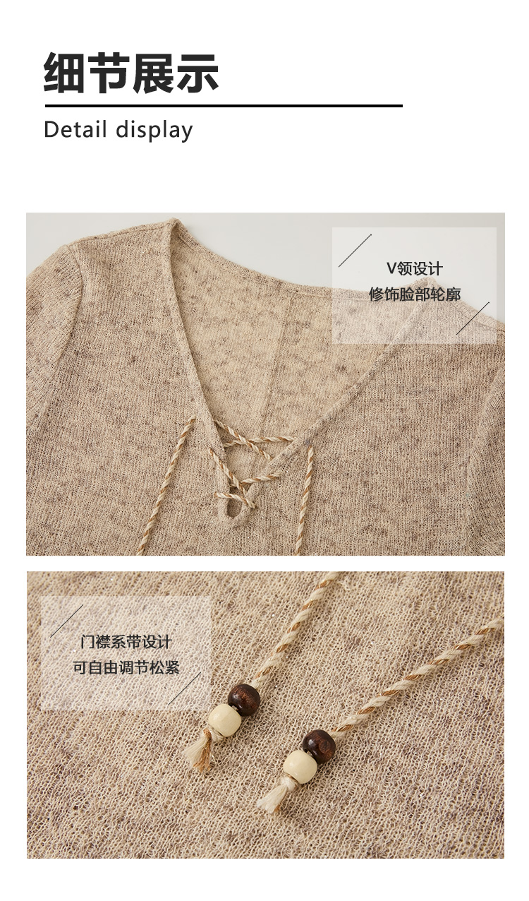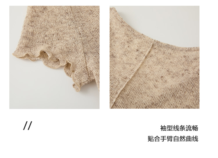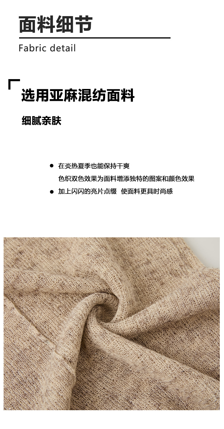 Even Vintage |亚麻混纺 闪闪微光V领系带复古针织透气短袖上衣