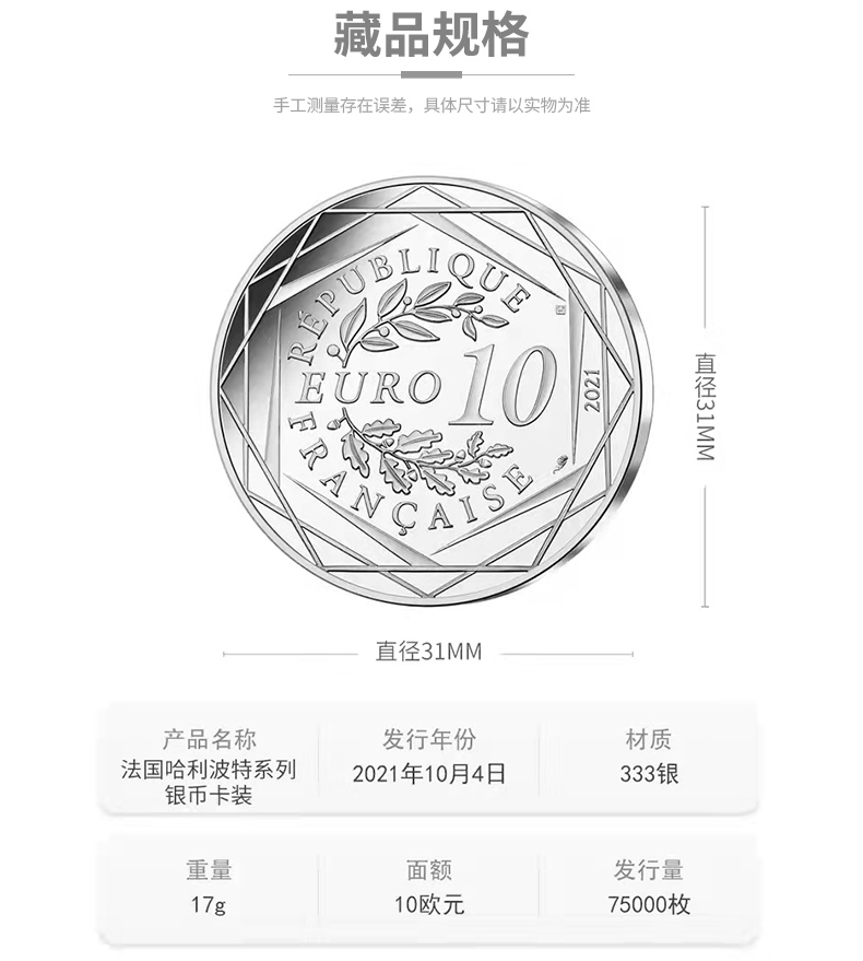 2021年哈利波特纪念银币.巴黎造币厂发行
