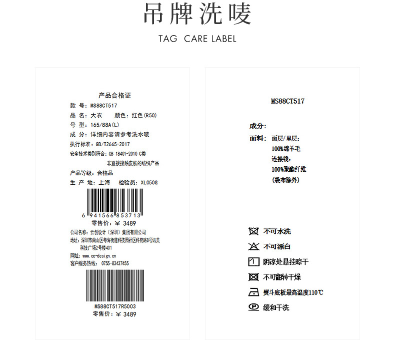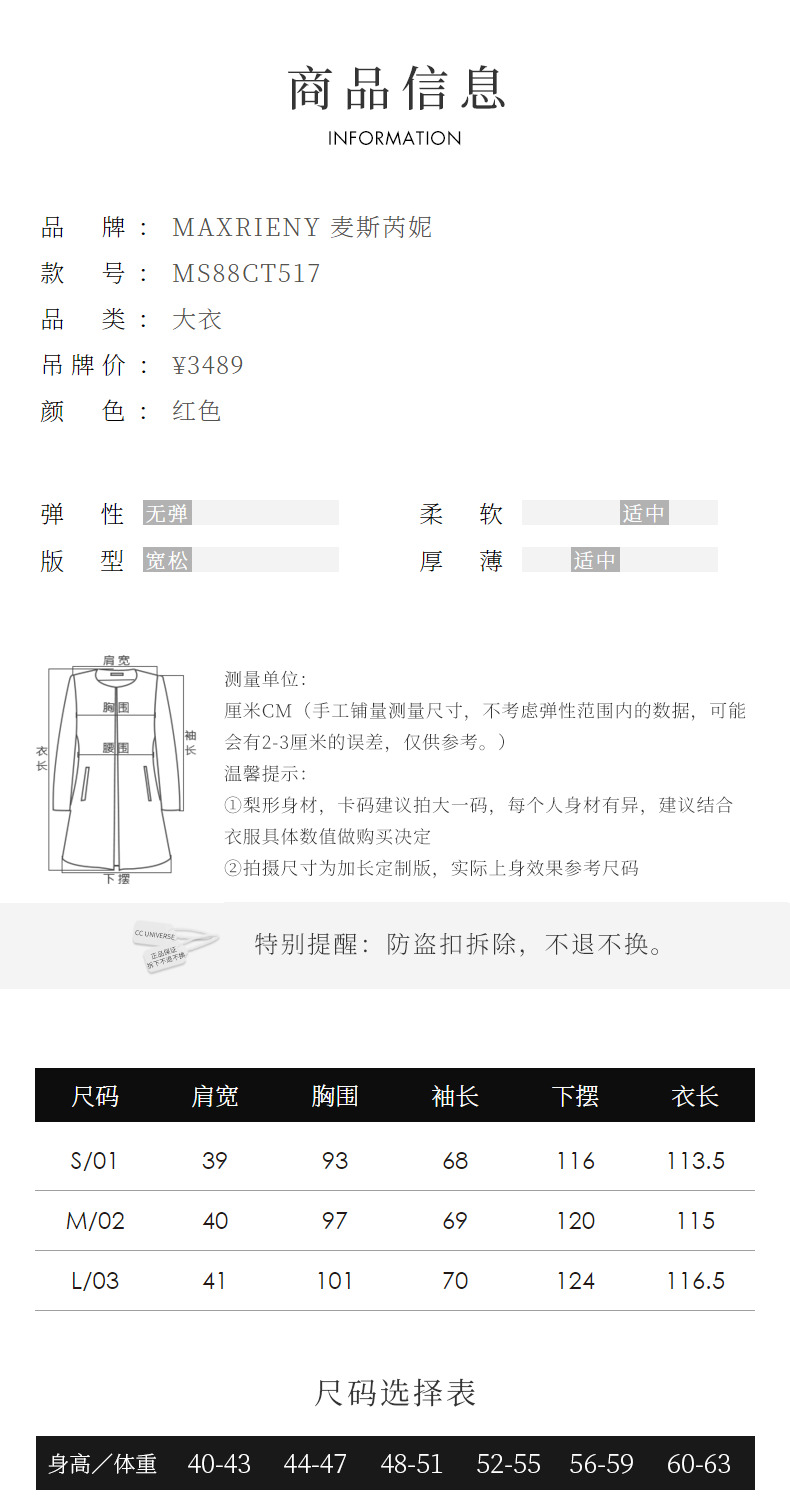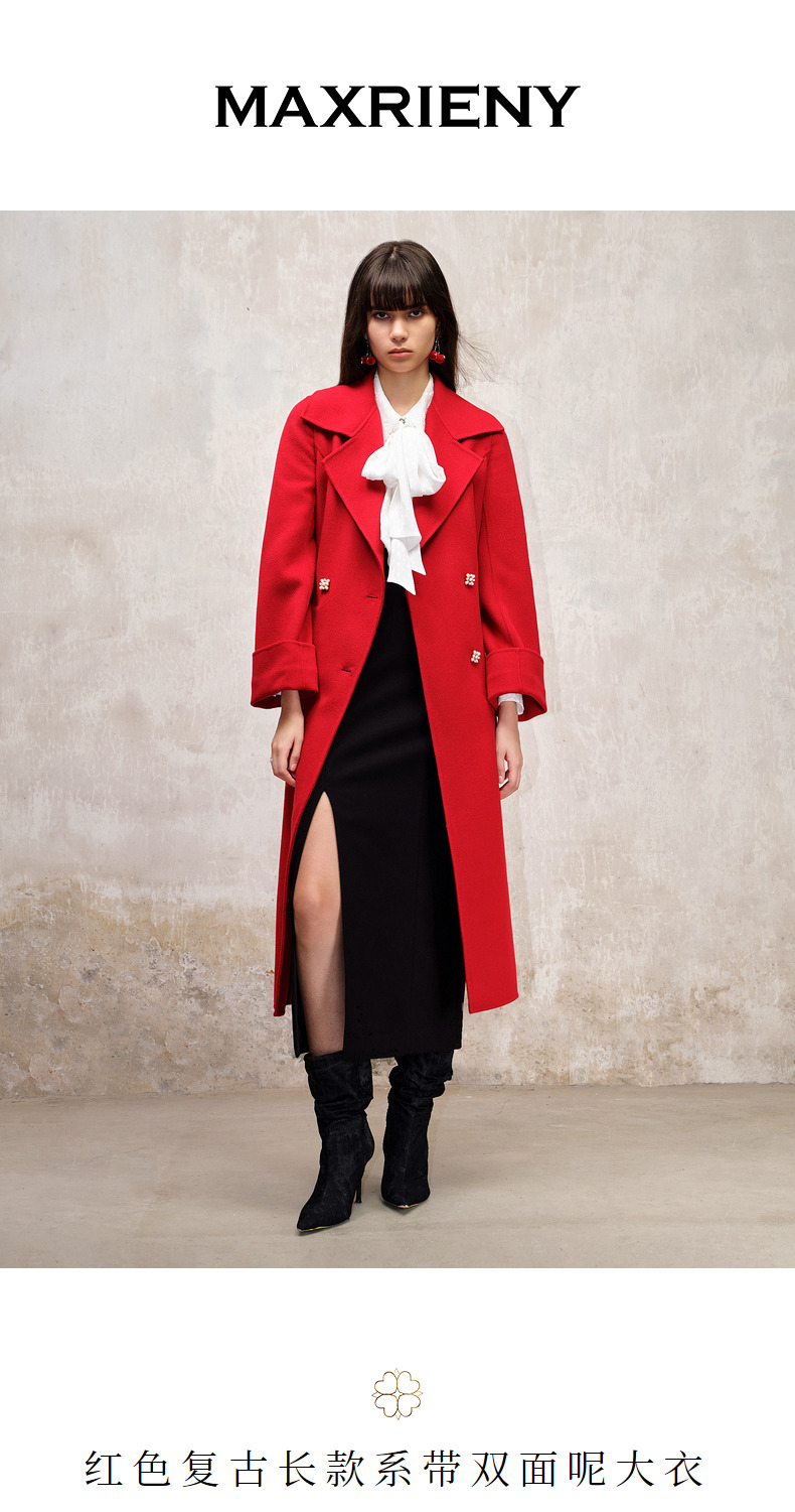 MAXRIENY极简垂坠感直身大衣长款双面呢羊毛外套(货号:MS88CT517)