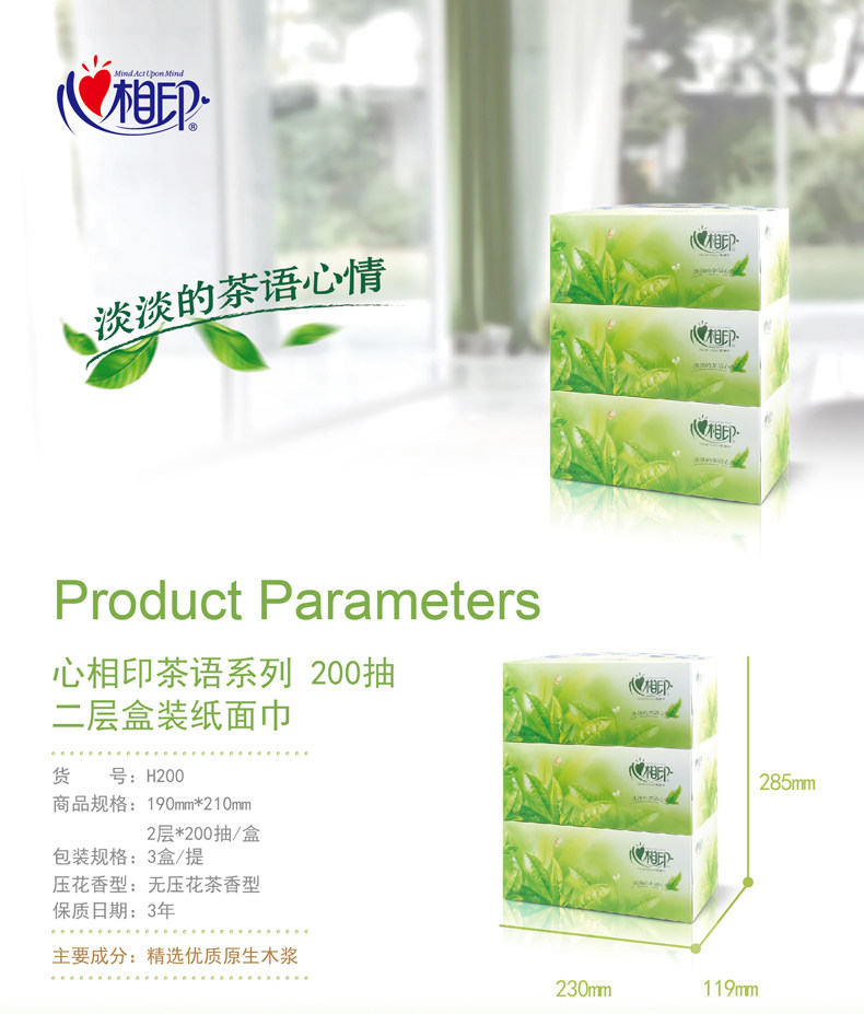 【百汇到家】心相印茶语面巾纸盒抽H200