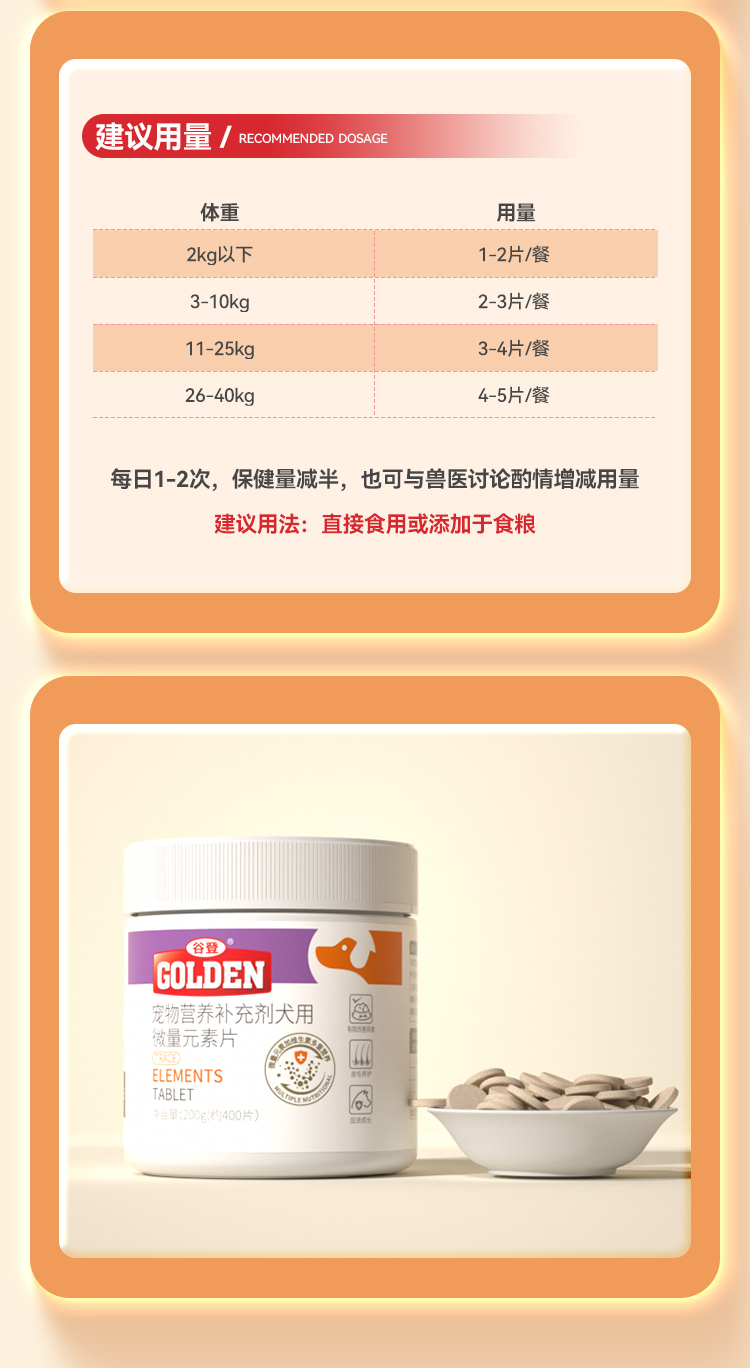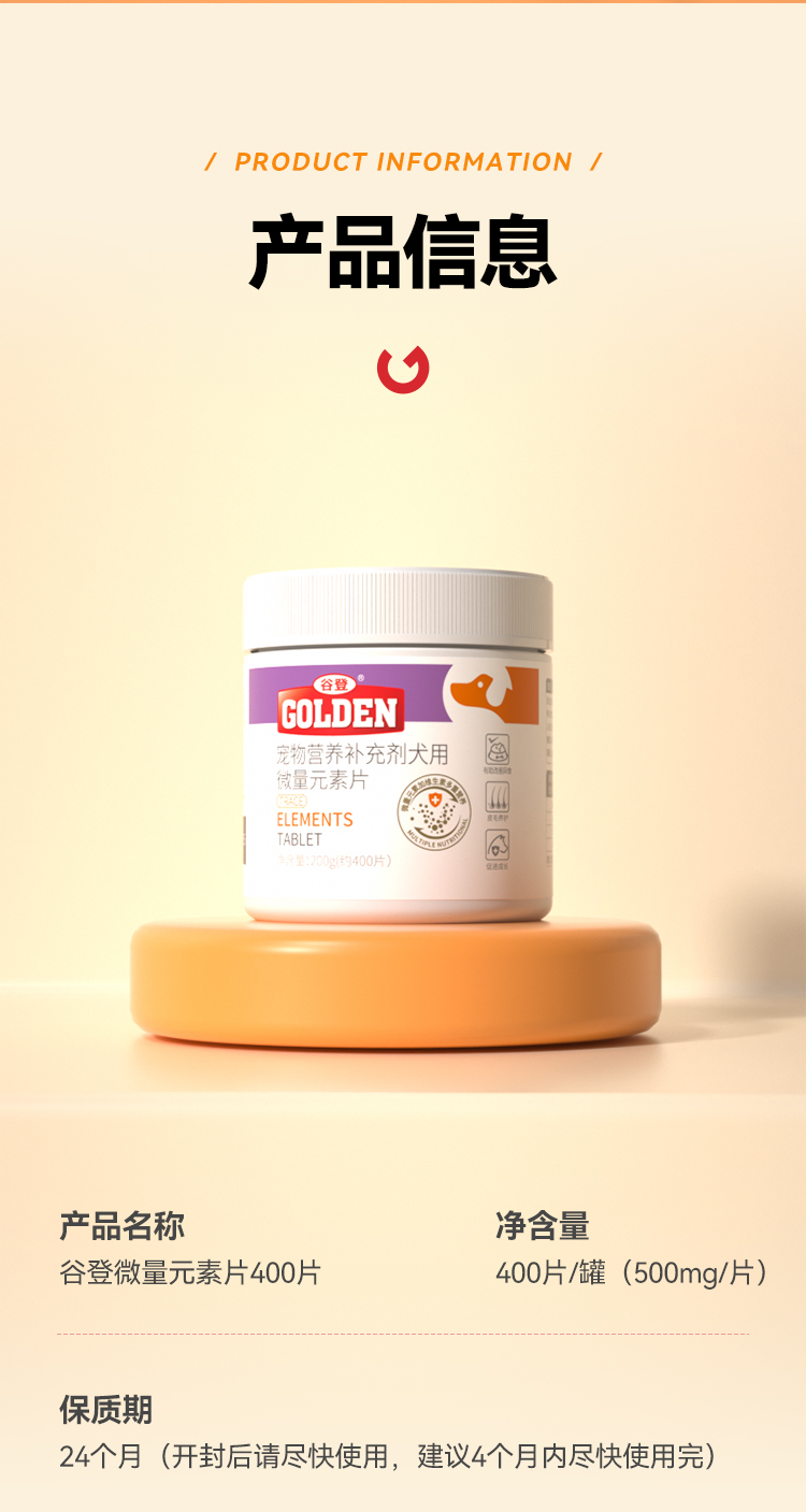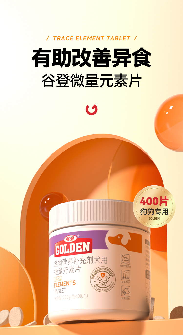 【2瓶加送赠品】谷登微量元素片400片 (犬用)