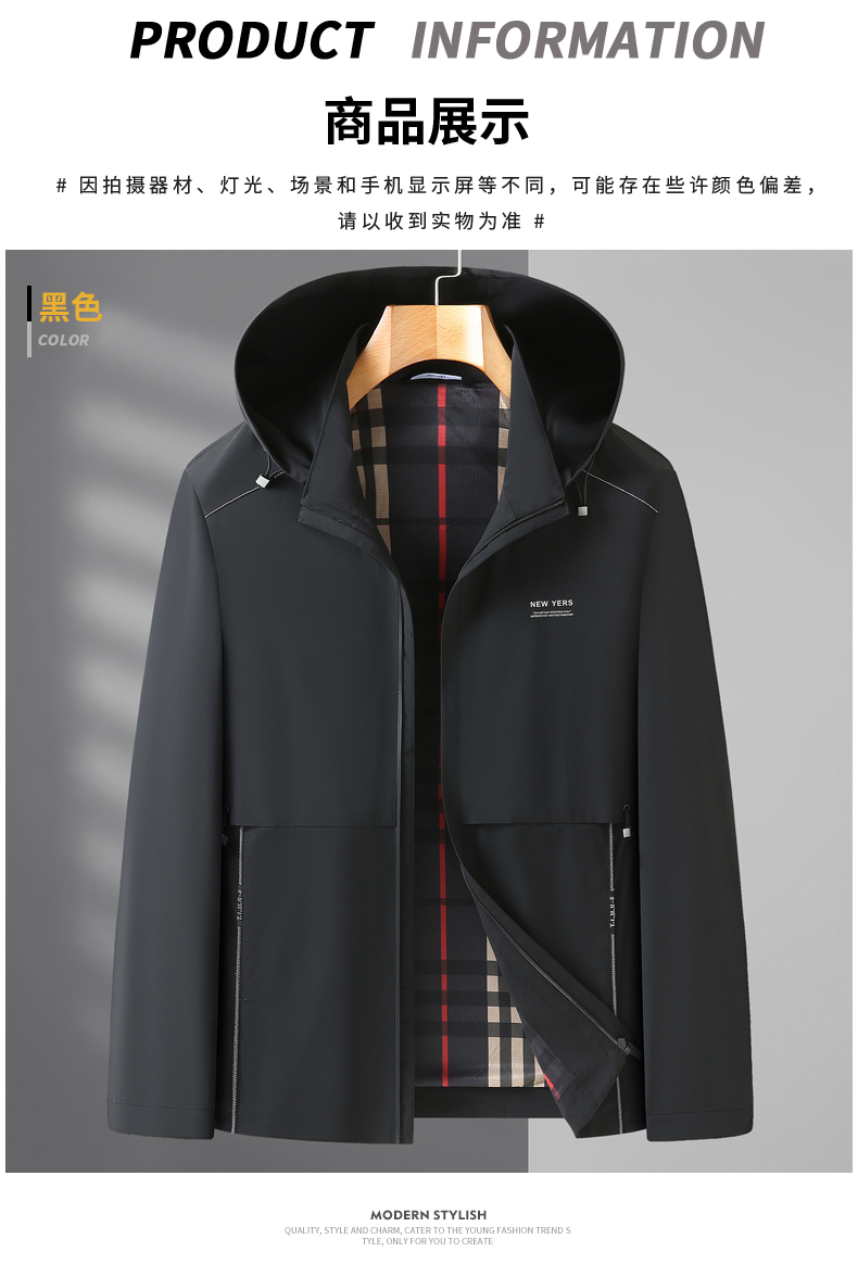 【可拆卸帽】【新款DLS】大依优型大码连帽夹克外套加肥加大肥佬休闲上衣男士胖子