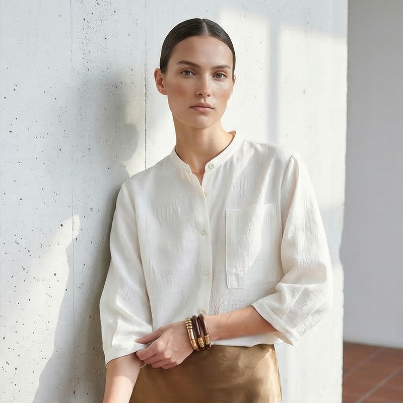 PALUOPO/PL19姆米冠乐绉立领新中式外套高级感提花真丝衬衫ES250186Z
