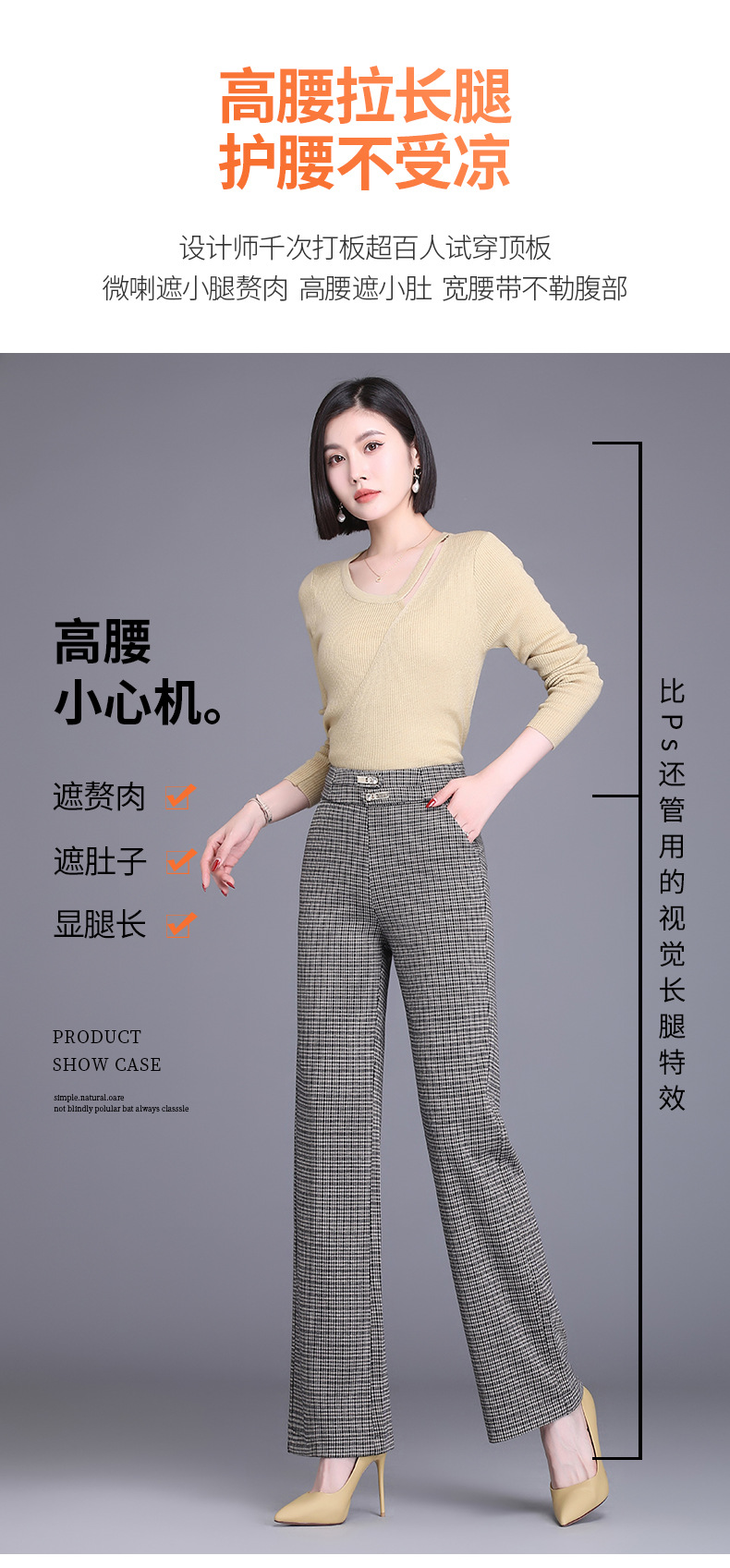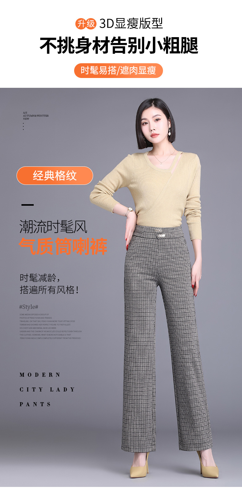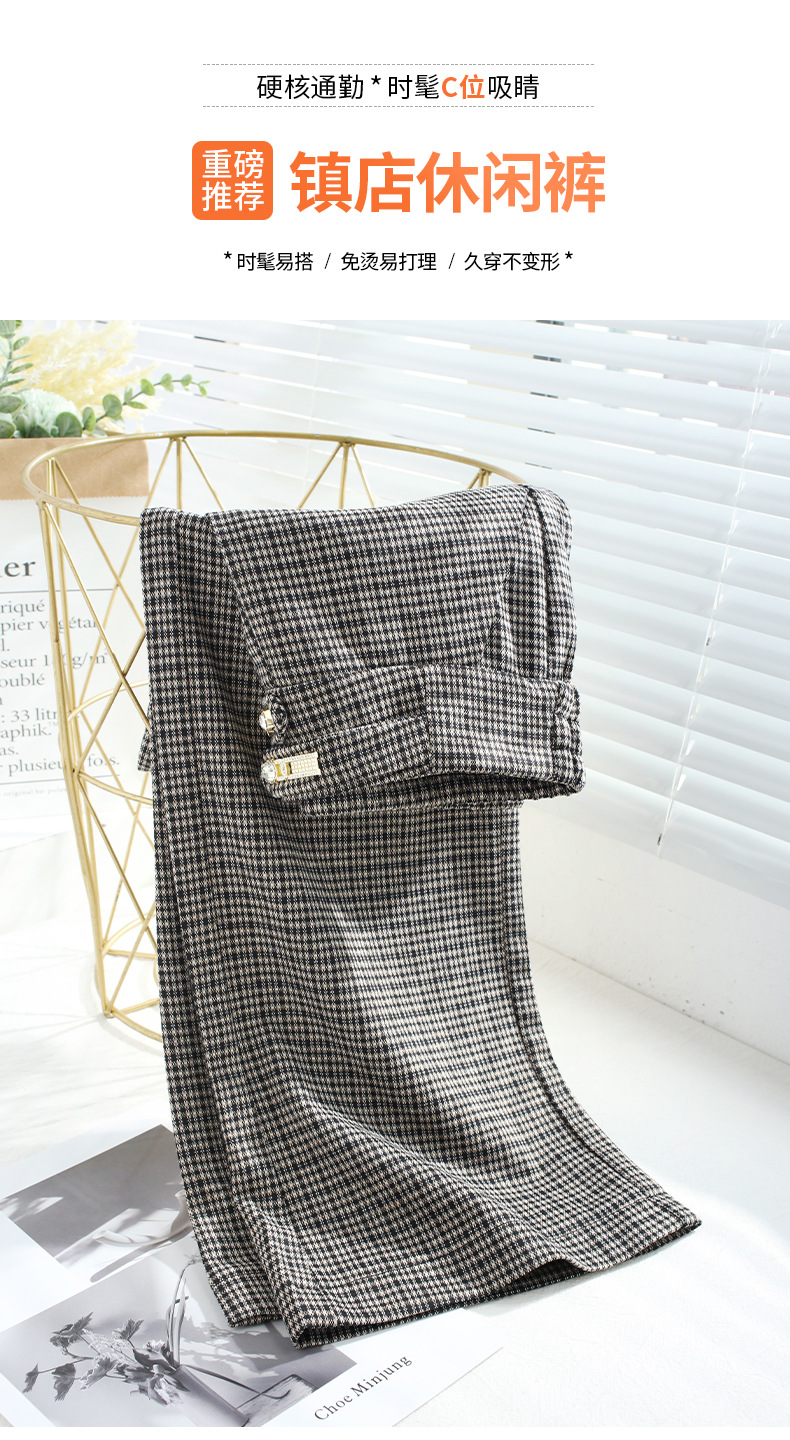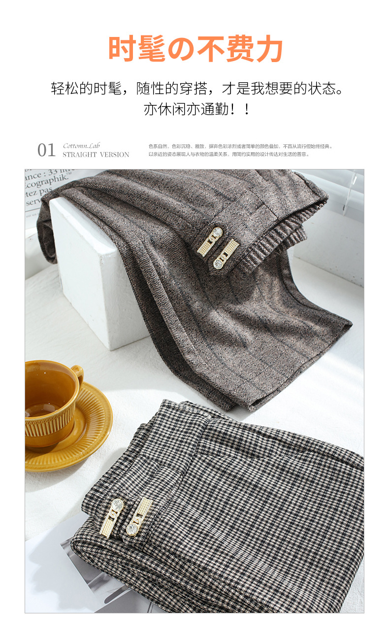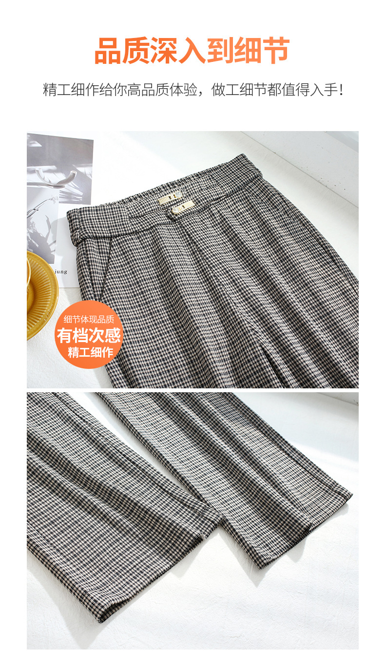 时尚格子直筒阔腿裤女2022春季新款韩版高腰垂感宽松显瘦休闲长裤 AL7006