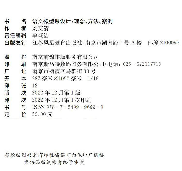 语文微型课设计 理念 方法 案例 中小学阅读课教学研究 刘艾清 著 语文微型课改革前沿理念 评价指标体系等 江苏凤凰教育出版社