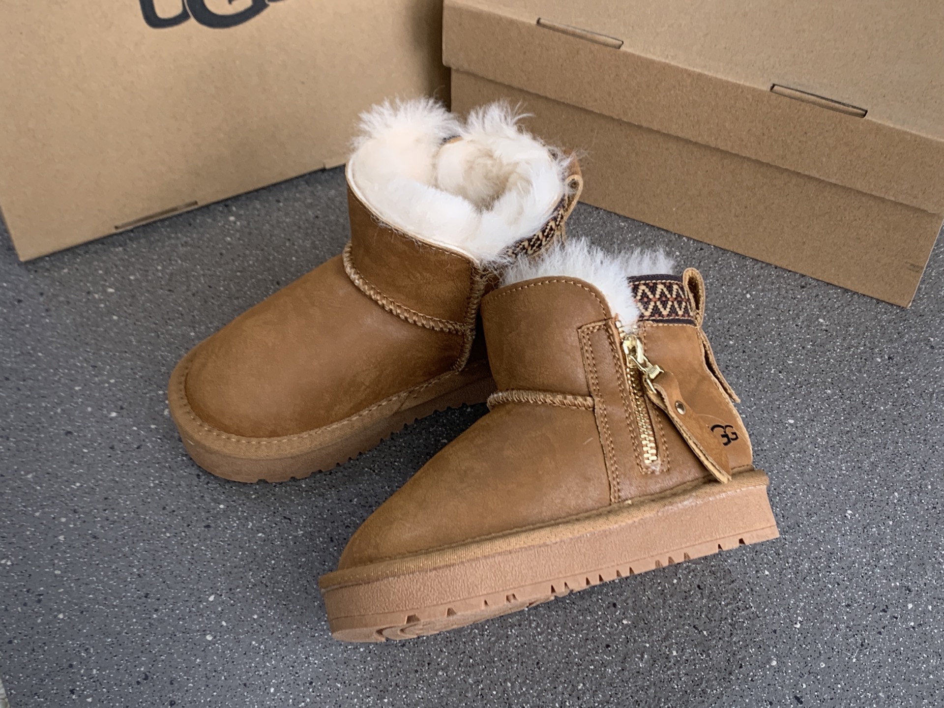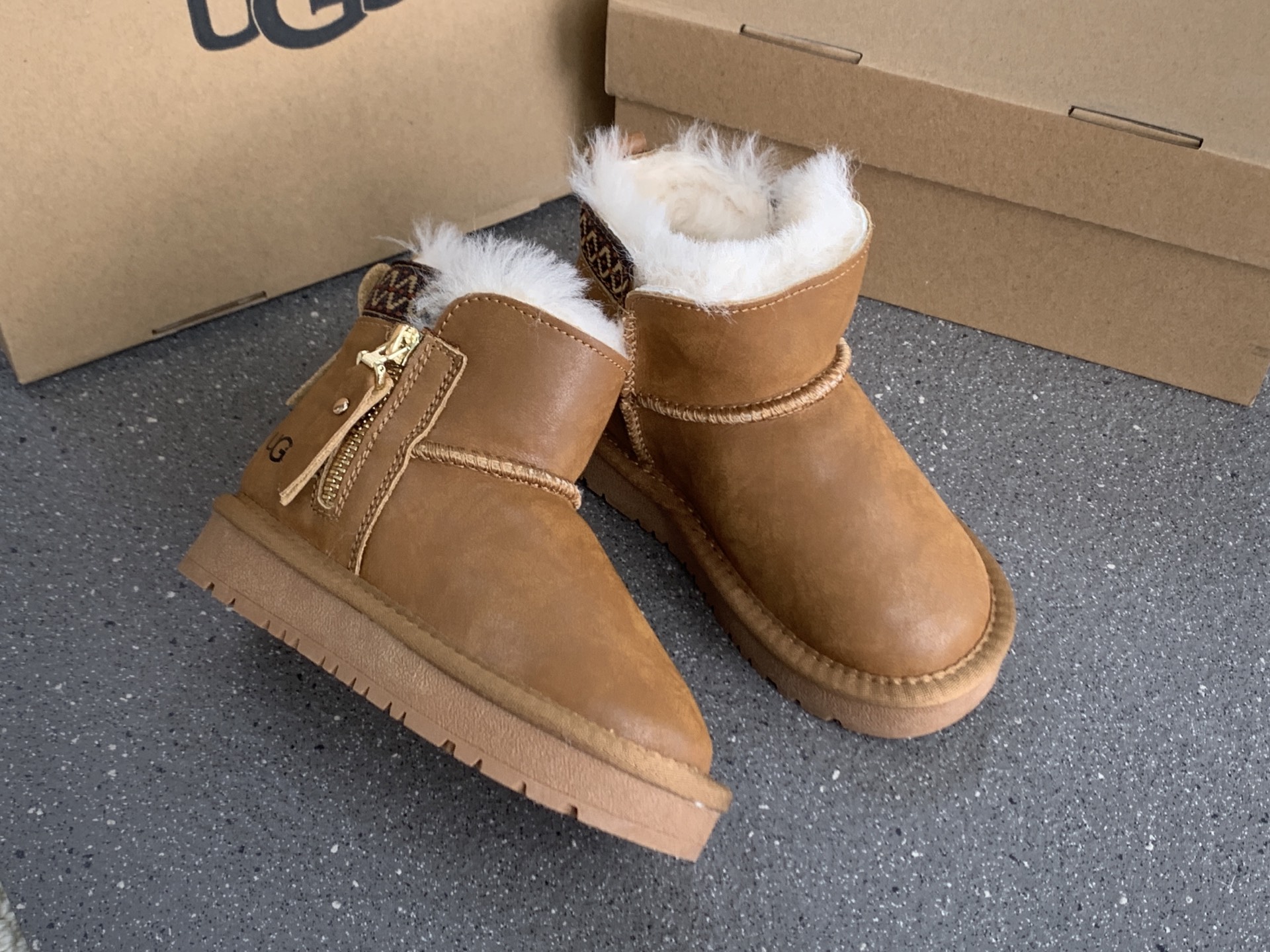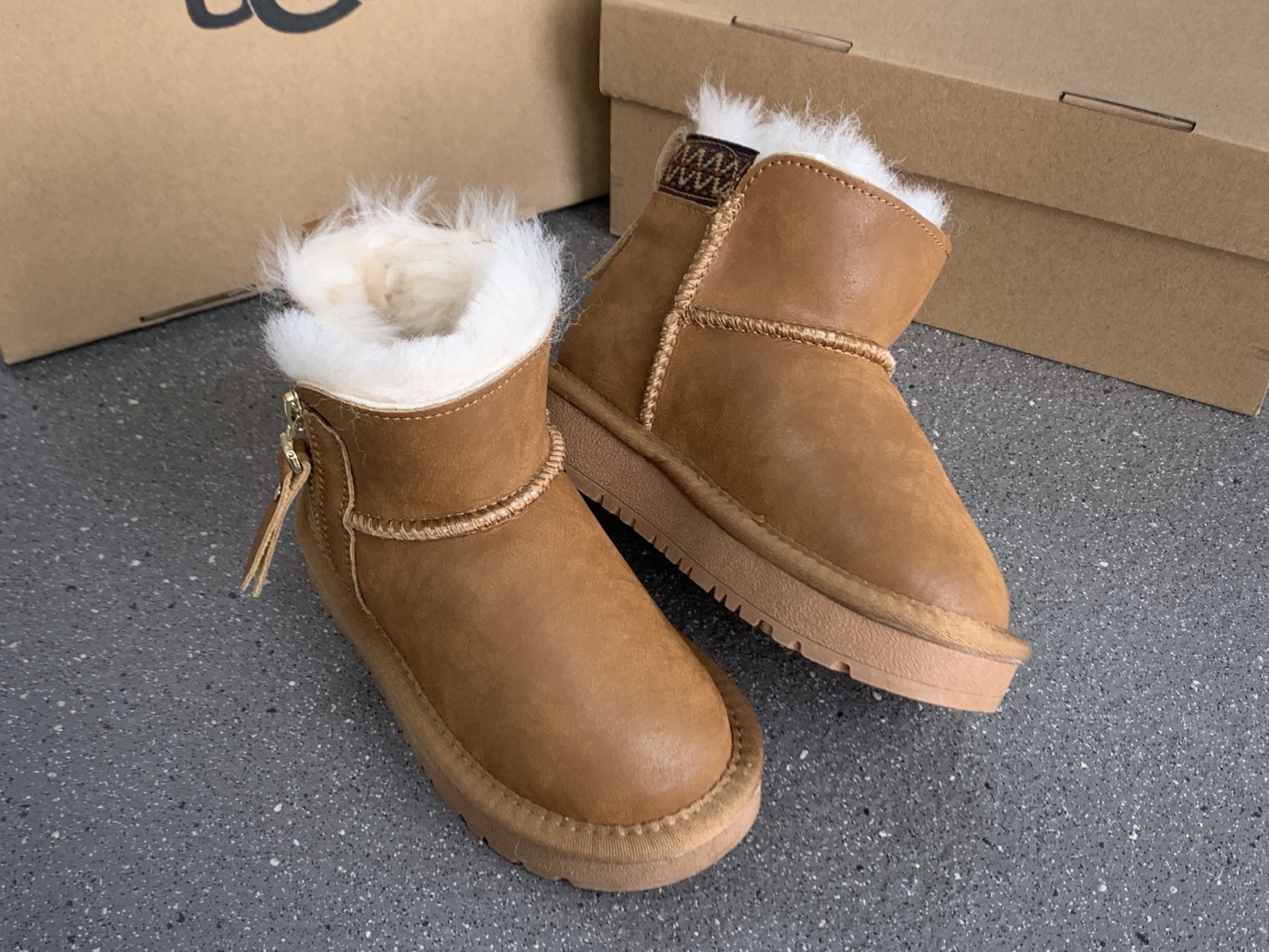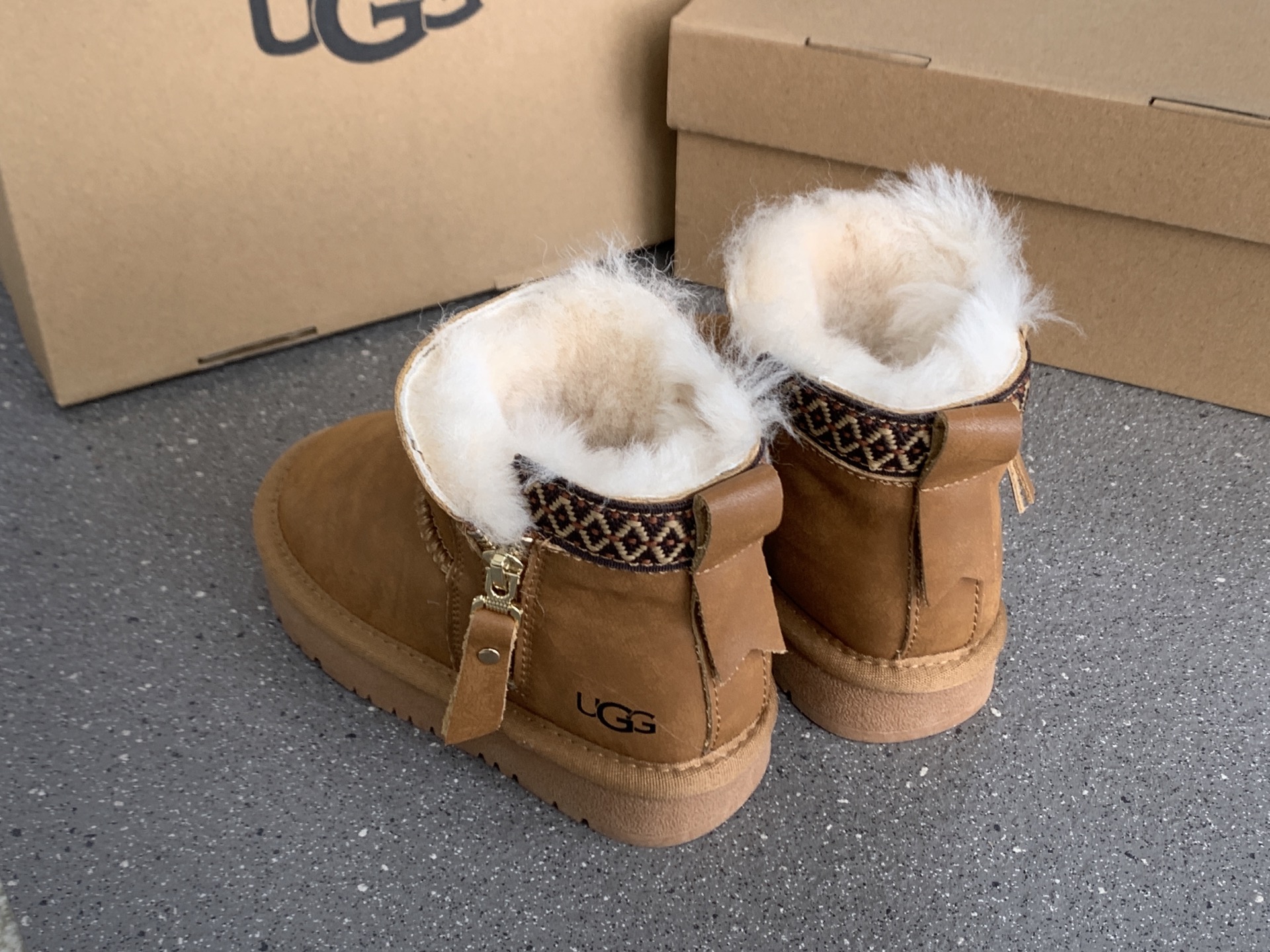 莞产 【童鞋款】‼️U&GG民族风防水皮拉链款童鞋儿童雪地靴 .中帮拉链设计,易穿脱 保暖防风。 内里羊毛,加绒加厚,保暖又舒适.防滑牛筋底,每一步都暖得扎实、走得稳当。尺码:26–35 (详情🔎尺码表).