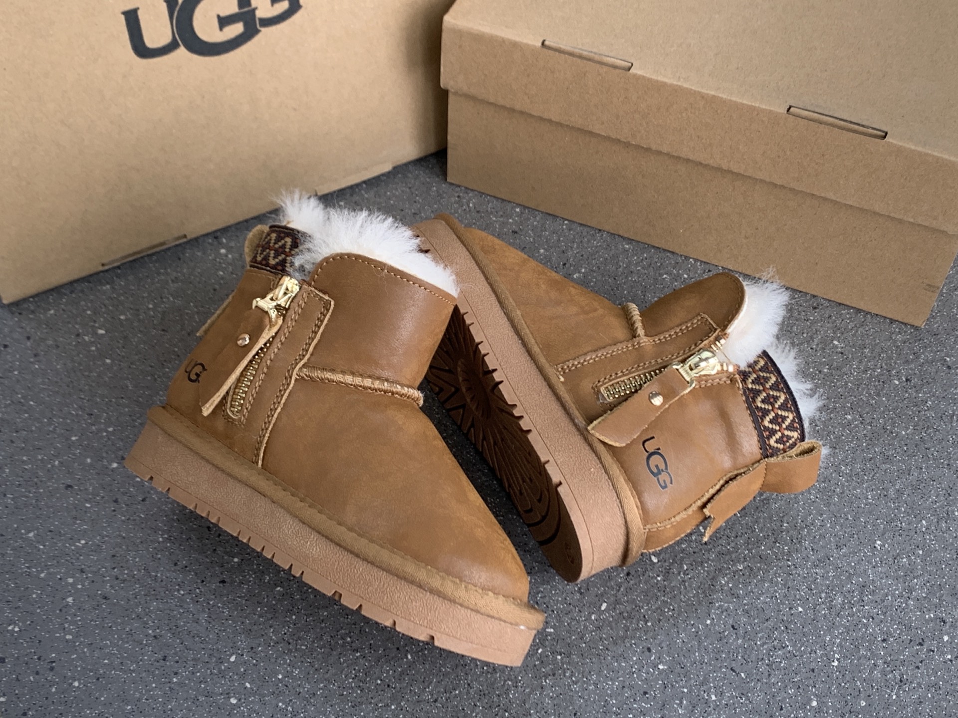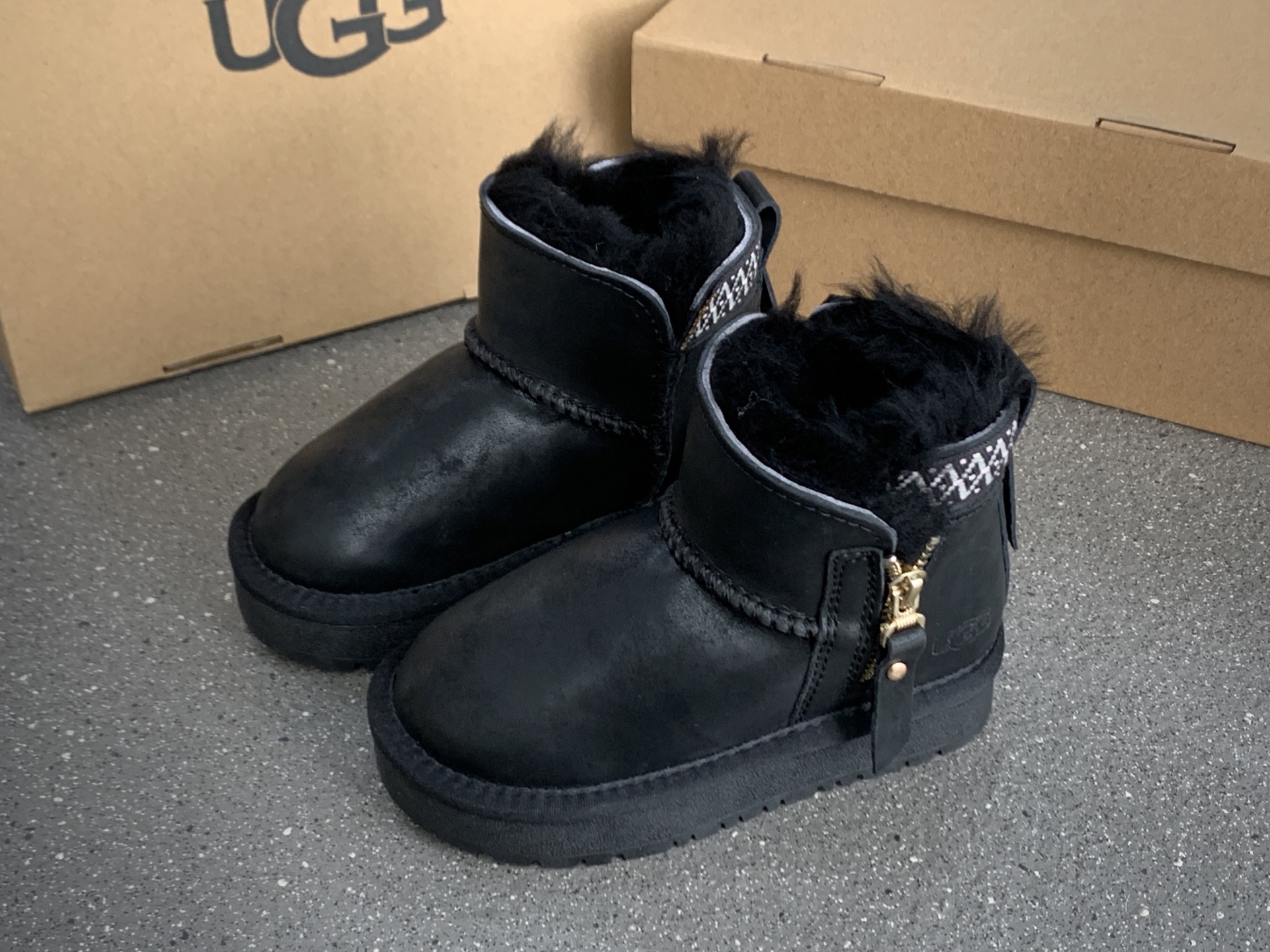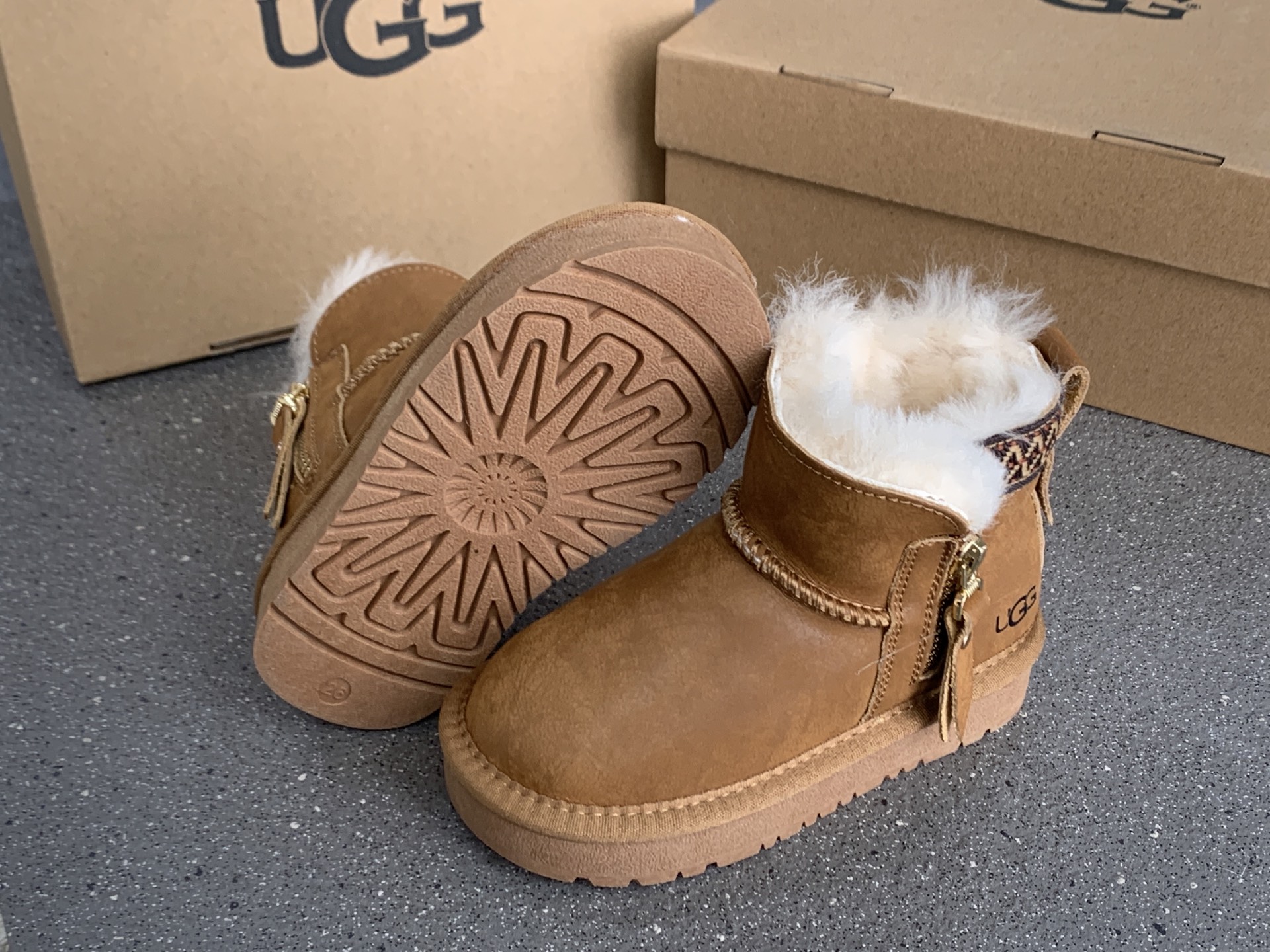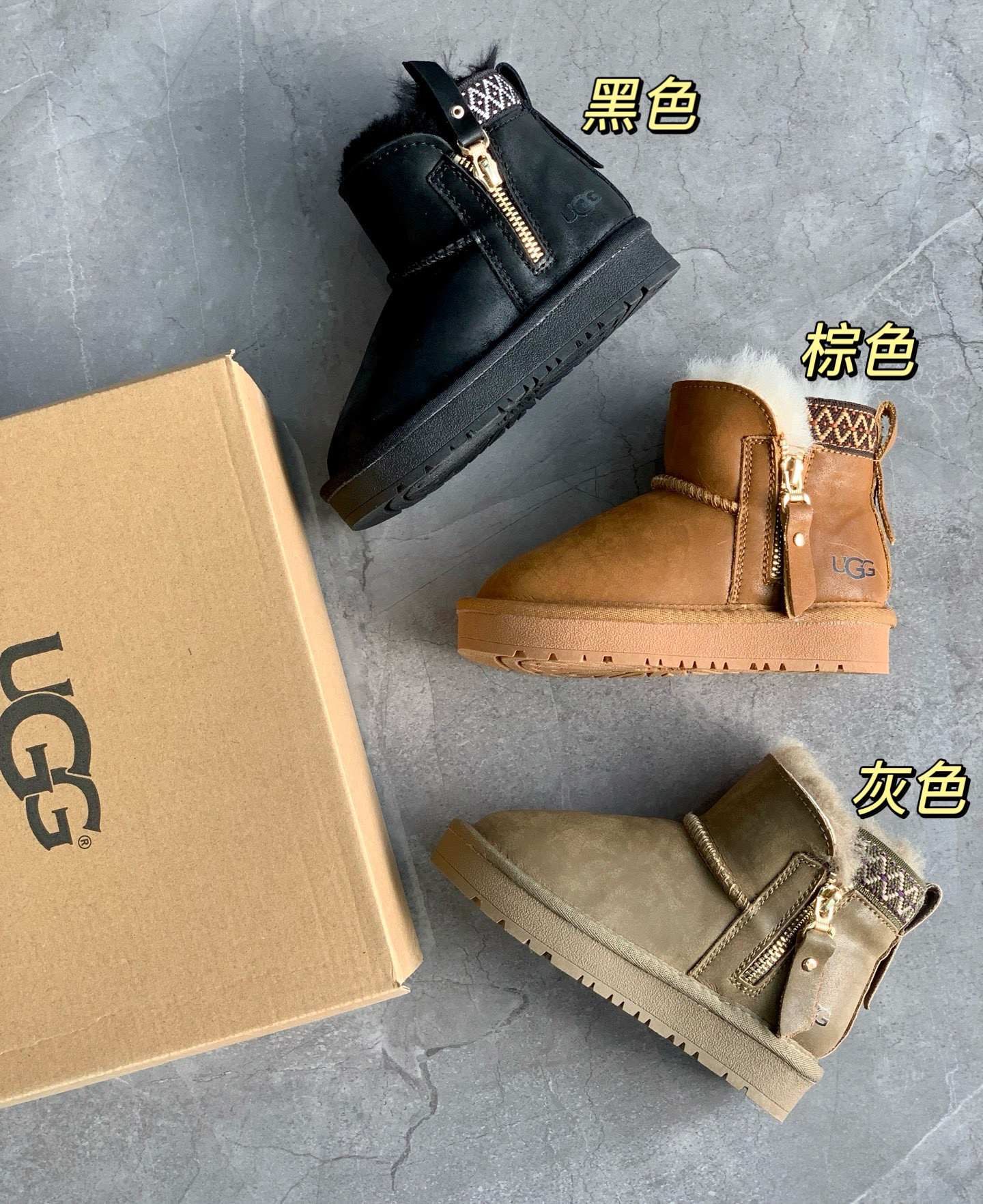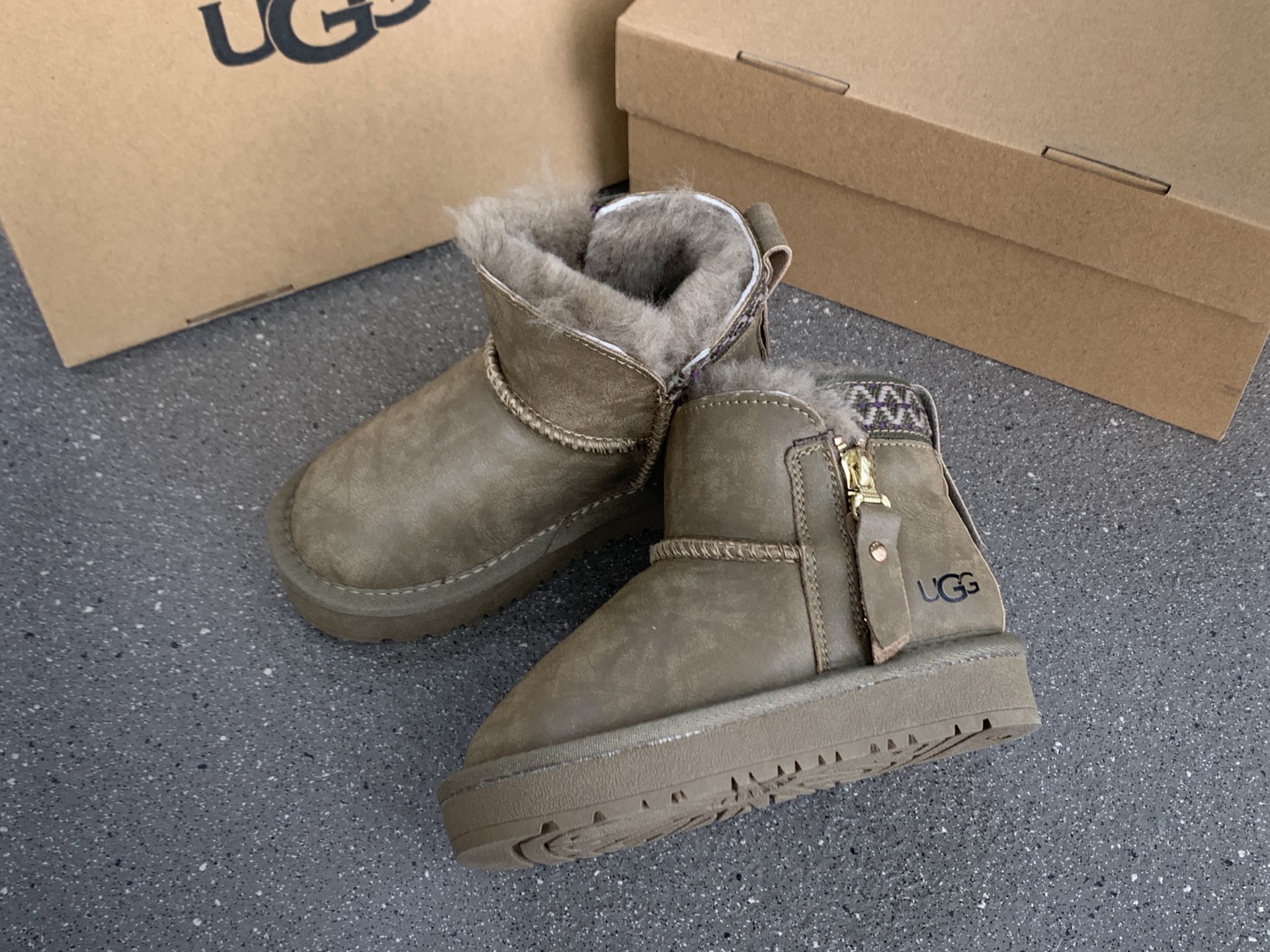 莞产 【童鞋款】‼️U&GG民族风防水皮拉链款童鞋儿童雪地靴 .中帮拉链设计,易穿脱 保暖防风。 内里羊毛,加绒加厚,保暖又舒适.防滑牛筋底,每一步都暖得扎实、走得稳当。尺码:26–35 (详情🔎尺码表).