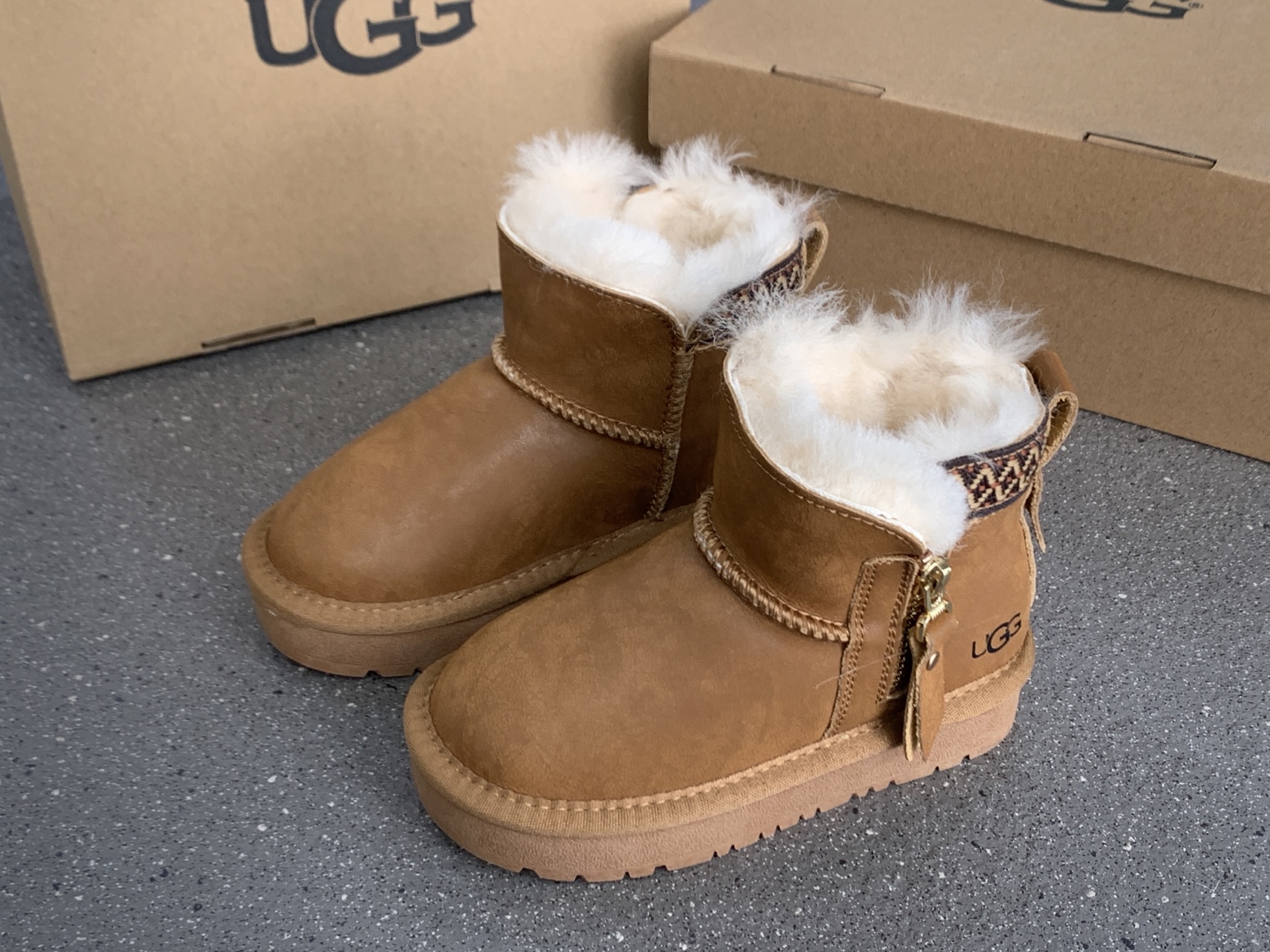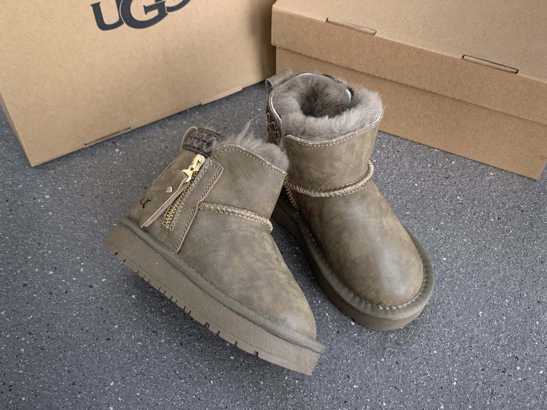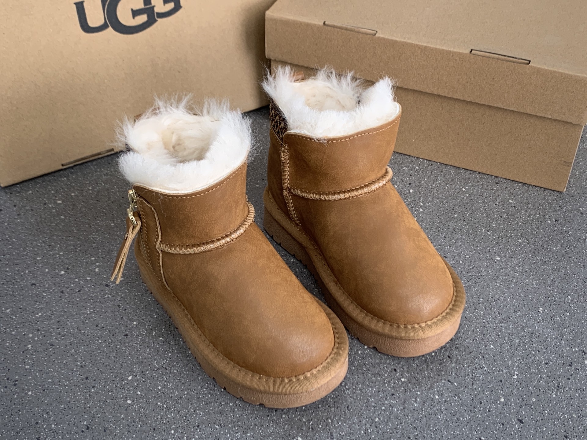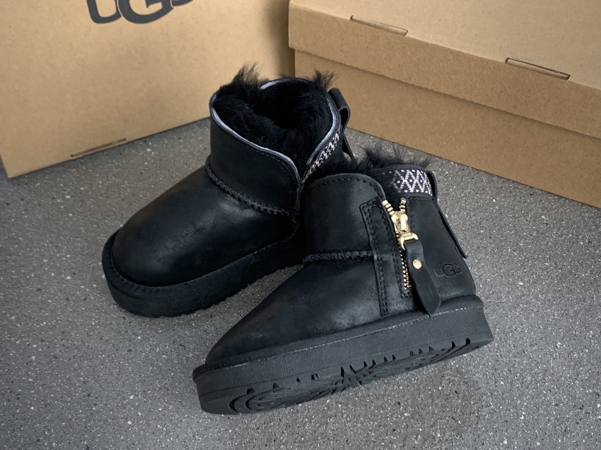 莞产 【童鞋款】‼️U&GG民族风防水皮拉链款童鞋儿童雪地靴 .中帮拉链设计,易穿脱 保暖防风。 内里羊毛,加绒加厚,保暖又舒适.防滑牛筋底,每一步都暖得扎实、走得稳当。尺码:26–35 (详情🔎尺码表).