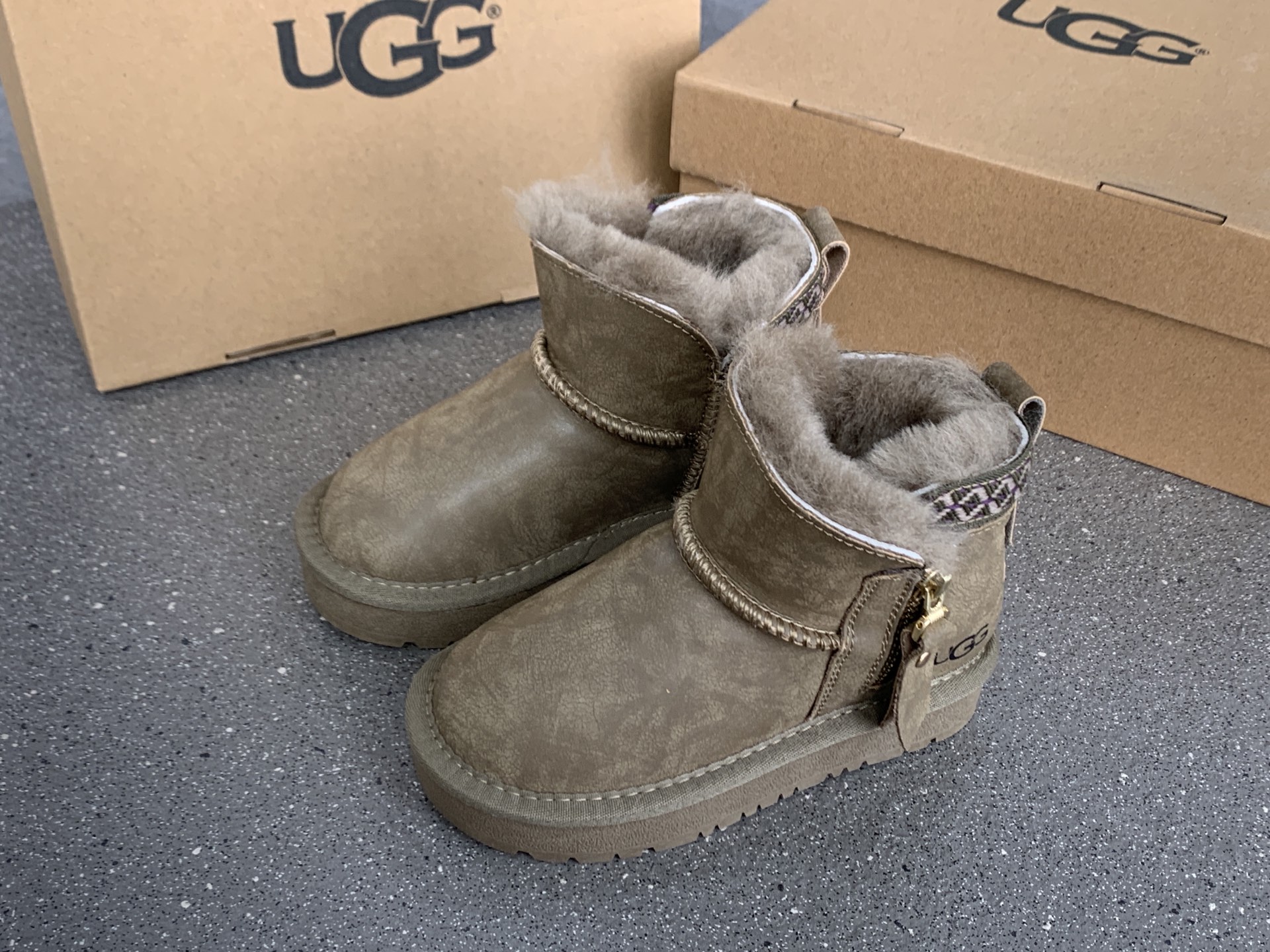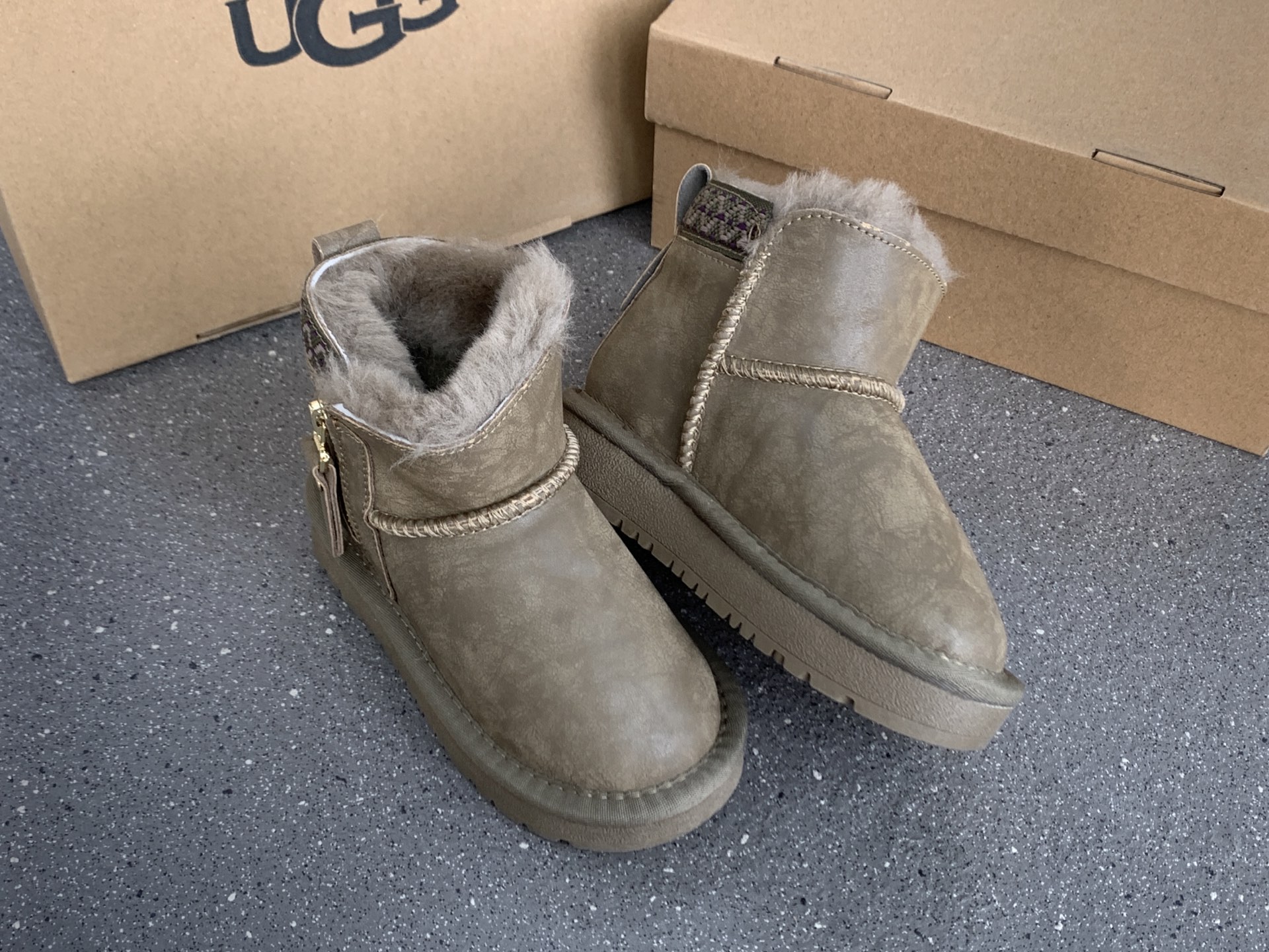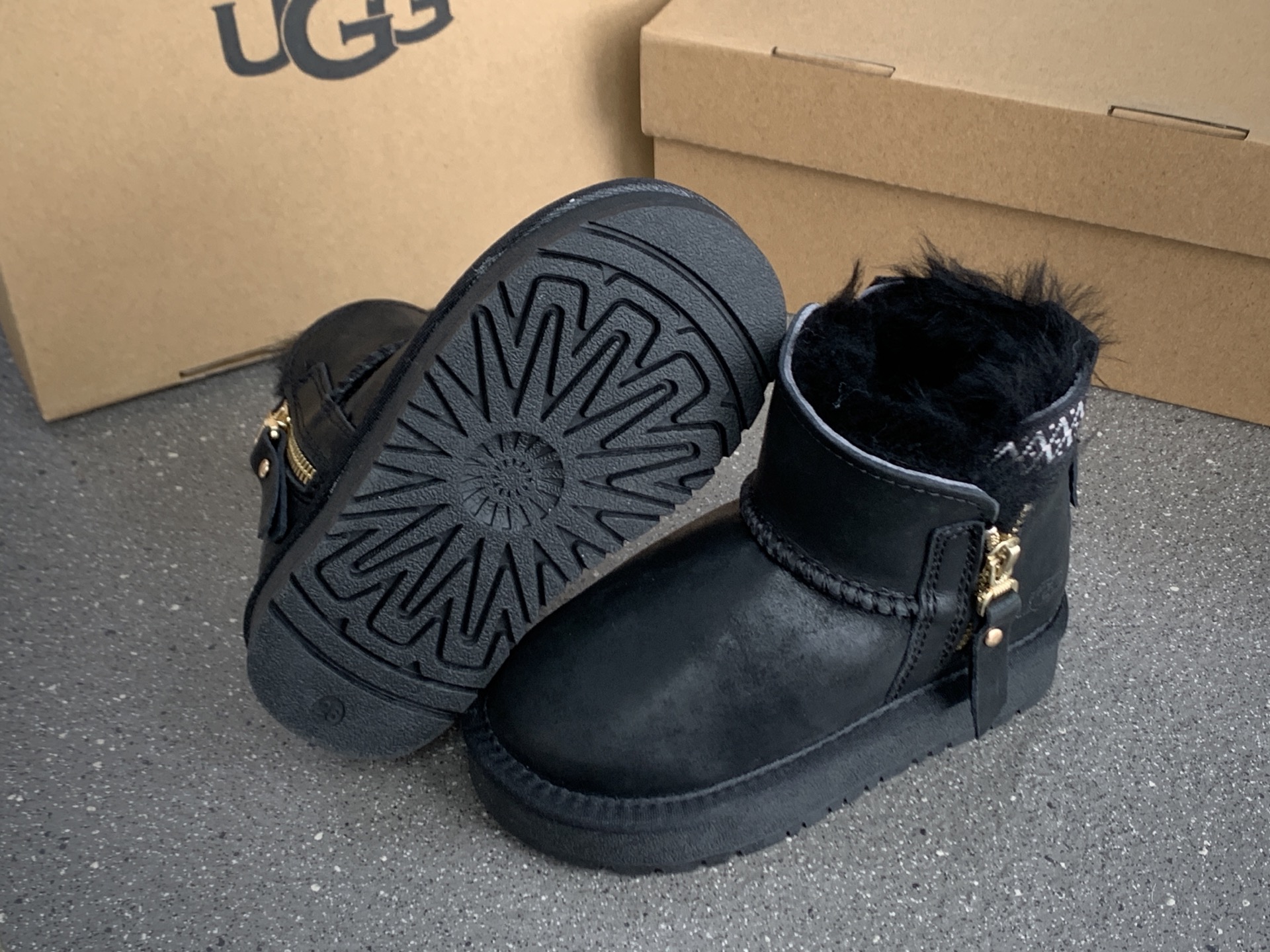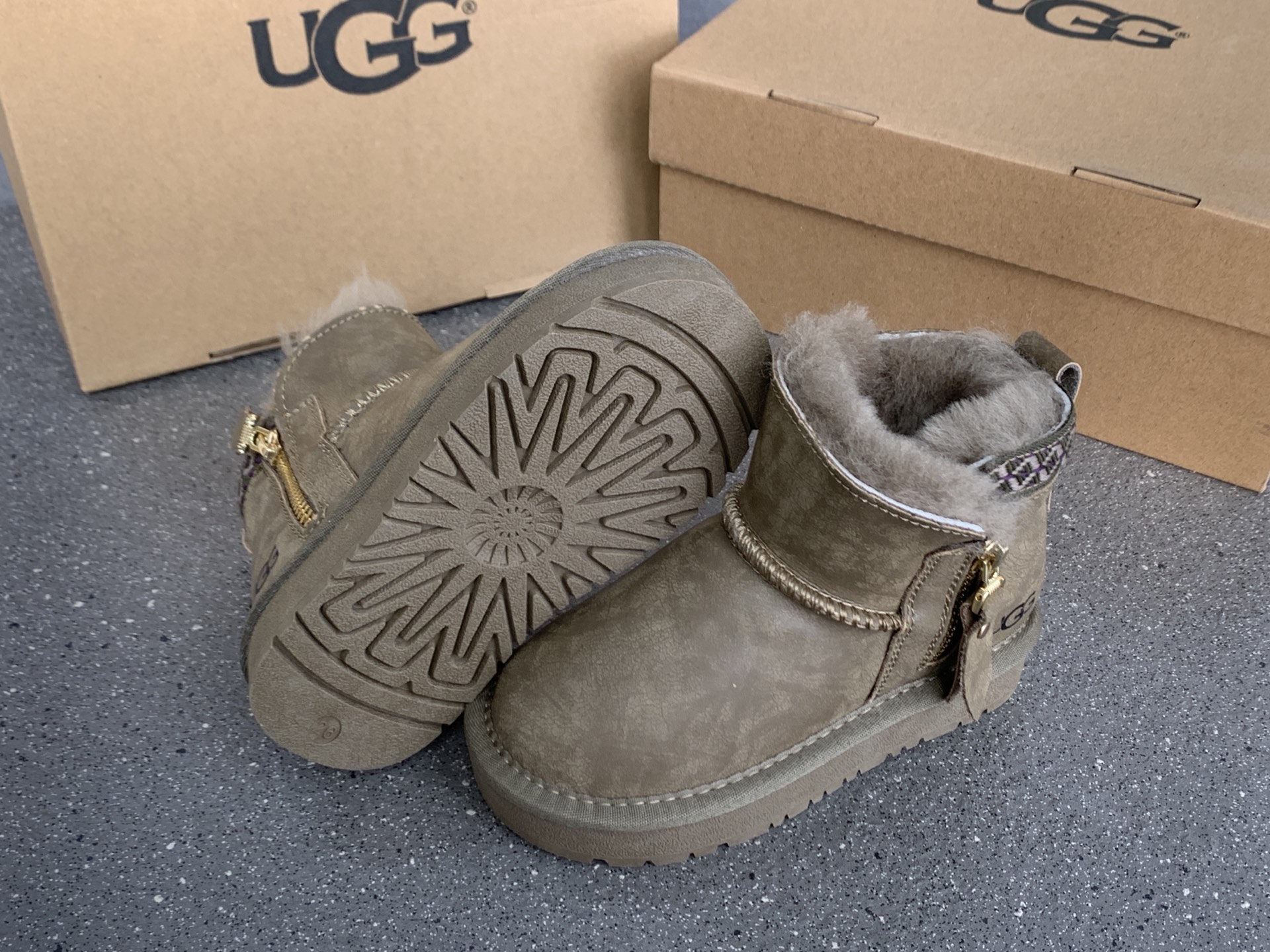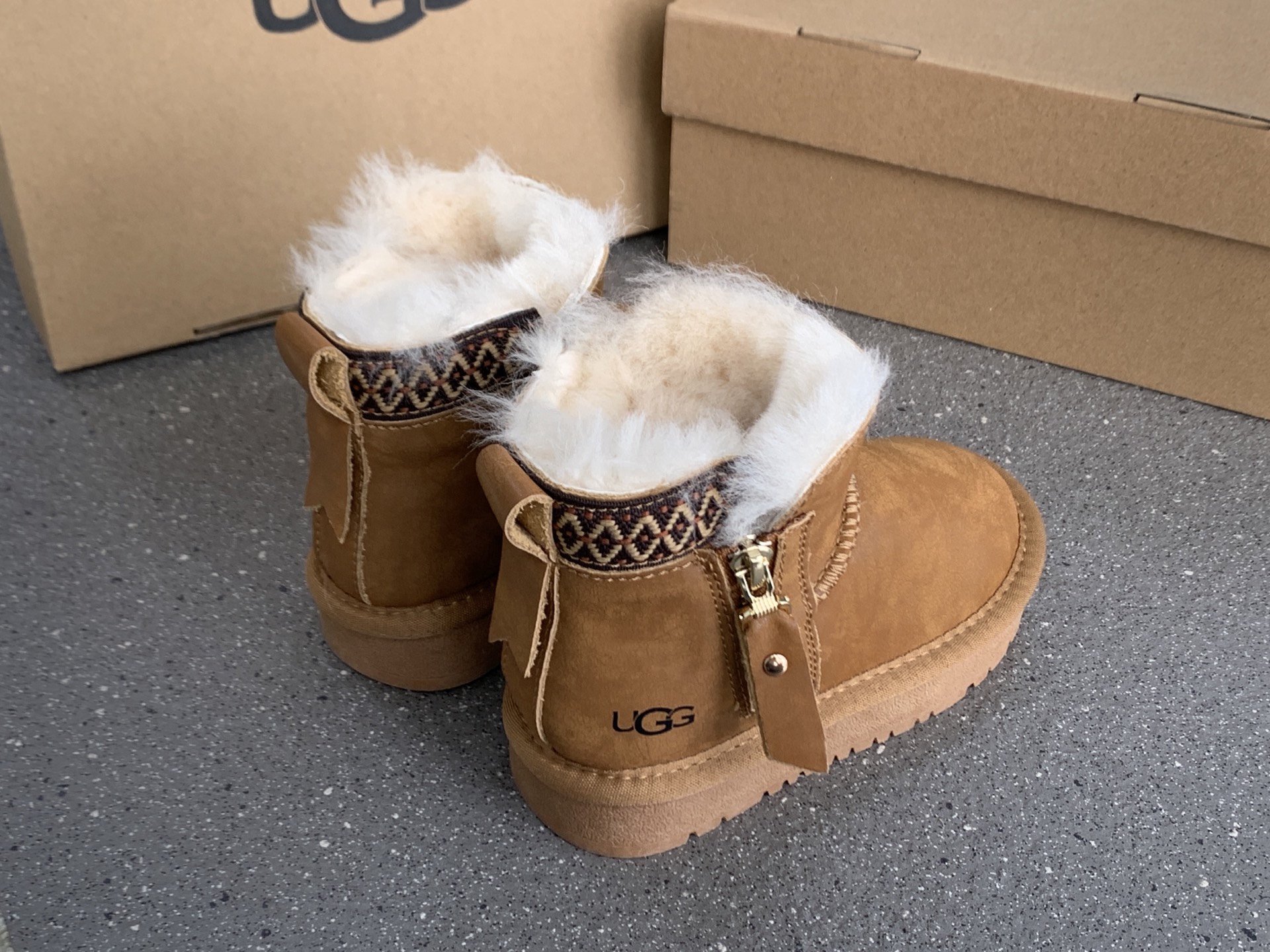 莞产 【童鞋款】‼️U&GG民族风防水皮拉链款童鞋儿童雪地靴 .中帮拉链设计,易穿脱 保暖防风。 内里羊毛,加绒加厚,保暖又舒适.防滑牛筋底,每一步都暖得扎实、走得稳当。尺码:26–35 (详情🔎尺码表).