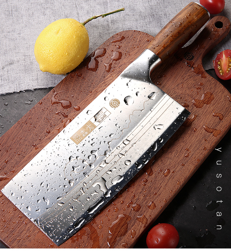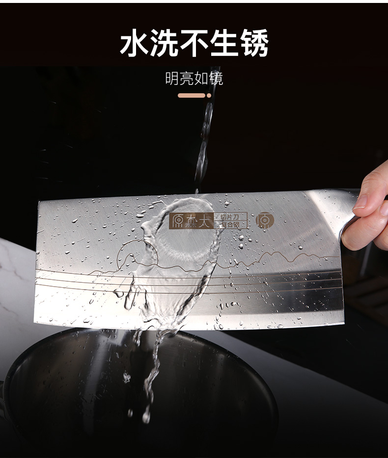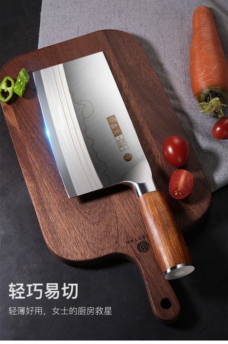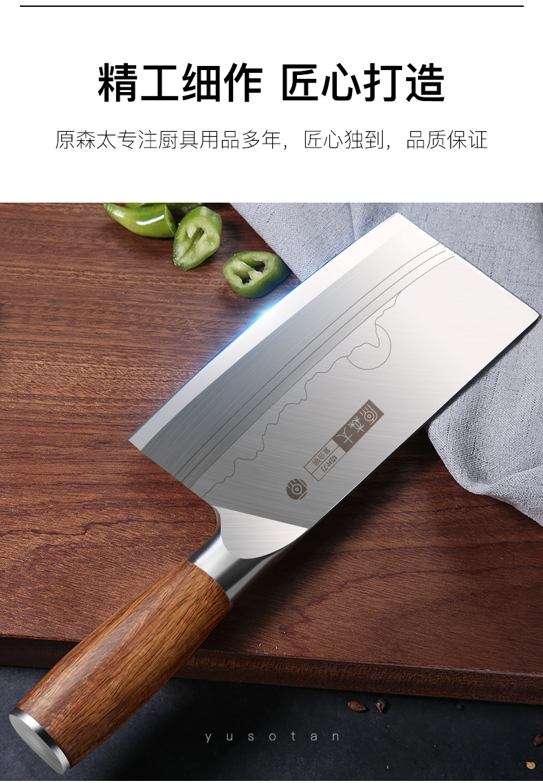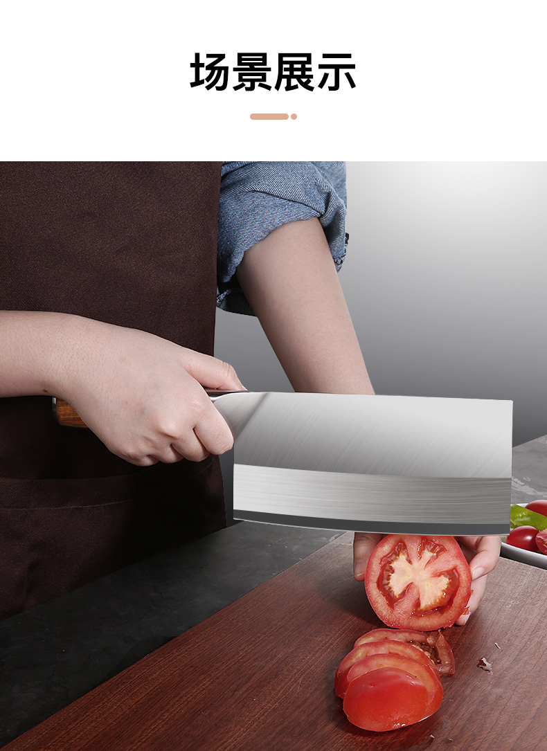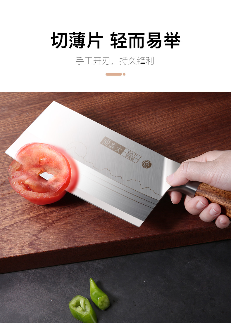 3.精选开刃砂轮与工匠,采用纯手工开刃工序,产品锋利,以切带筋牛肉作体现参考,到达轻松分解,刀刀都是那么容易;与易复磨锋利。