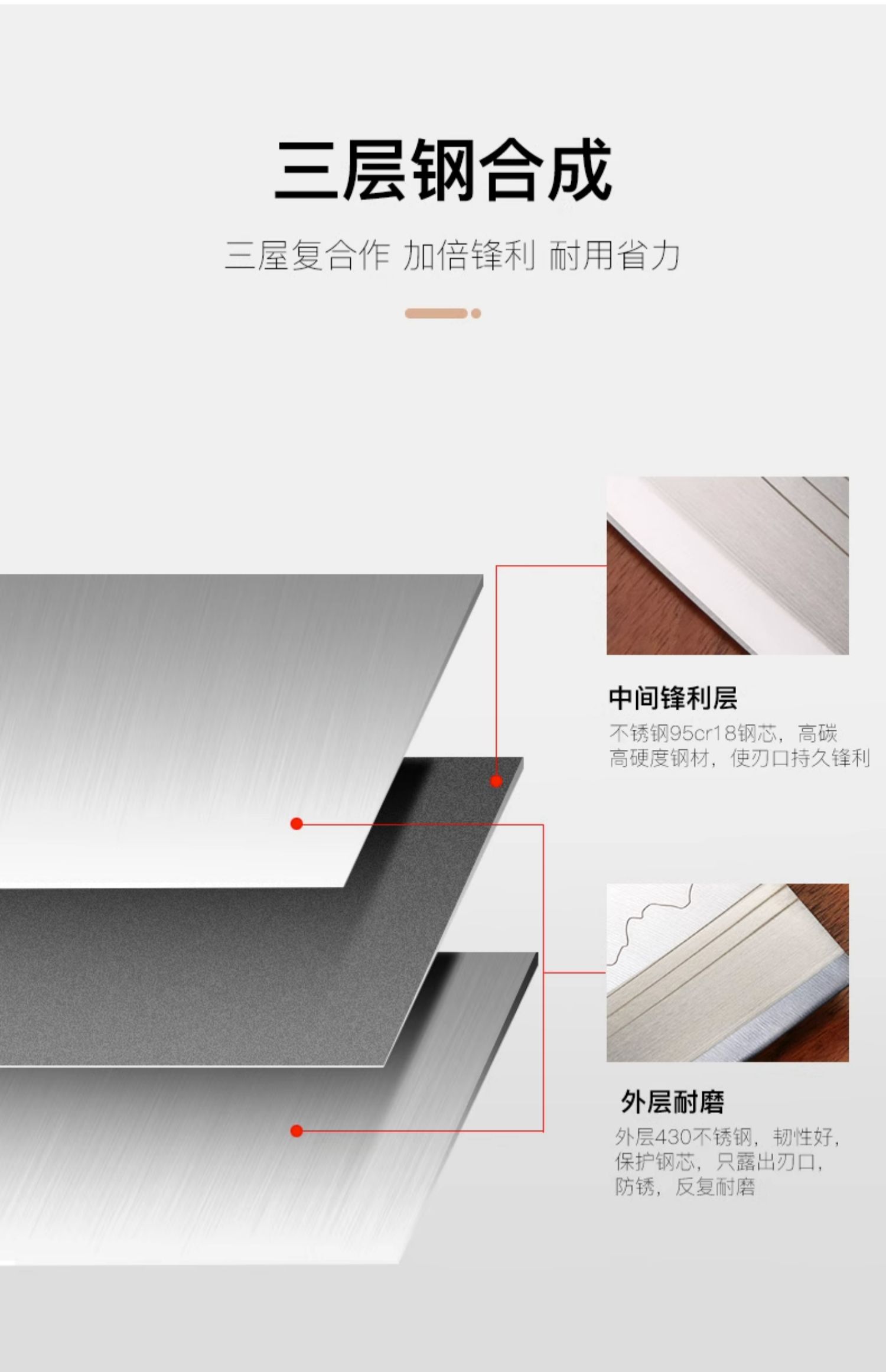 1.采用4CR13不锈钢材质,该钢质系列产品特点:更锋利、防锈、具韧性、不易断脆、晶粒更细、易复磨。