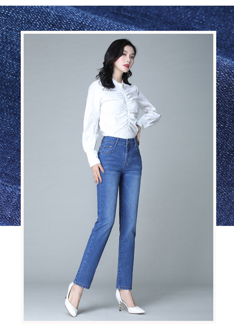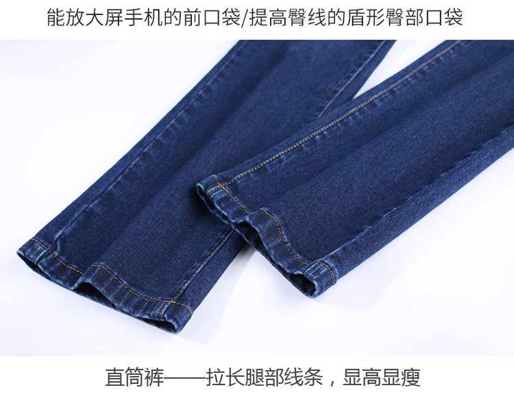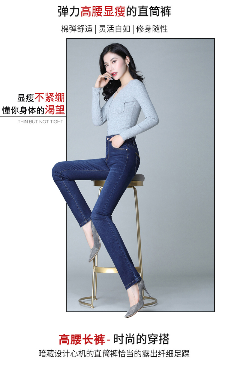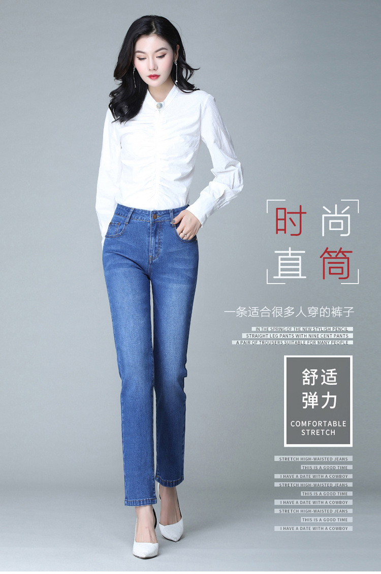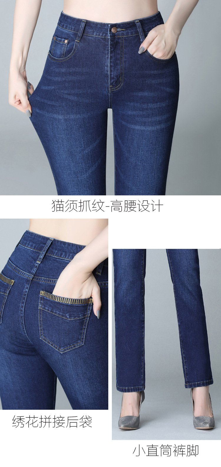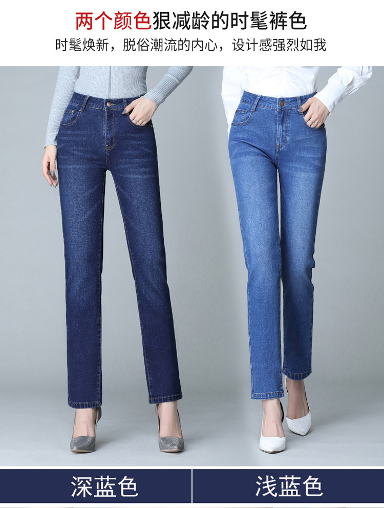 高腰牛仔裤女直筒,春季新款宽松弹力时尚中年大码显瘦大码长裤RM-001