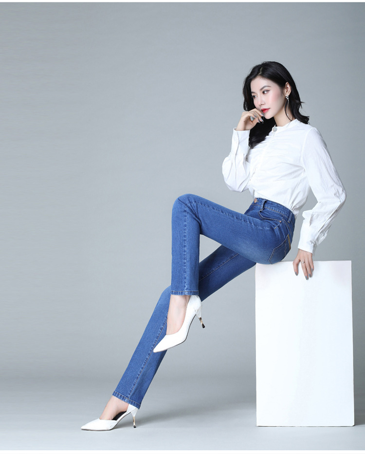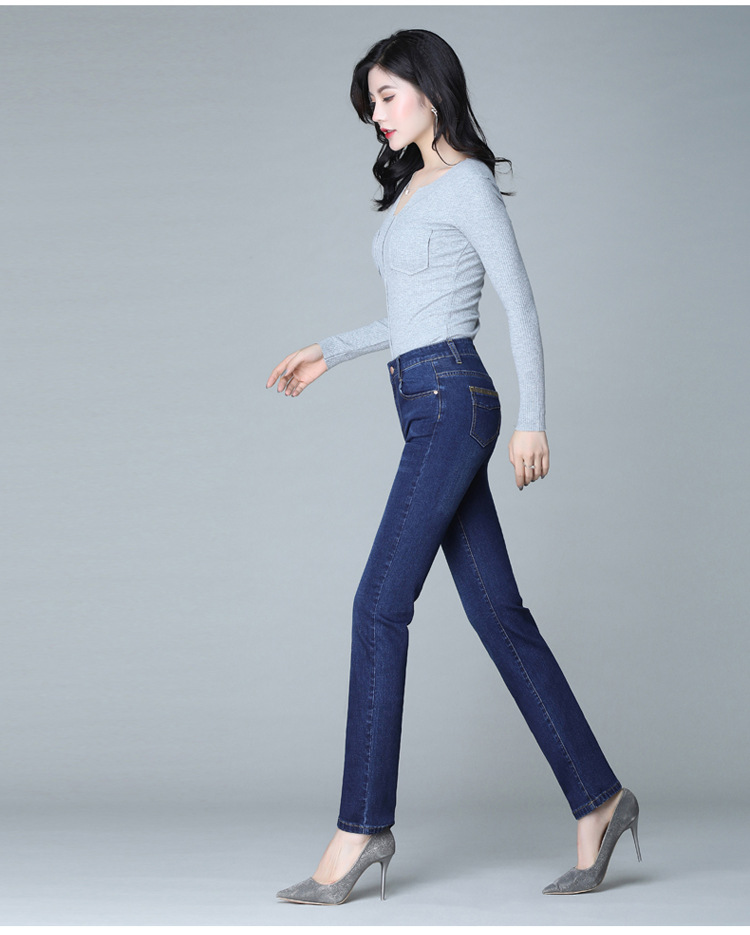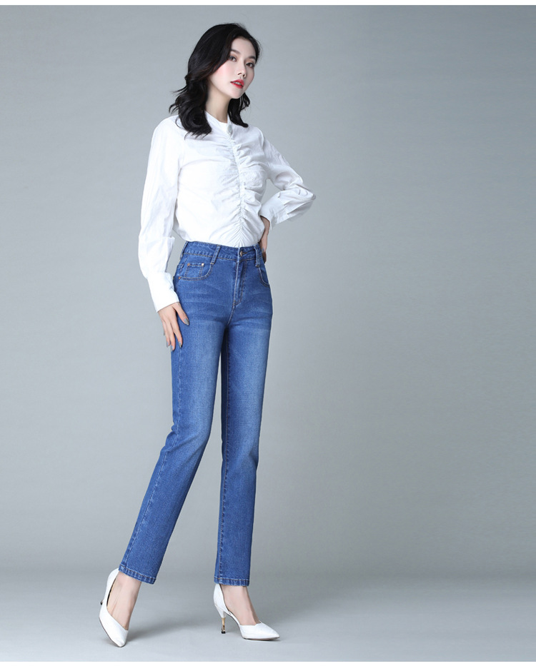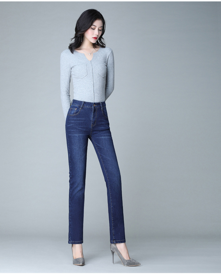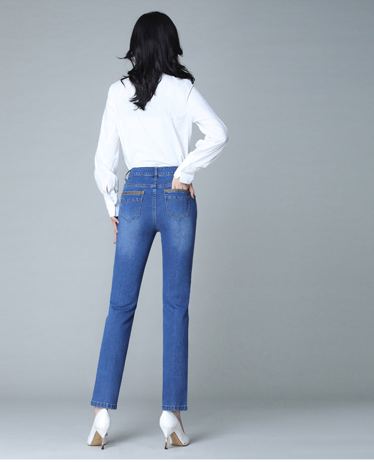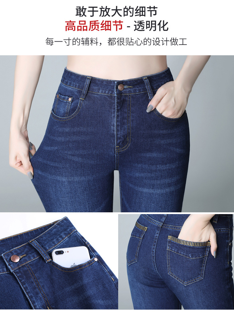 高腰牛仔裤女直筒,春季新款宽松弹力时尚中年大码显瘦大码长裤RM-001