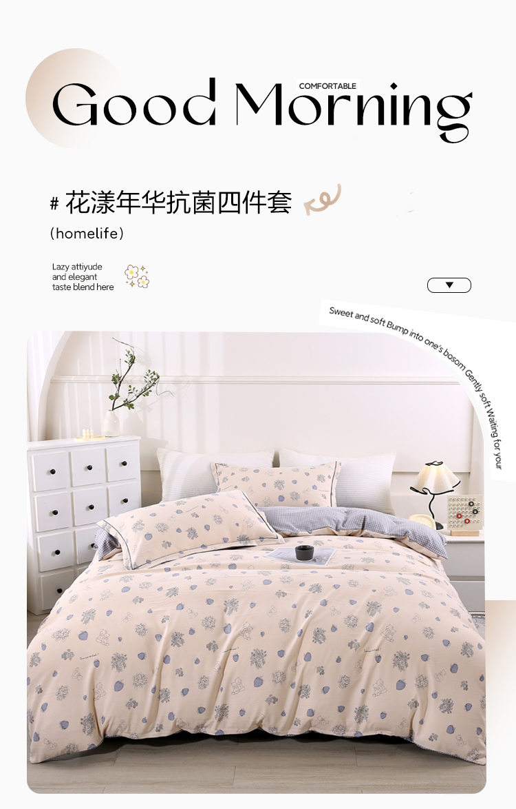 花漾年华抗菌四件套【悠梦嘉居花漾年华抗菌四件套,活性印花套件双人四件套200*230 1.5/1.8床通用时尚活性抗菌】