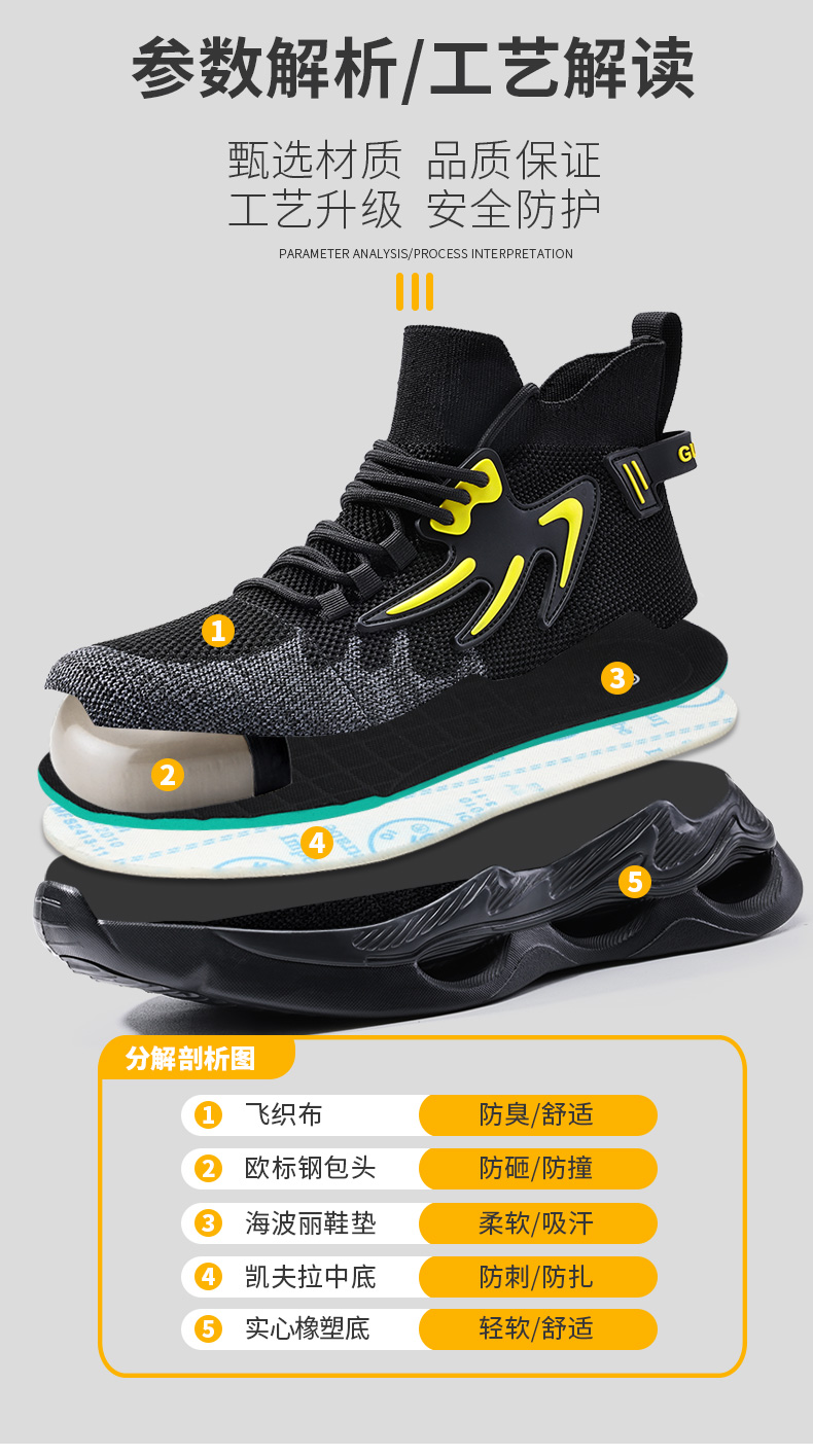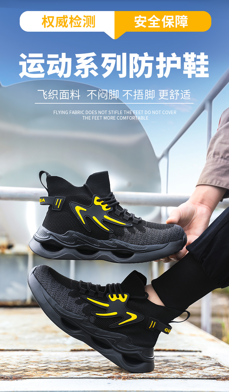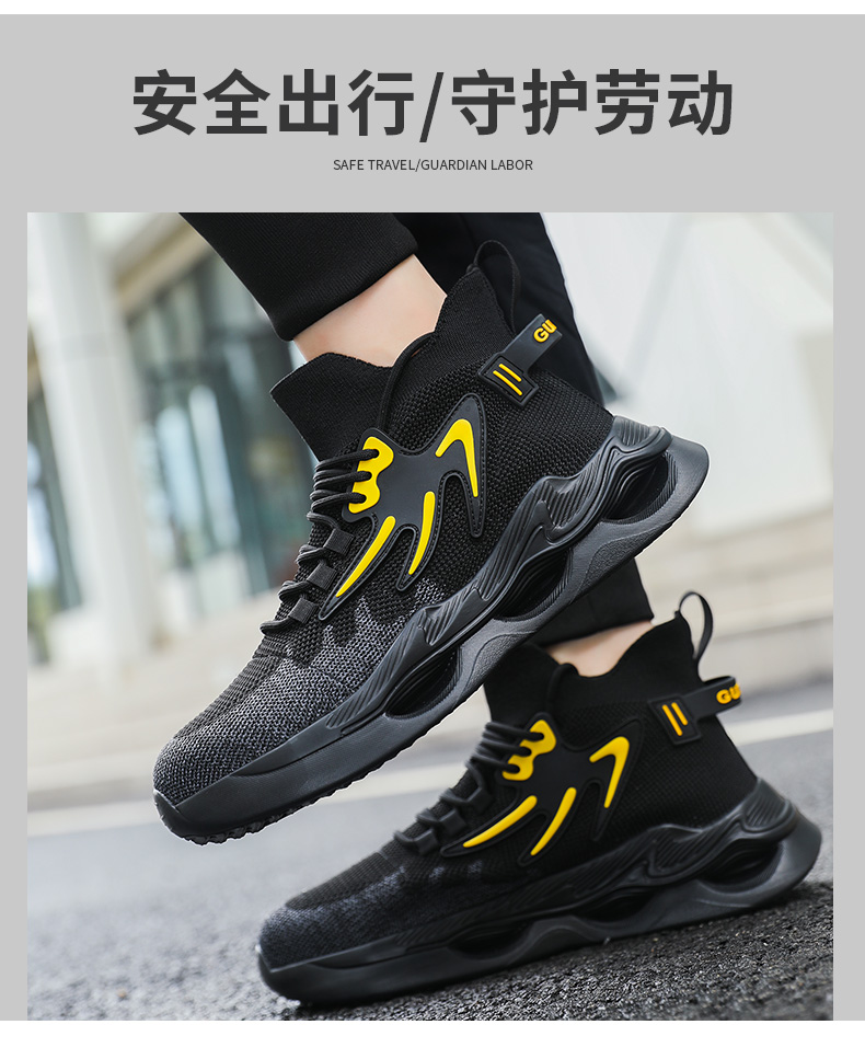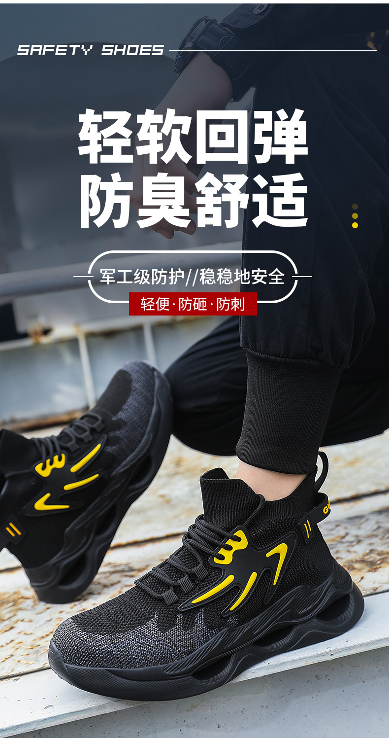 新品四季款高帮透气轻便劳保鞋男防砸防刺网布工地安全鞋