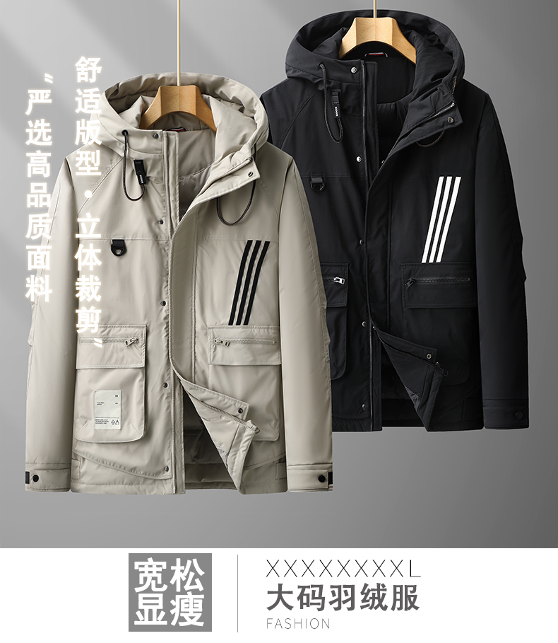 【特大码】【新款DPX】大依优型大码潮款工装连帽羽绒服鸭绒外套休闲胖子大码男休闲宽松加肥加大上衣
