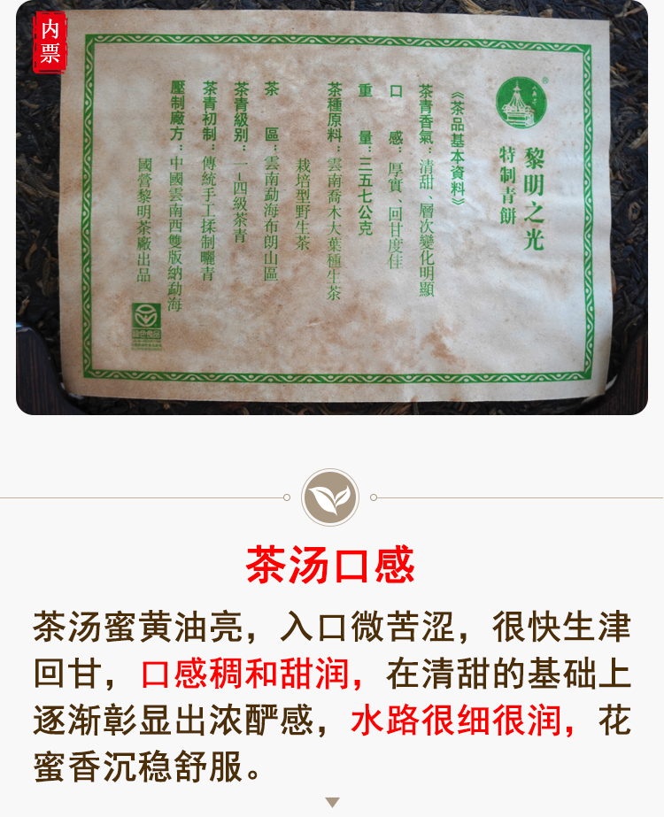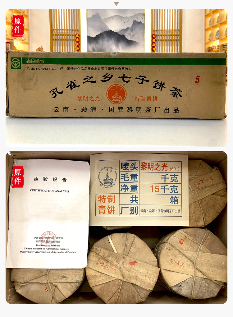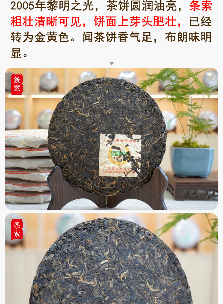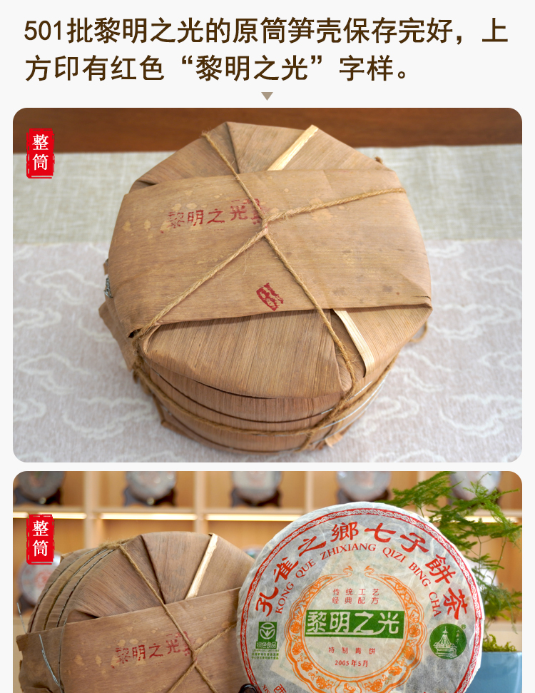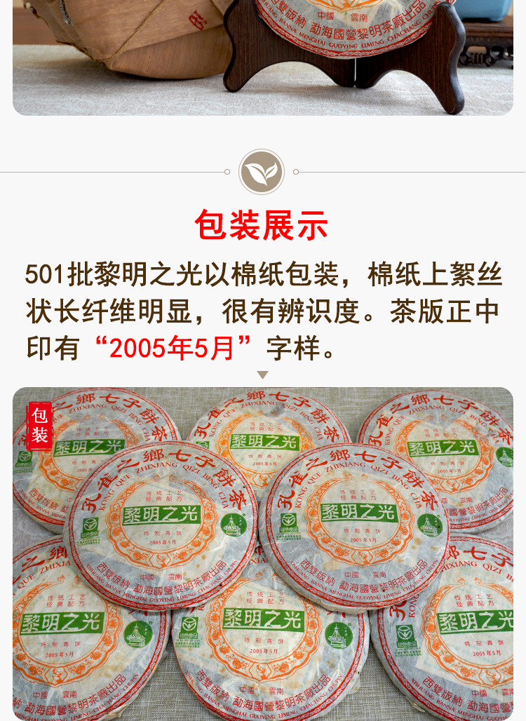2005年黎明茶厂黎明之光孔雀之乡普洱茶生茶饼 老黎明经典茶品系列之一 好仓好回甘高性价比