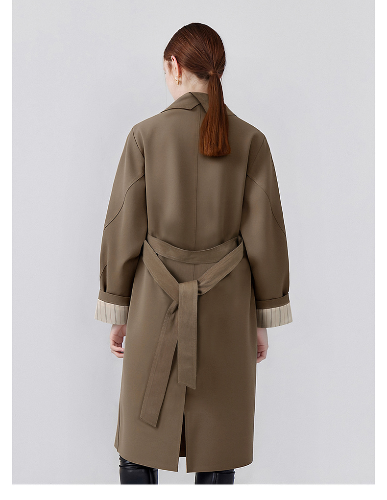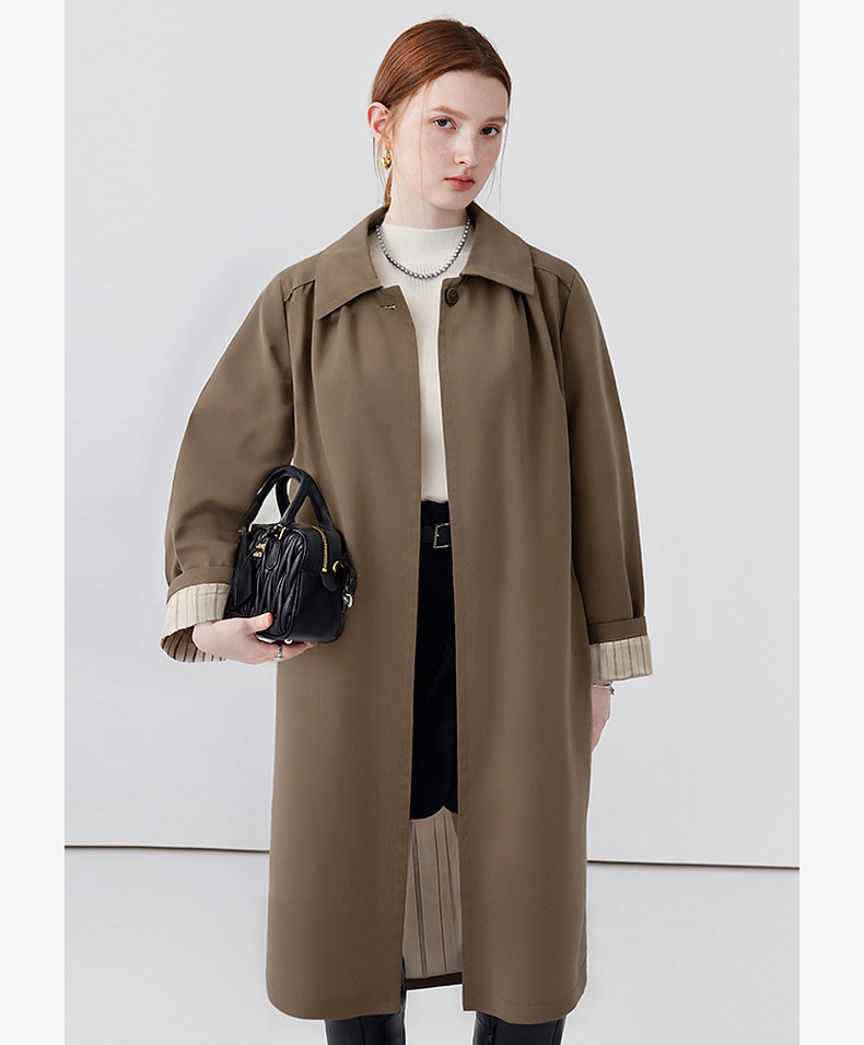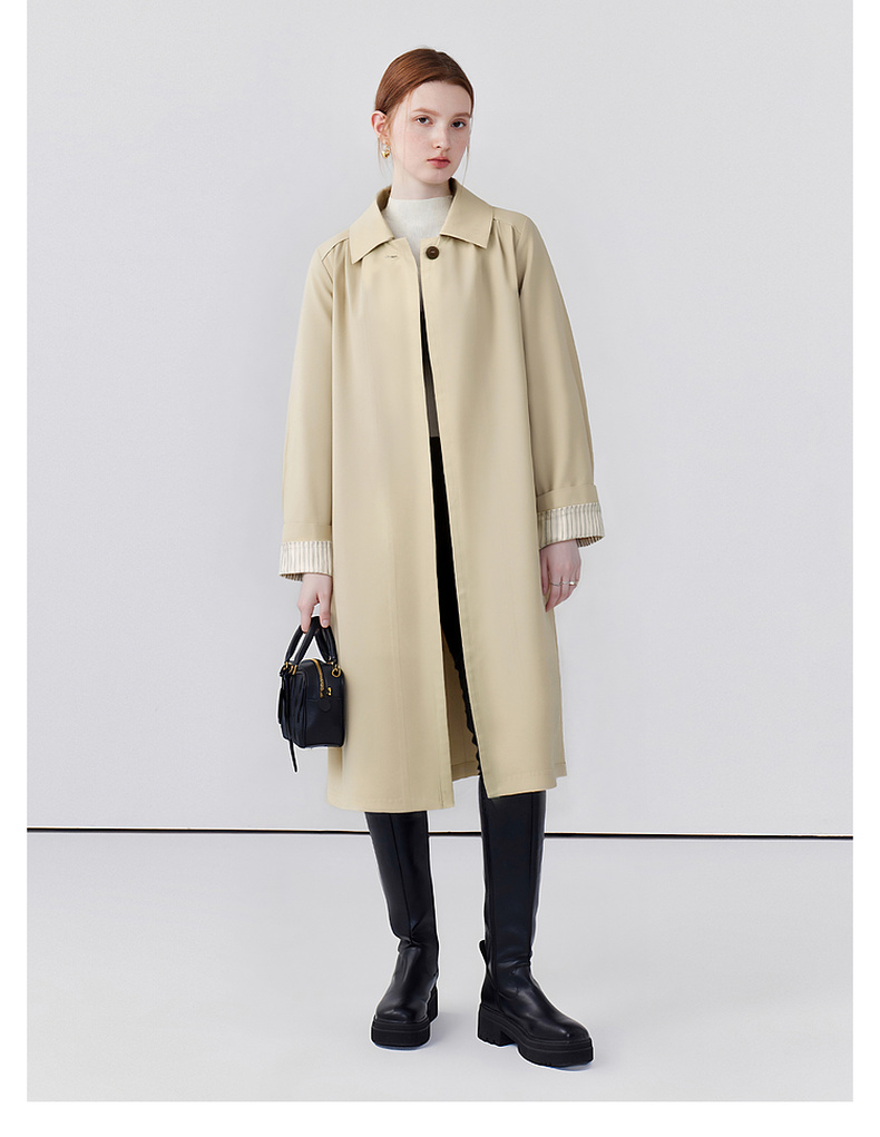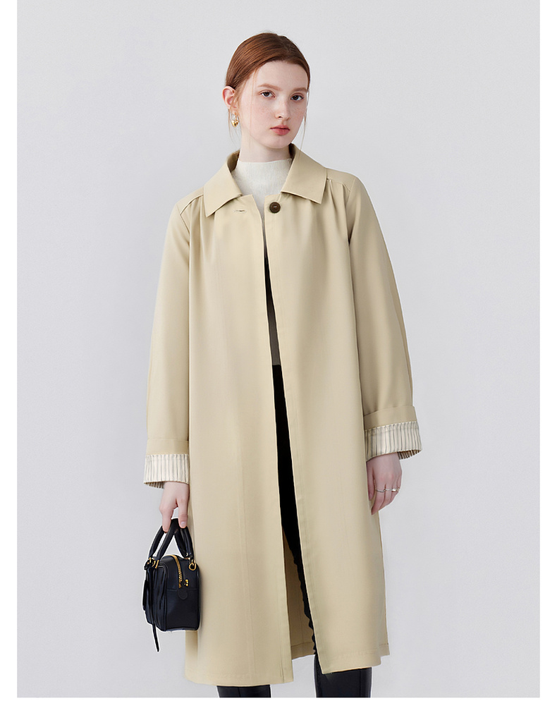 会员福利【莱赛尔+棉】拉夏贝尔/La Chapelle极简高级翻领风衣早秋韩版休闲宽松廓形大衣中长款