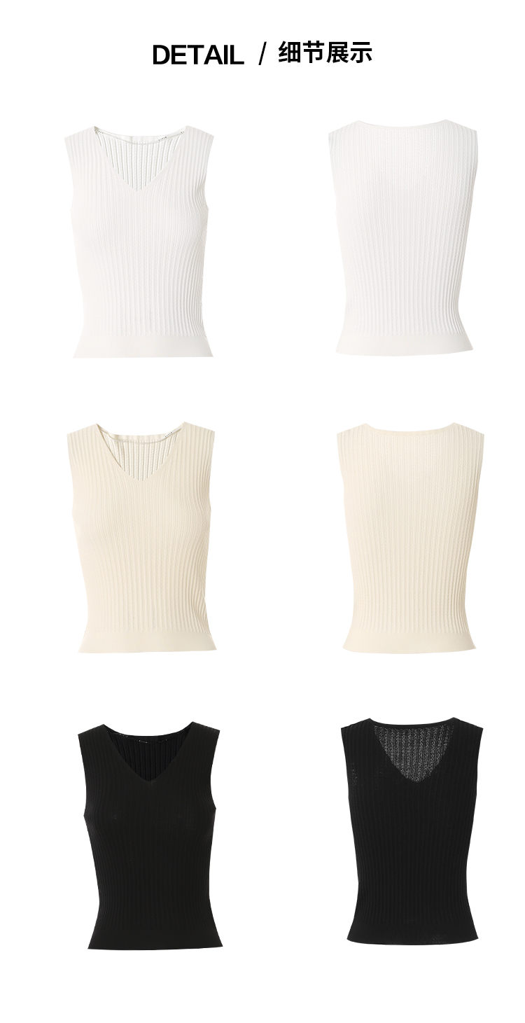 EITIE爱特爱V领修身显瘦无袖背心上衣春季新款8101805