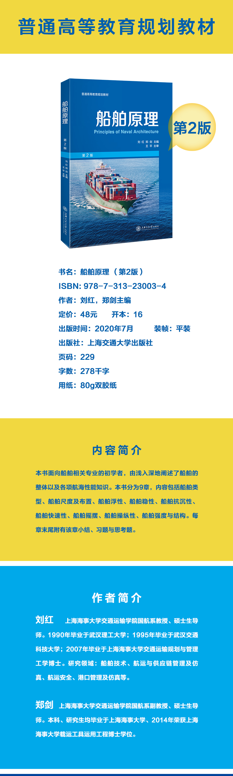 船舶原理 (第2版)9787313230034 刘红 郑剑 普通高等教育规划教材