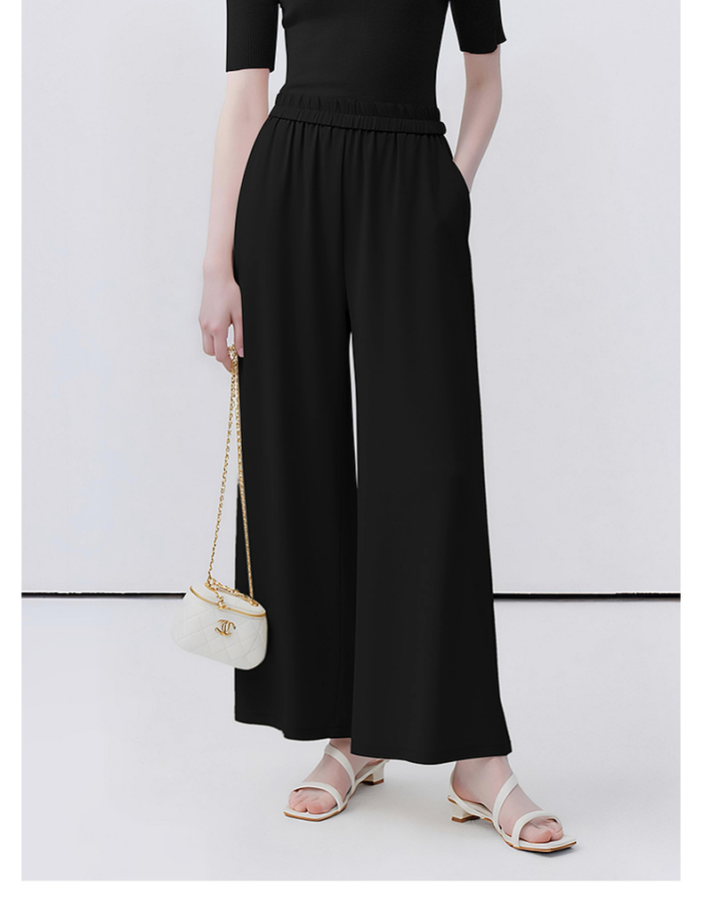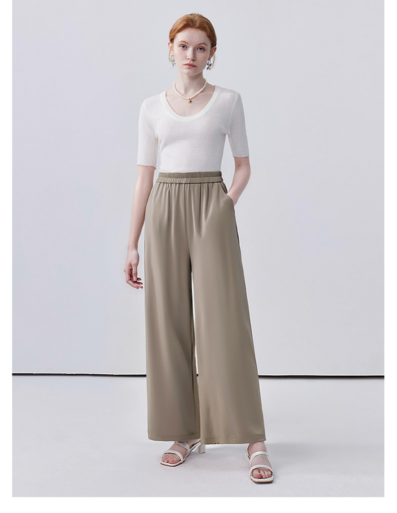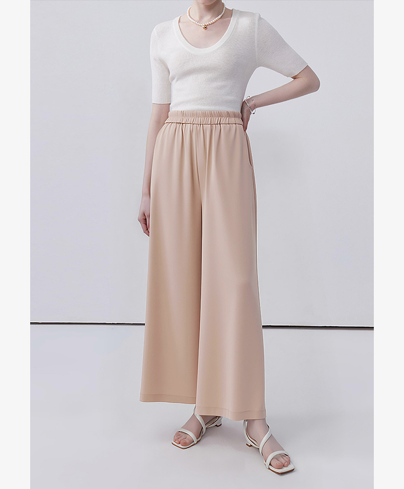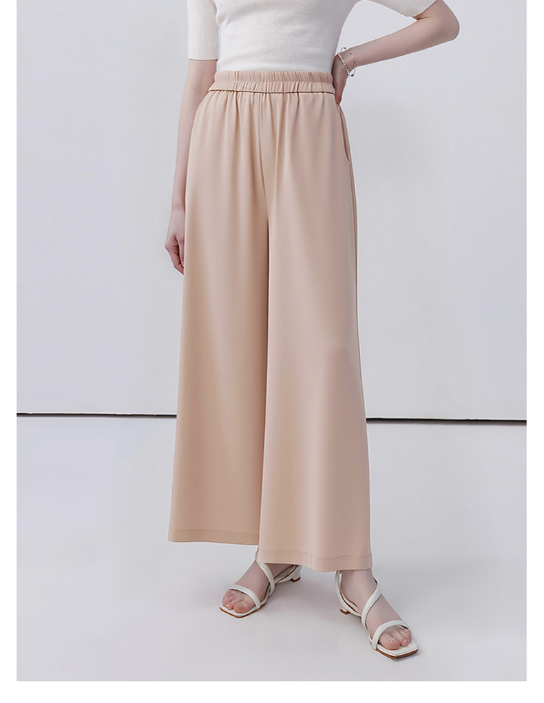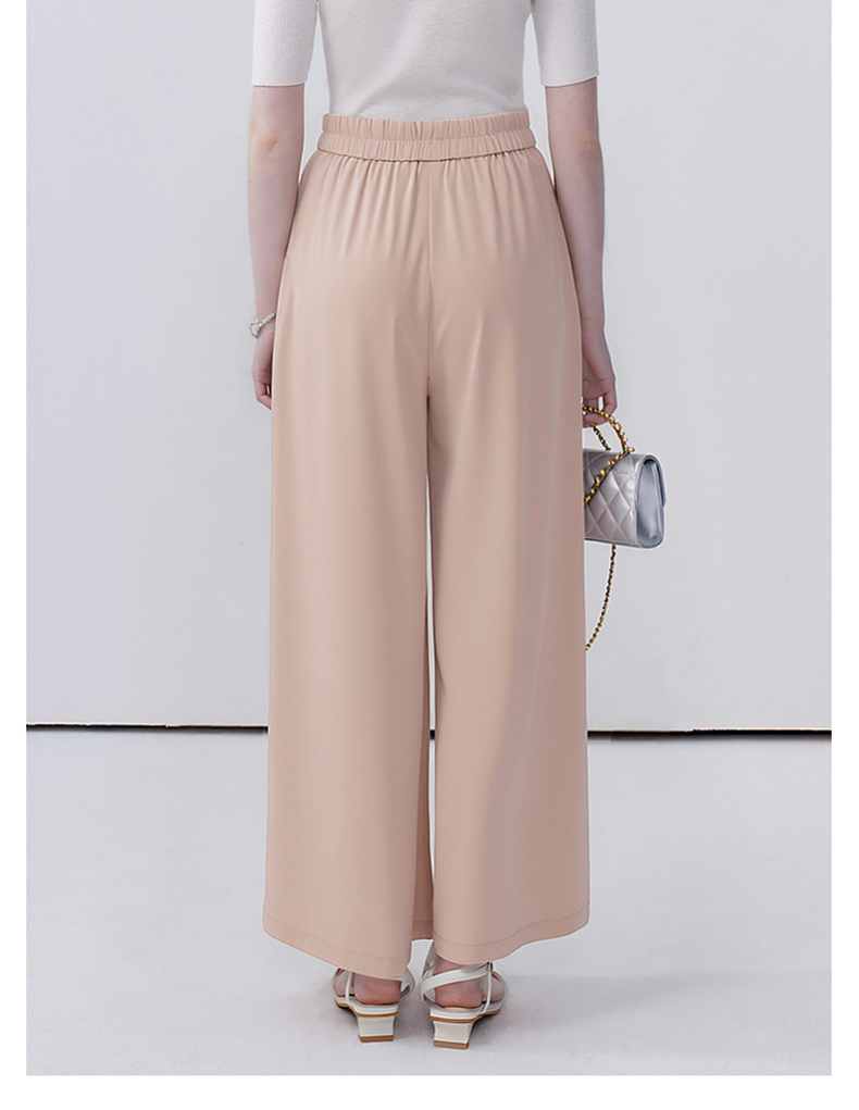 会员福利【醋酸/垂顺/丝滑】拉夏贝尔/La Chapelle高腰直筒阔腿九分裤舒爽透气松紧腰显瘦休闲裤