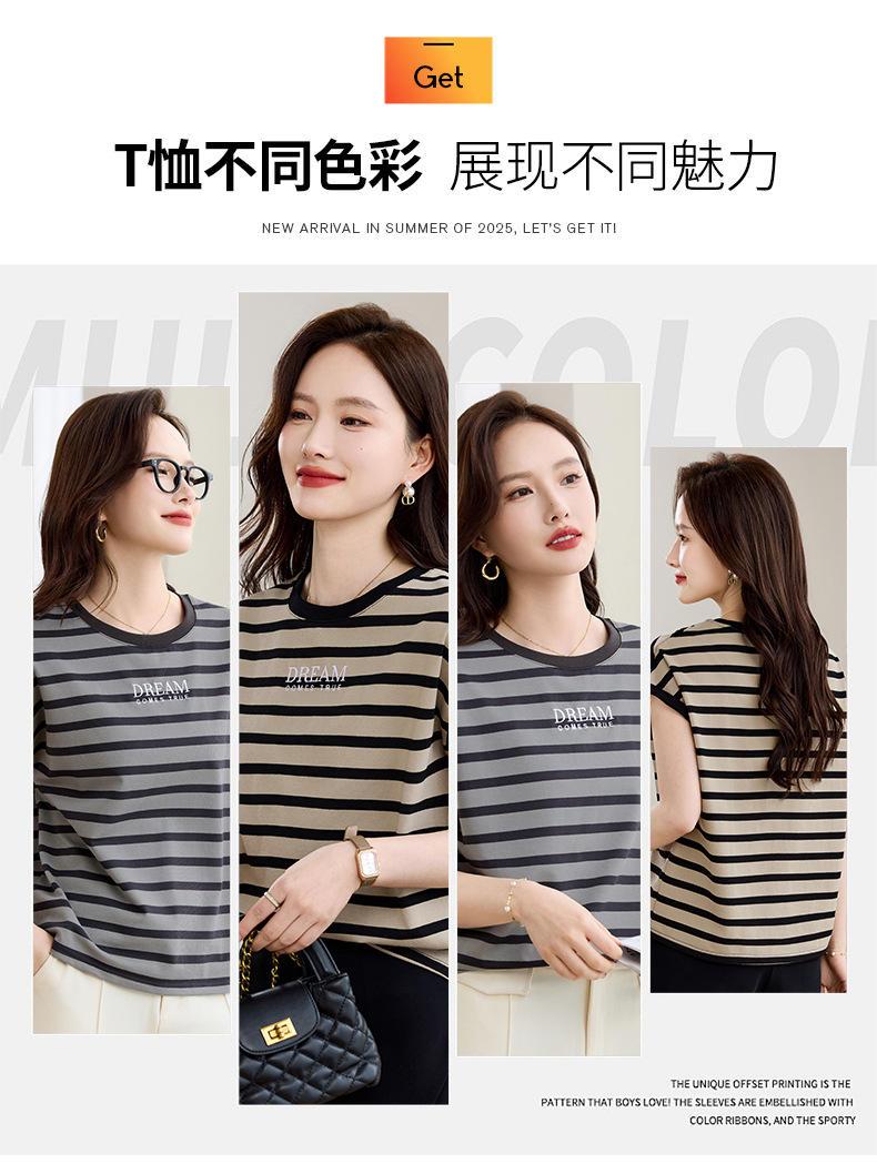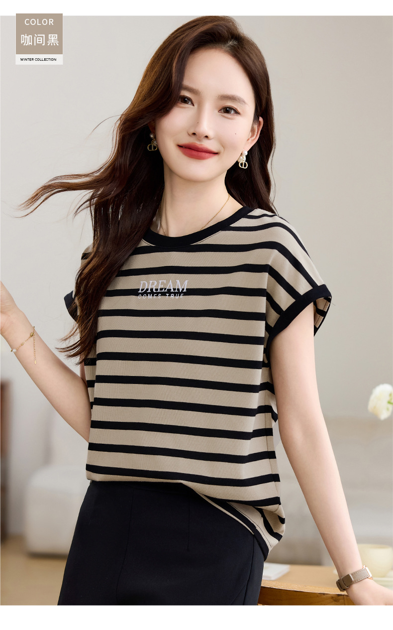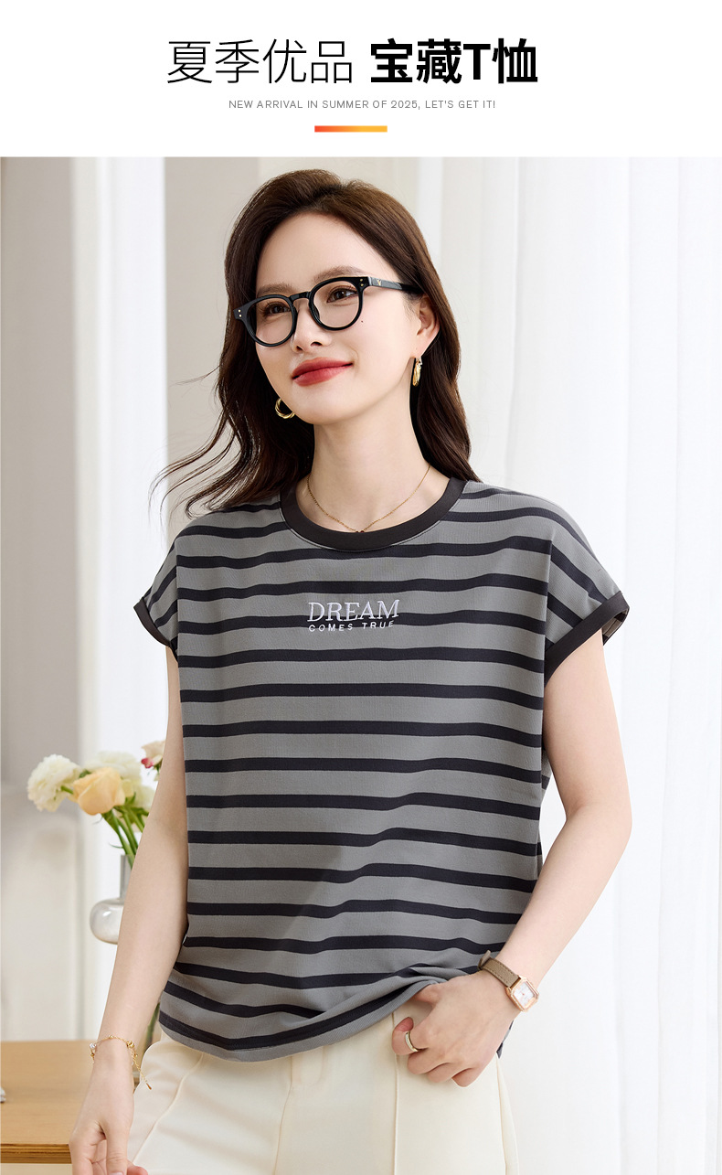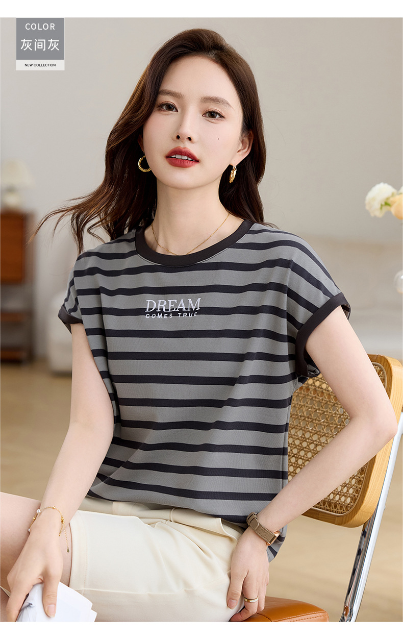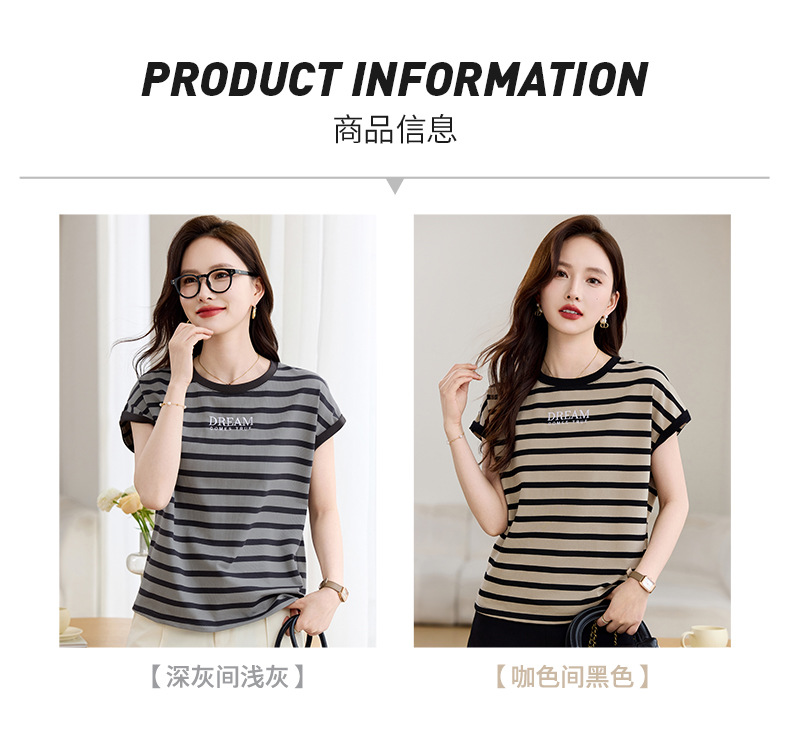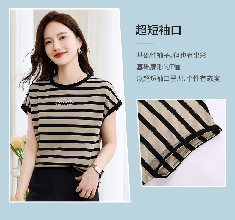 雀说条纹短袖t恤女女装小众设计感上衣宽松显瘦半袖体恤AL20061