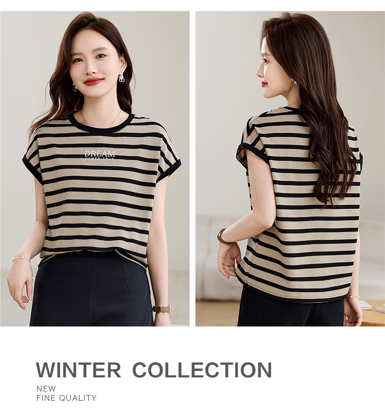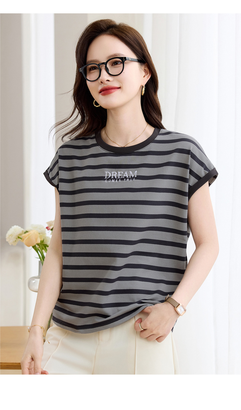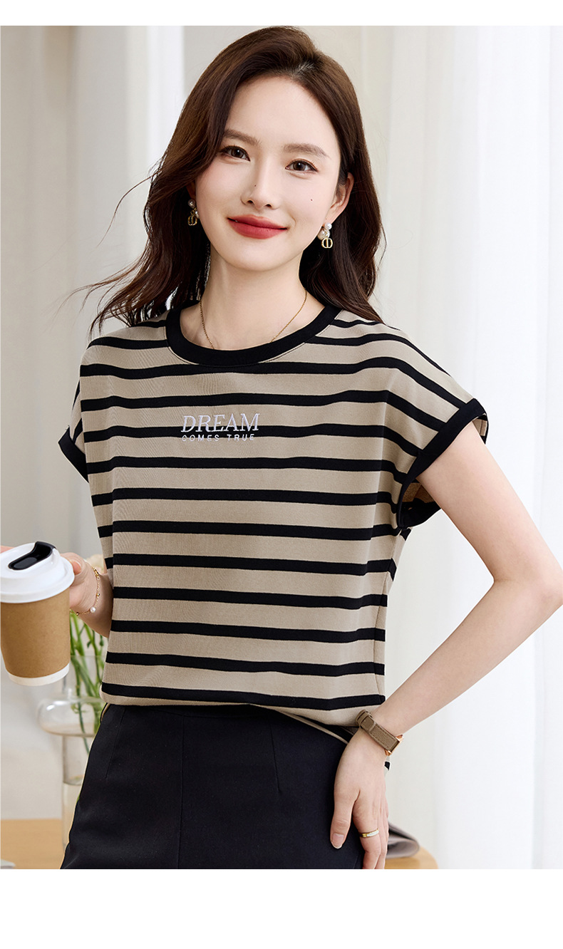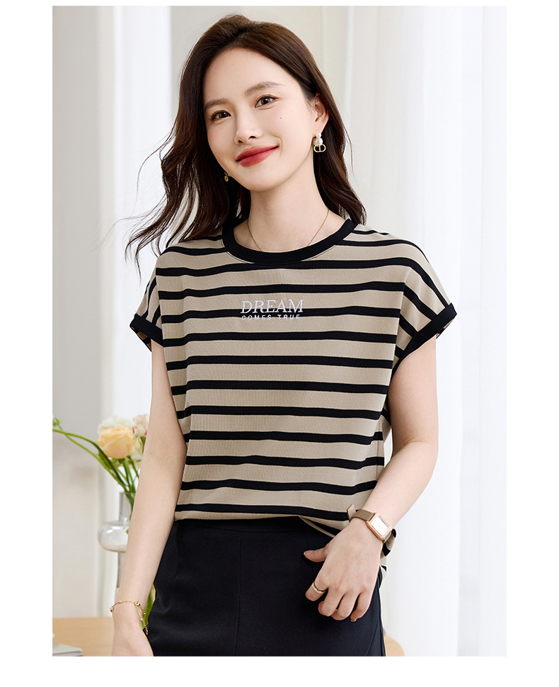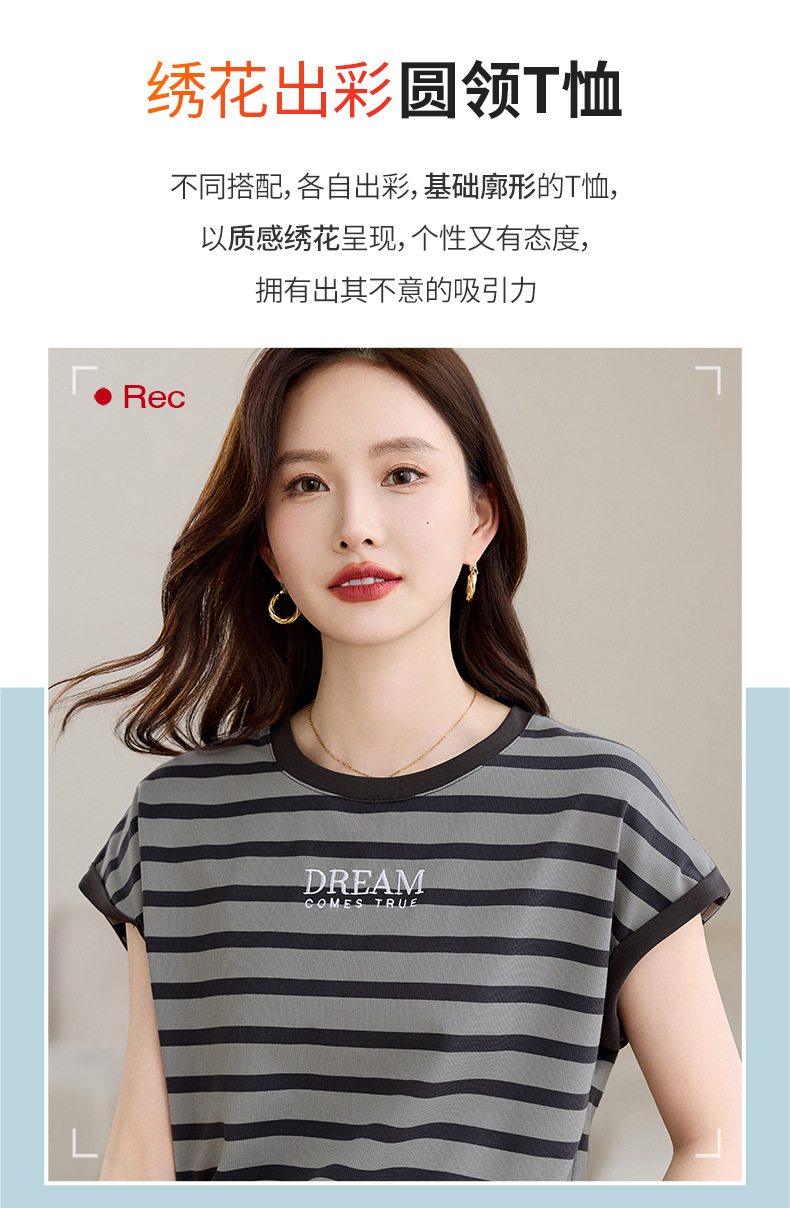 雀说条纹短袖t恤女女装小众设计感上衣宽松显瘦半袖体恤AL20061