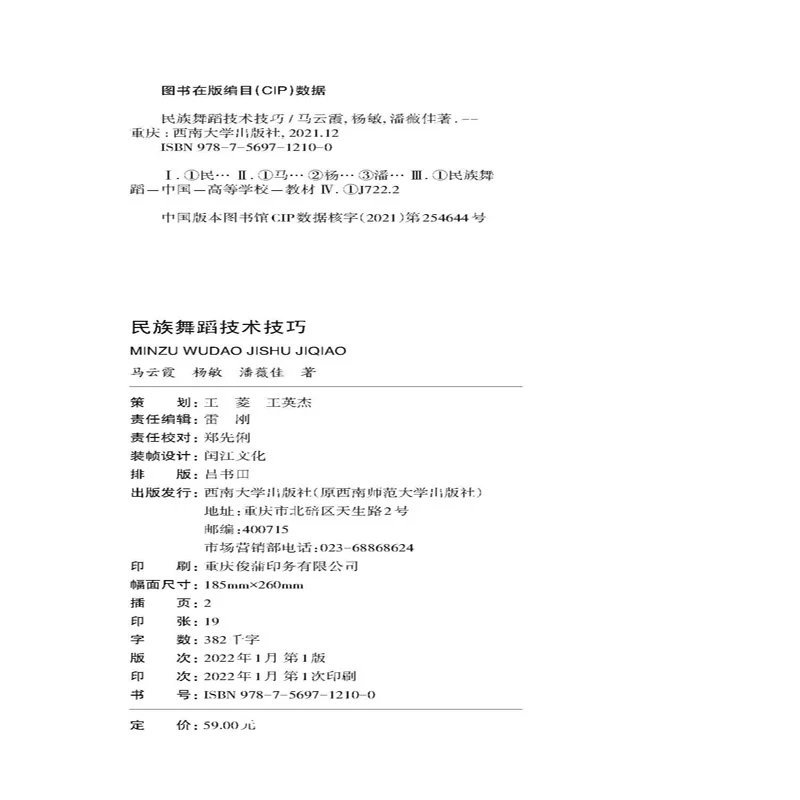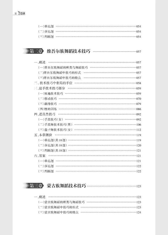 该教材包含六章:第一章“朝鲜族舞蹈技术技巧”、第二章“维吾尔族舞蹈技术技巧”、第三章“蒙古族舞蹈技术技巧”、第四章“藏族舞蹈技术技巧”、第五章“傣族舞蹈技术技巧”、第六章“彝族舞蹈技术技巧”。每章均含有概述、常用手位、徒手技术技巧(或动作技术技巧)、道具技术技巧,对舞蹈练习中易犯错误进行了总结并提供了解决方案,设计了科学系统的“本章测验”和“答案”,适合大学本科舞蹈相关专业。 |