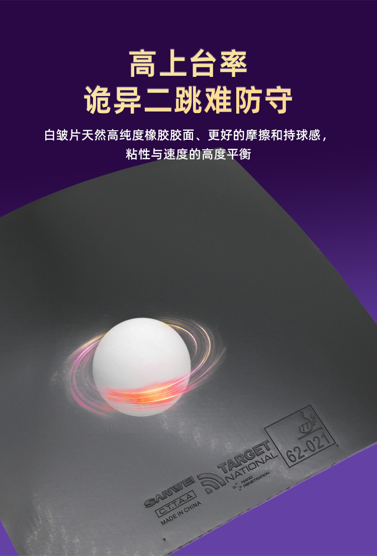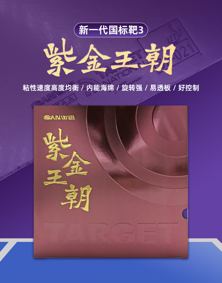 Sanwei三维国标靶紫金王朝专业乒乓球胶皮内能海绵粘性反胶套胶