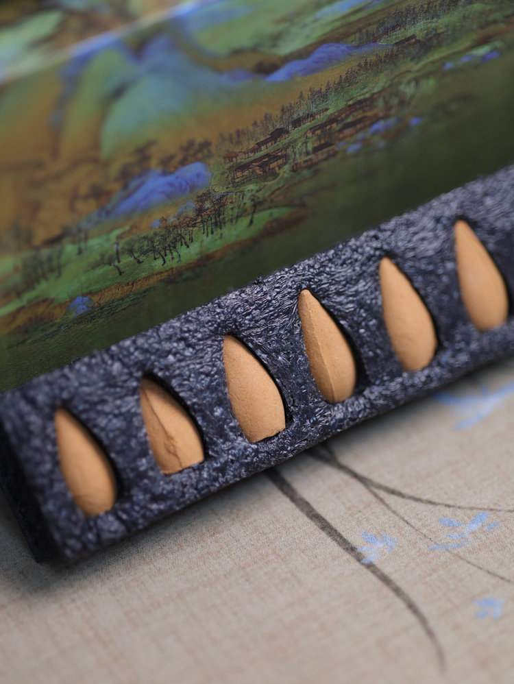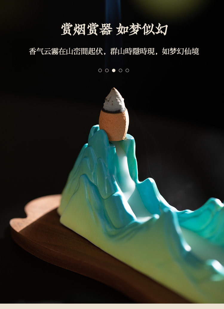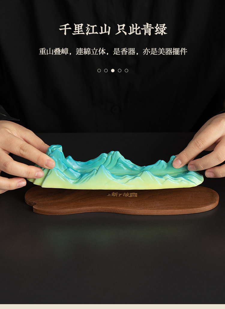 老檀香10g、倒流香*1盒(10粒)、千里江山陶瓷香插*1、胡桃木垫*1、礼盒+手提礼袋