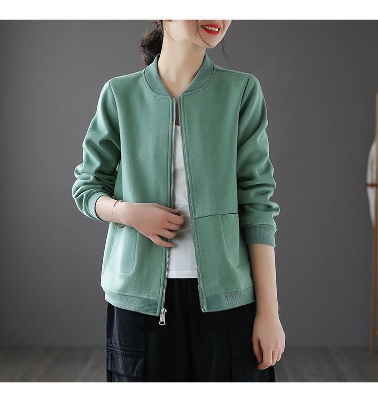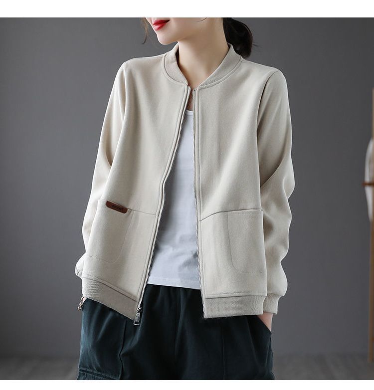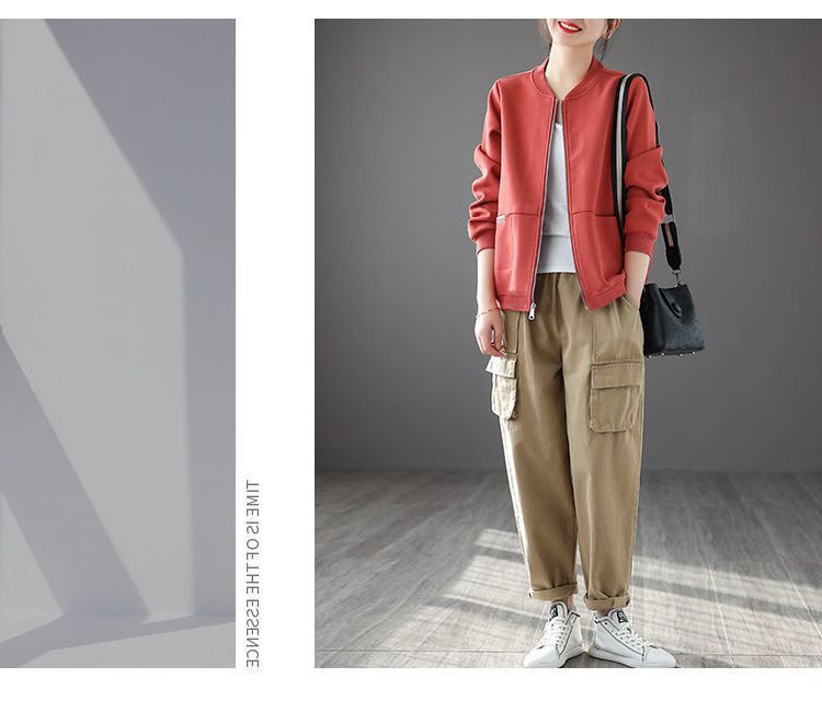 雀说 女士短外套女春秋潮宽松拉链开衫卫衣20240813001