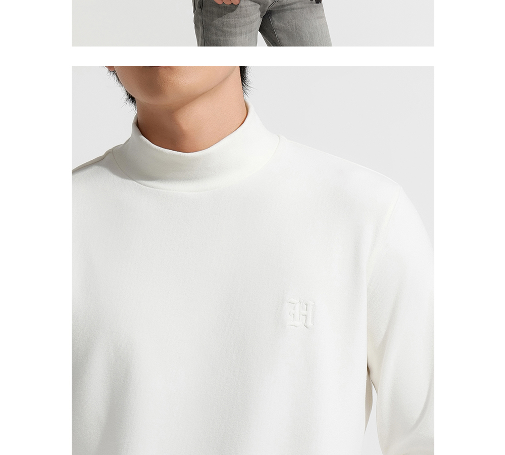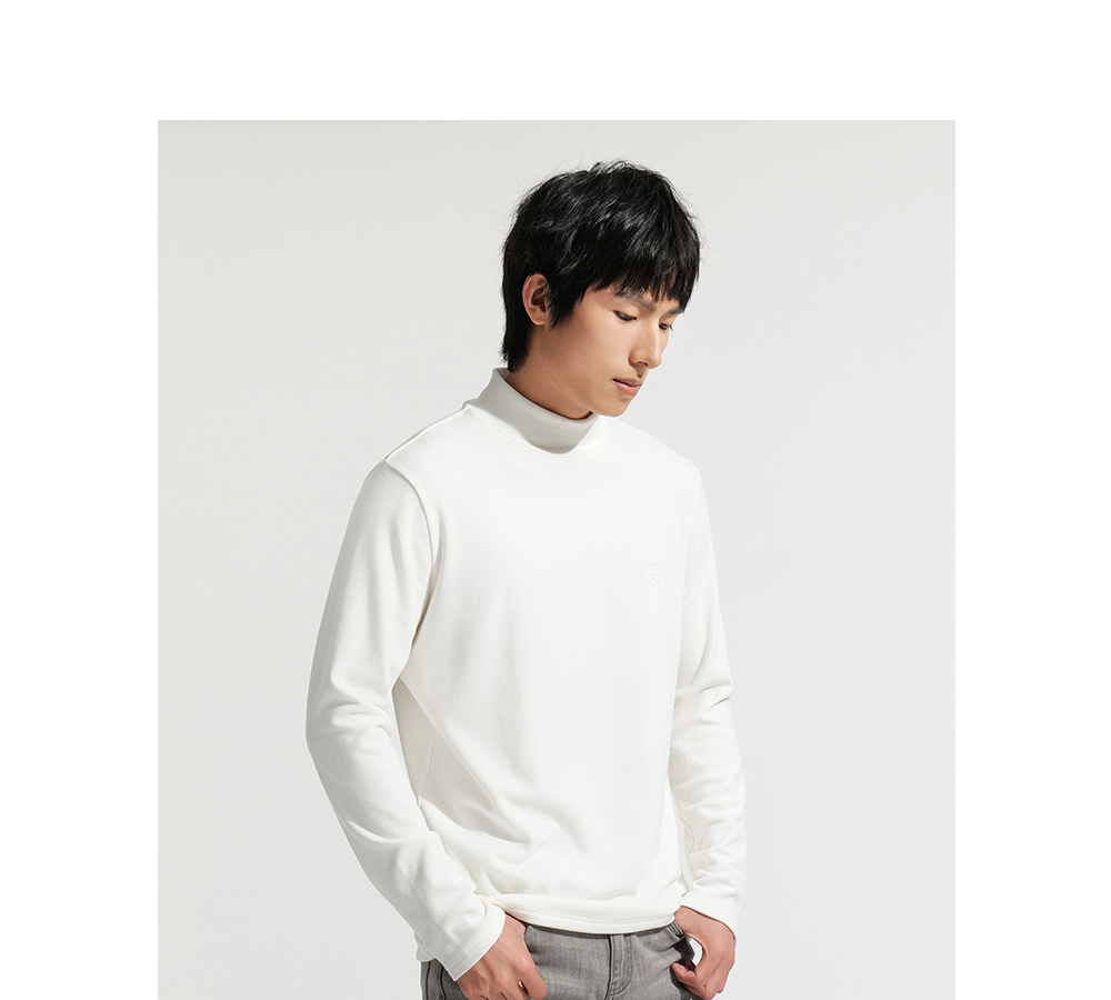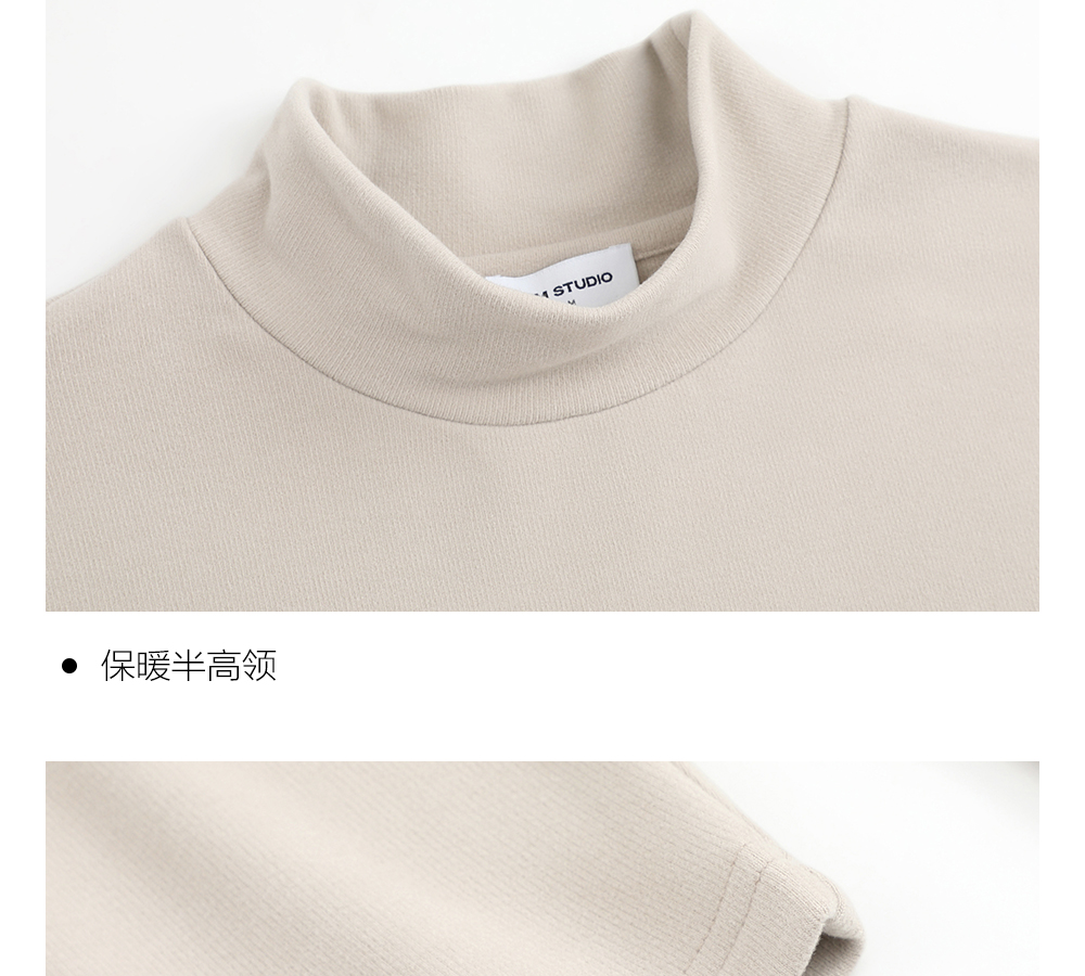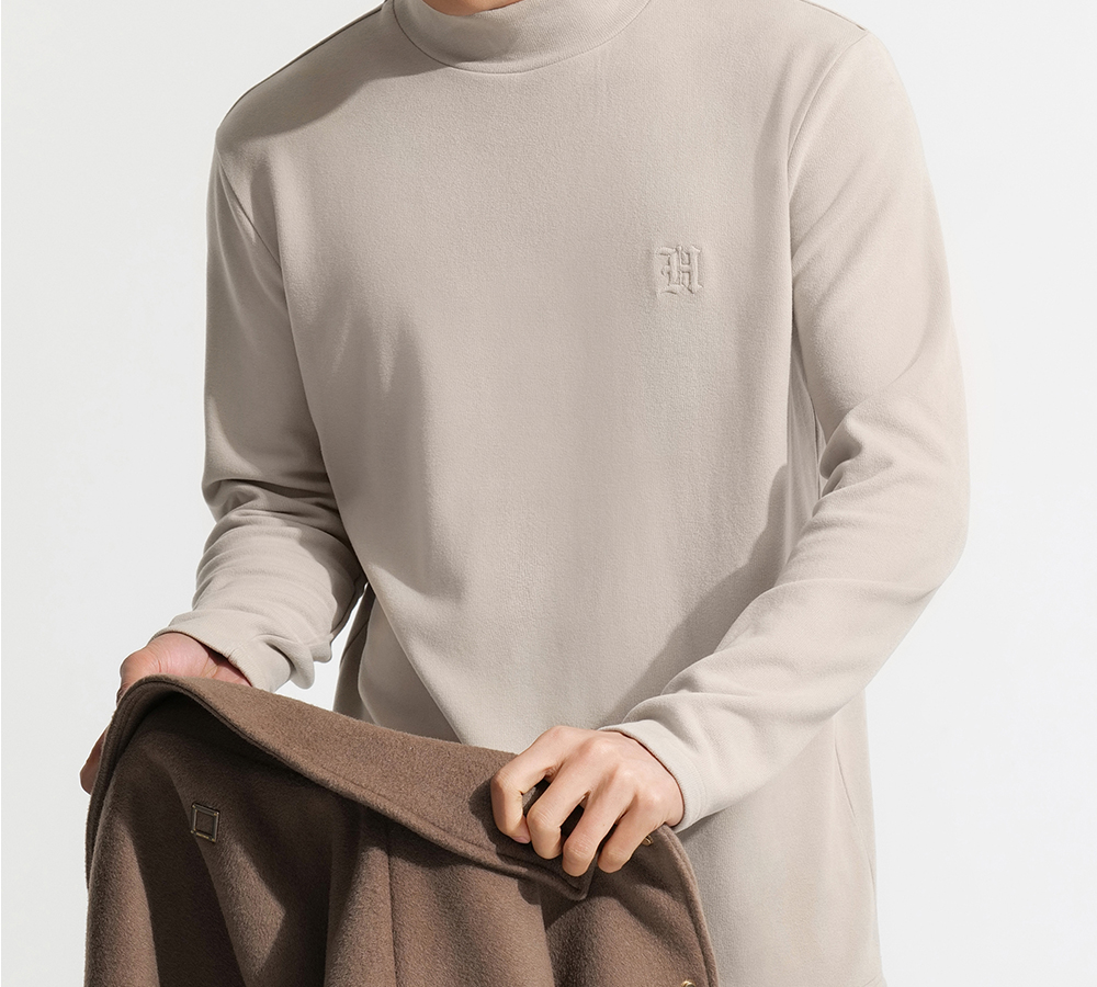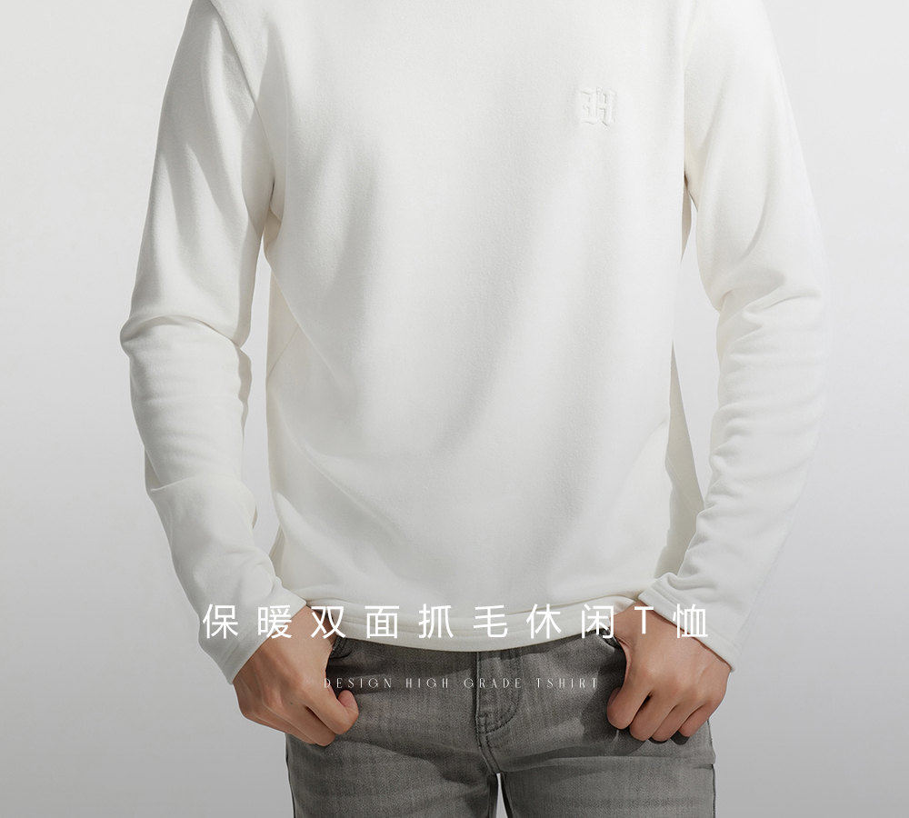 HIM漢崇 保暖双面抓毛休闲T恤半高领修身亲肤保暖打底衫 2025冬季