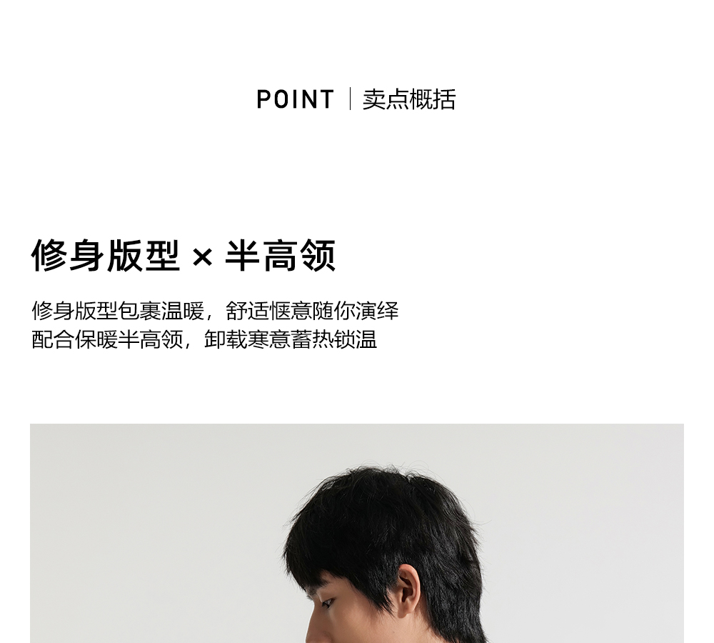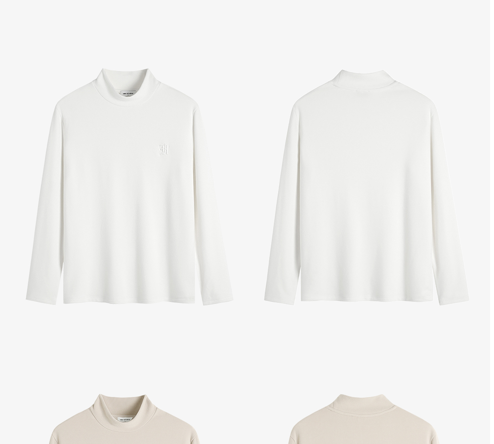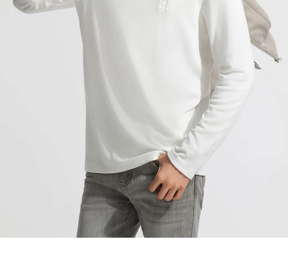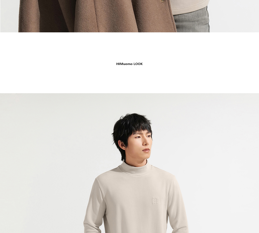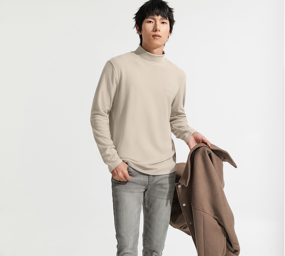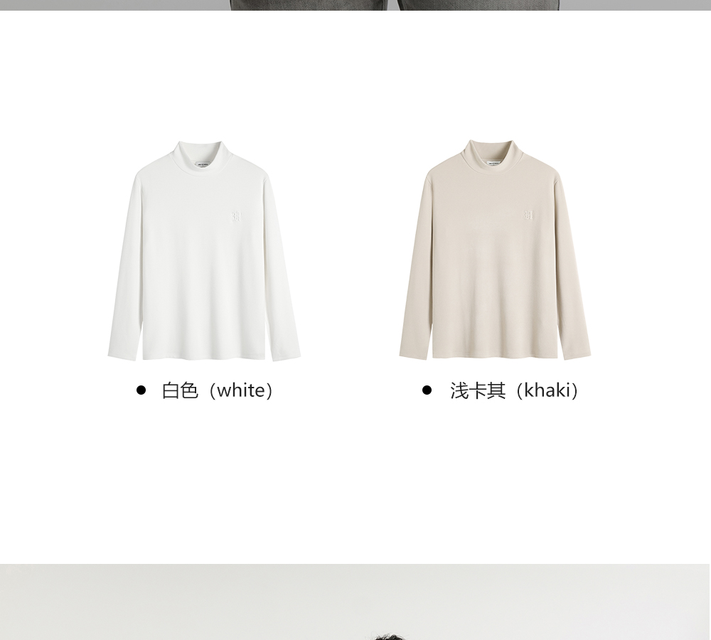 HIM漢崇 保暖双面抓毛休闲T恤半高领修身亲肤保暖打底衫 2025冬季
