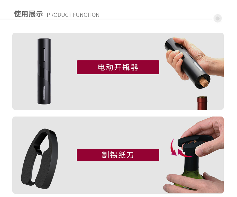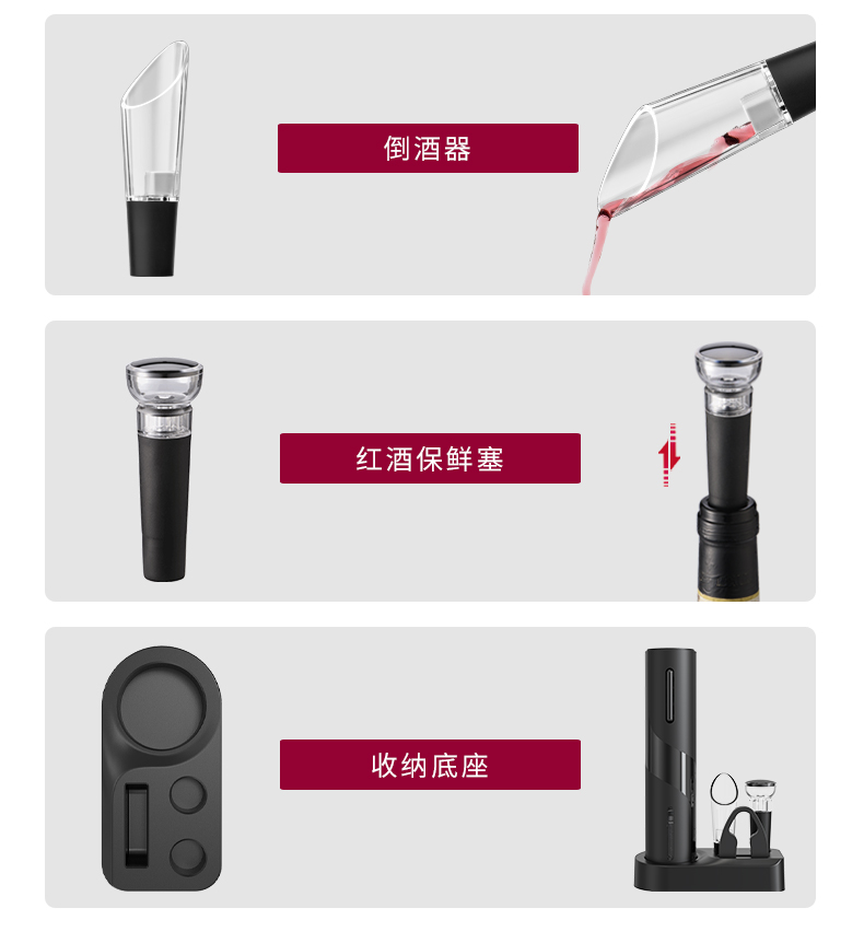 红酒电动开瓶器套装 去锡箔纸、到开酒、再到存酒!告别蛮力,数秒快速开瓶!喝红酒,本就该这么轻松优雅!