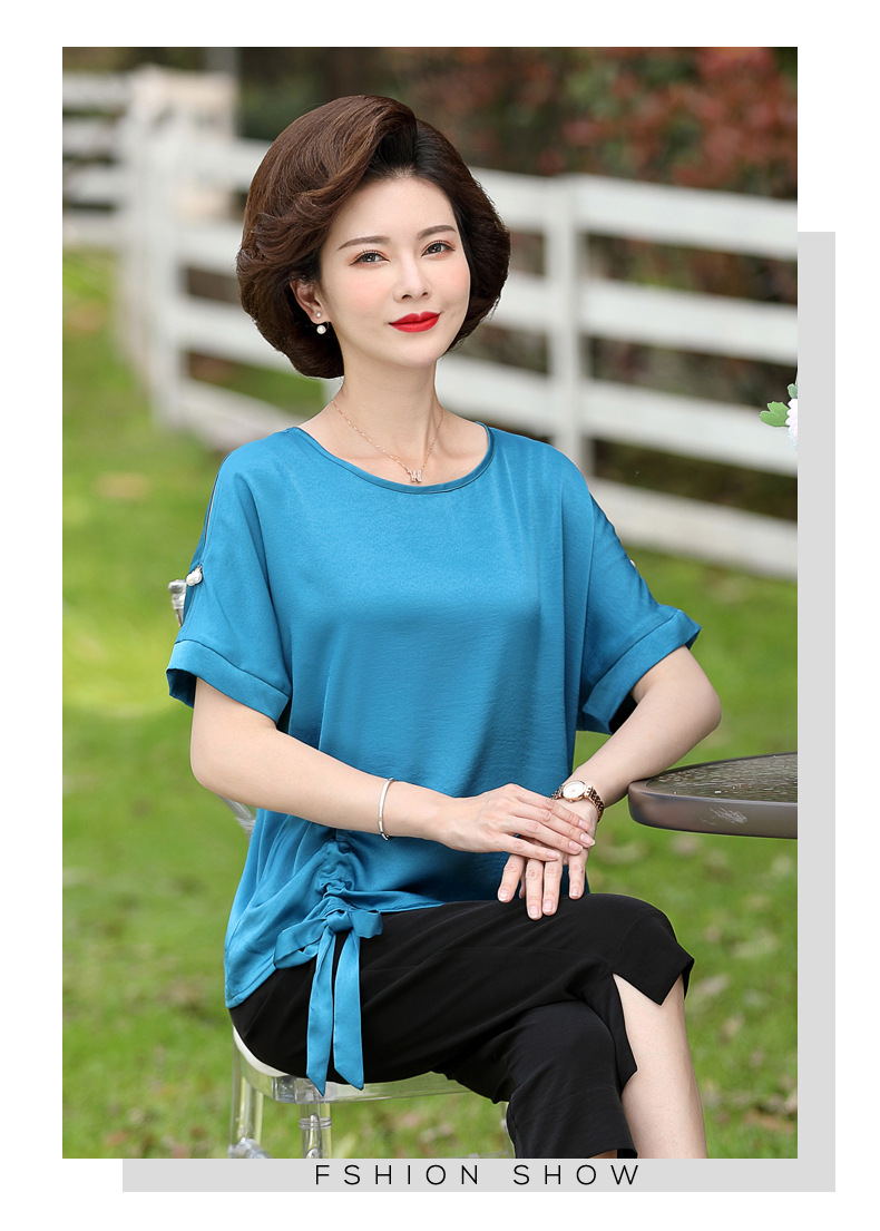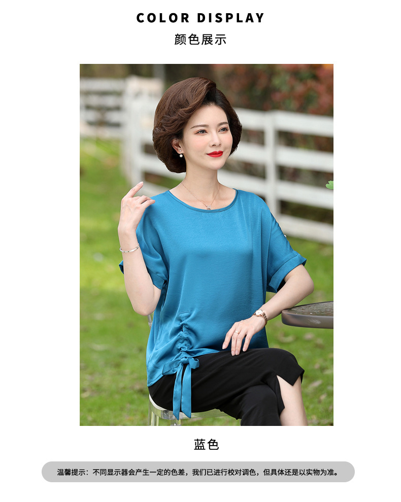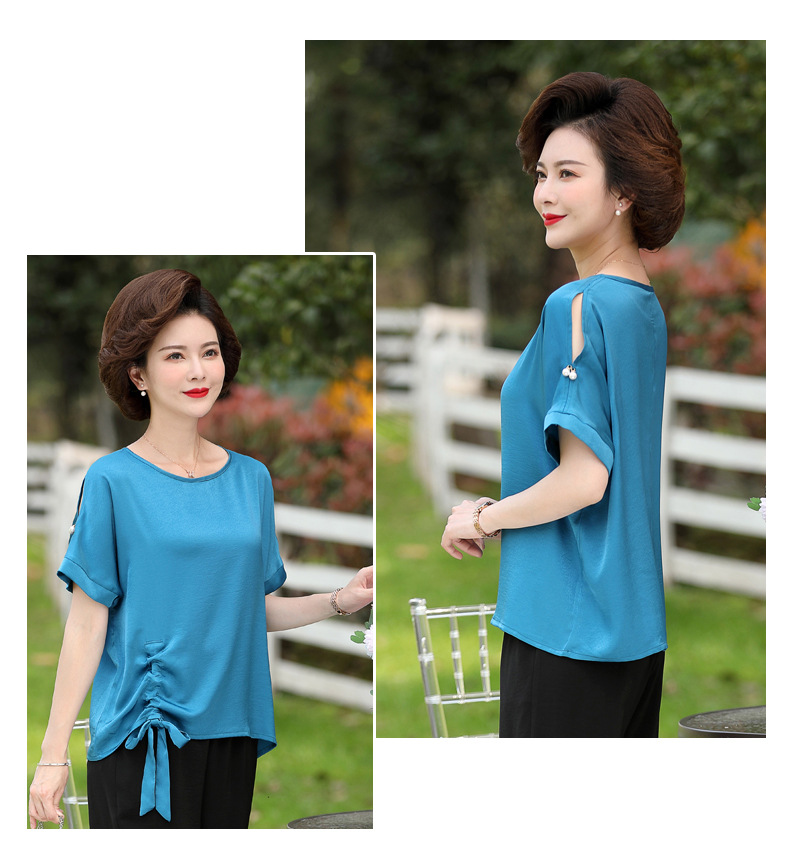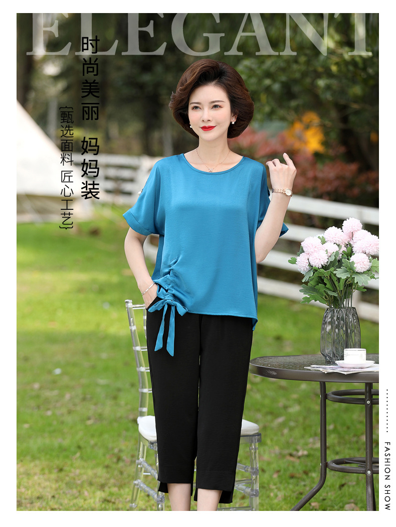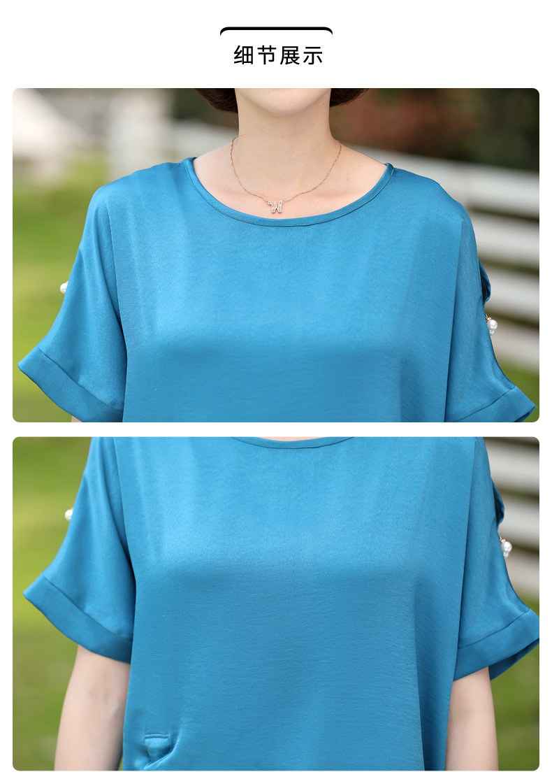 YMS-NAF2257新款缎面中年妈妈夏装两件套装
