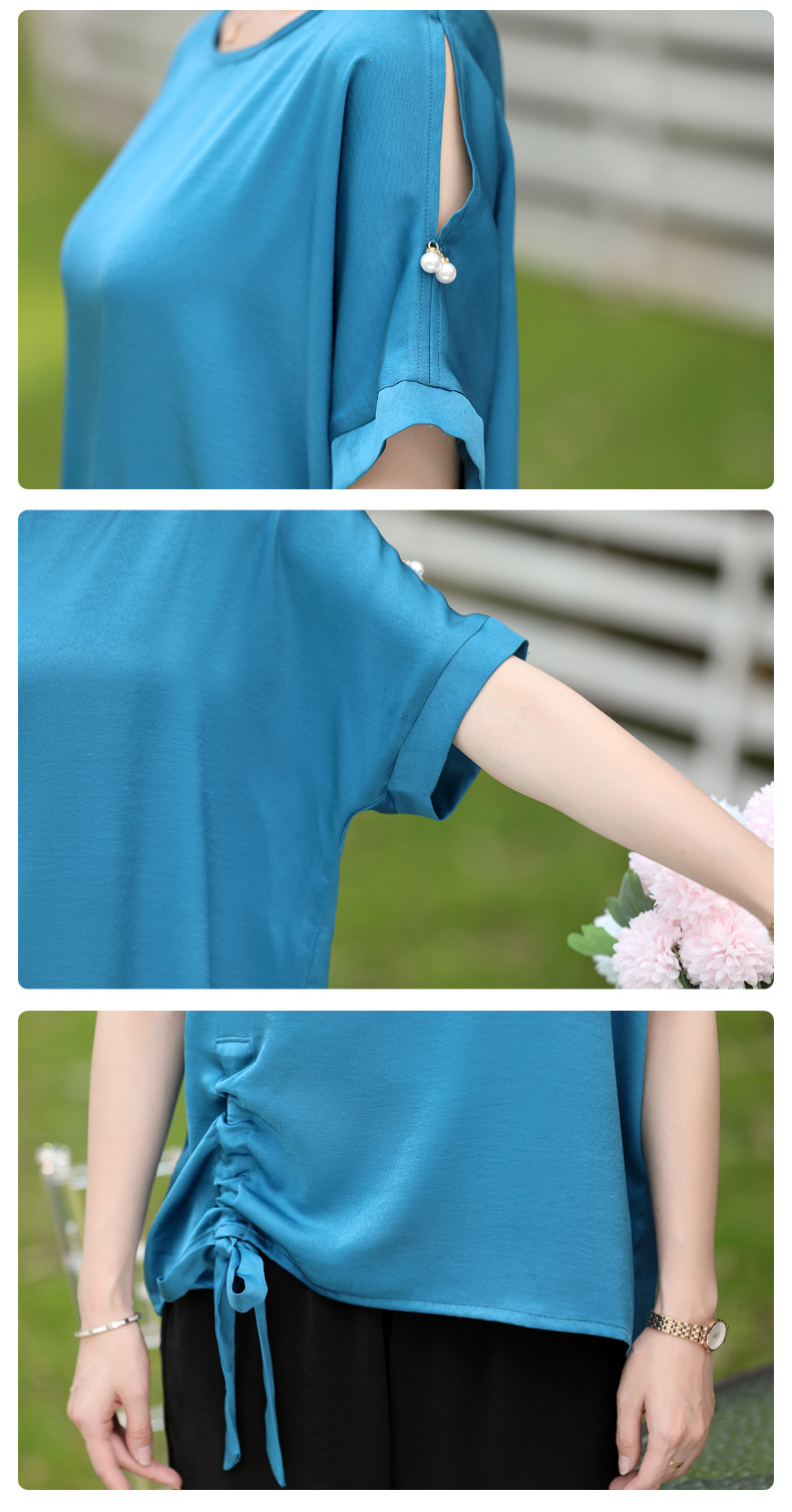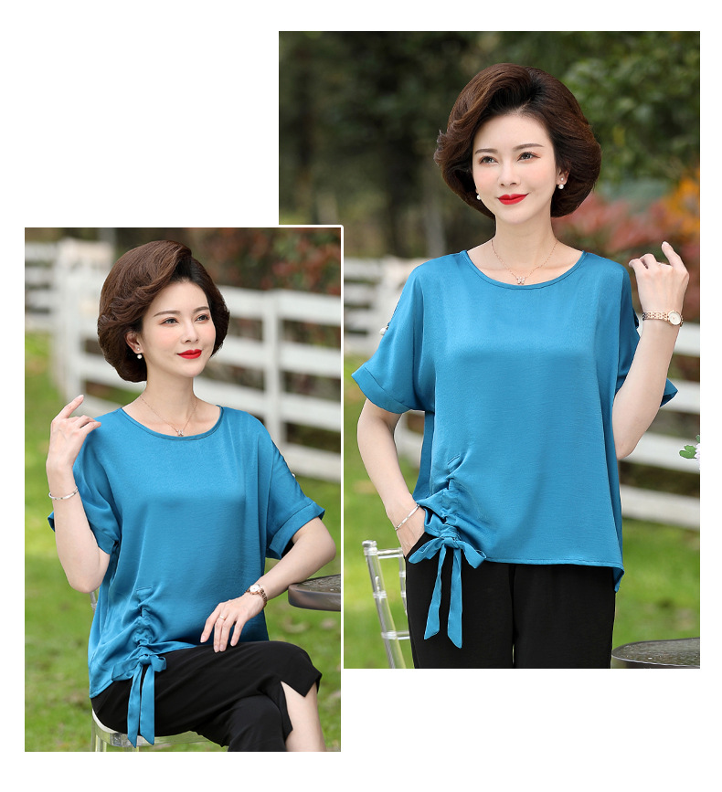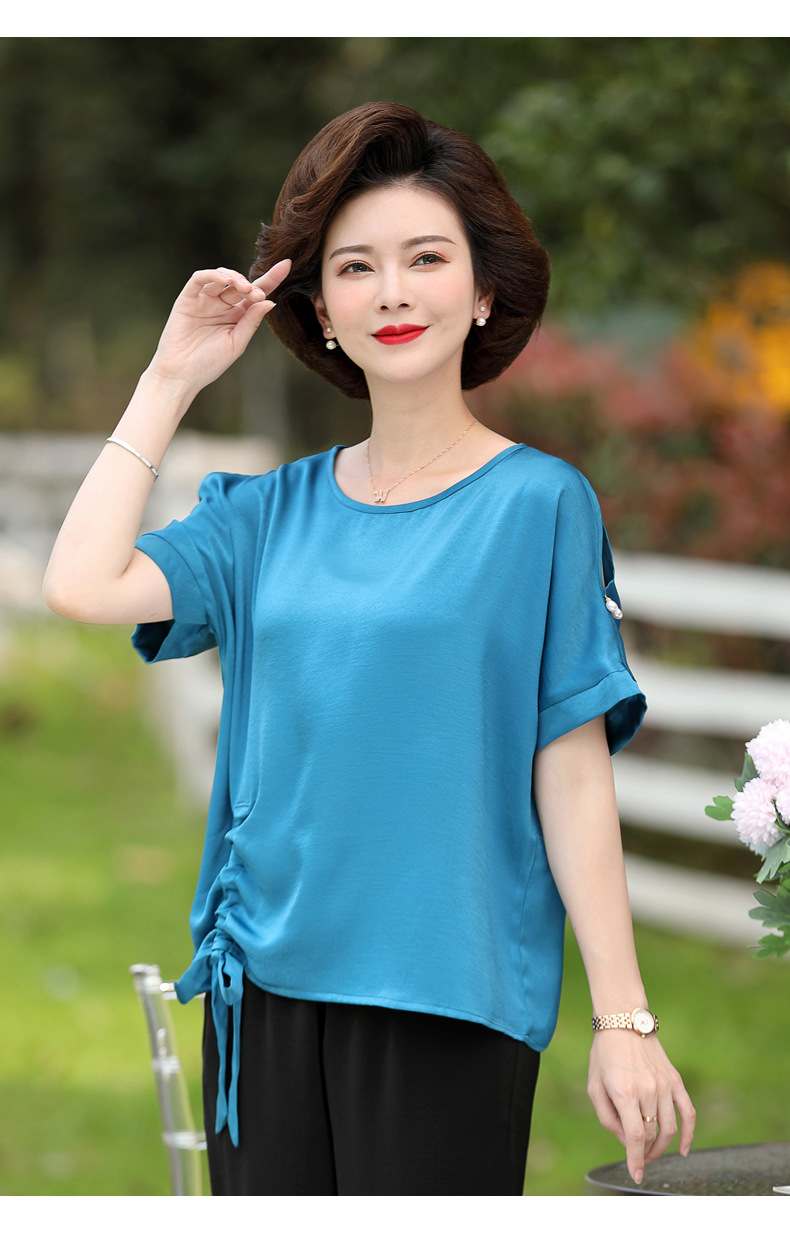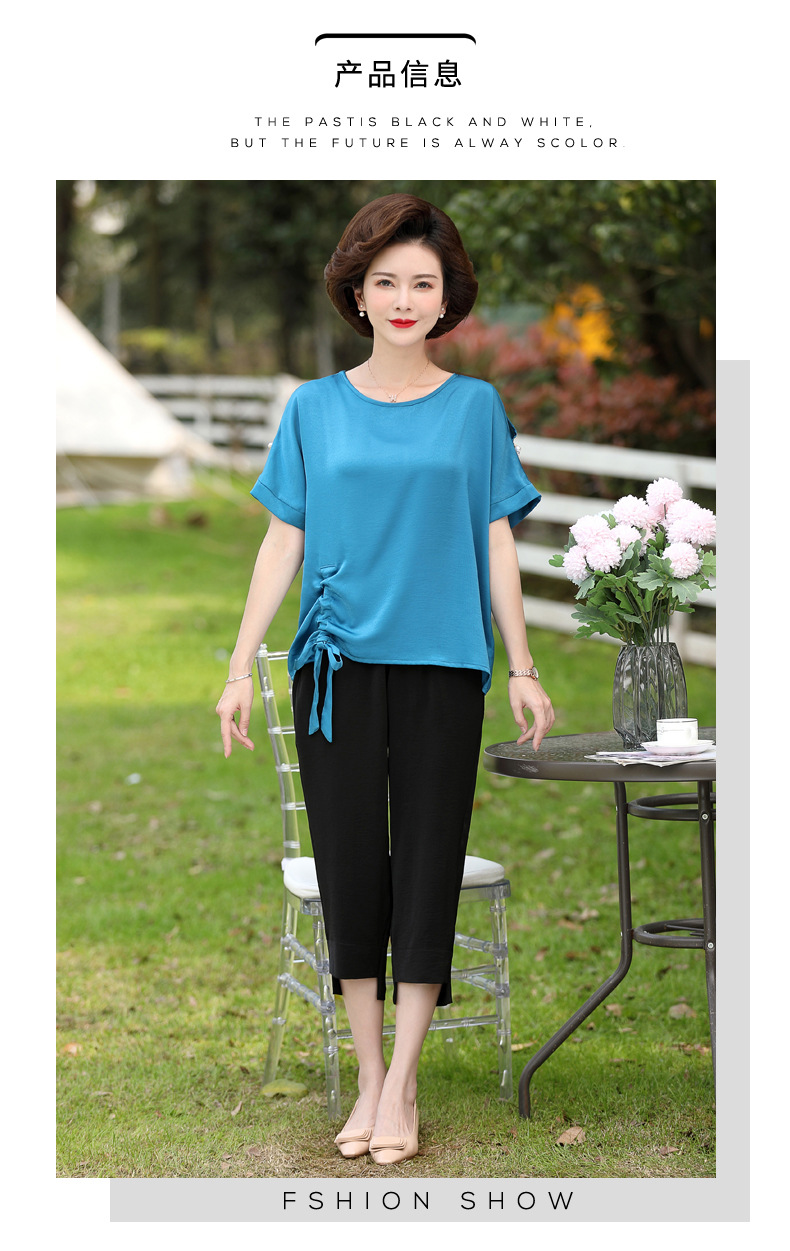 YMS-NAF2257新款缎面中年妈妈夏装两件套装