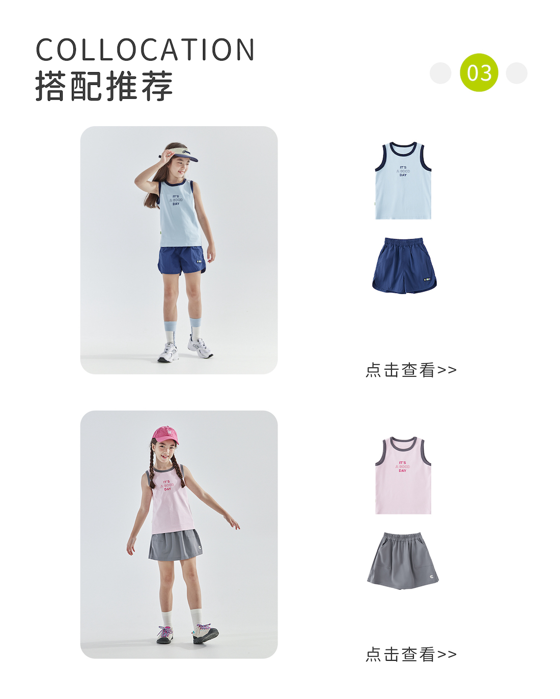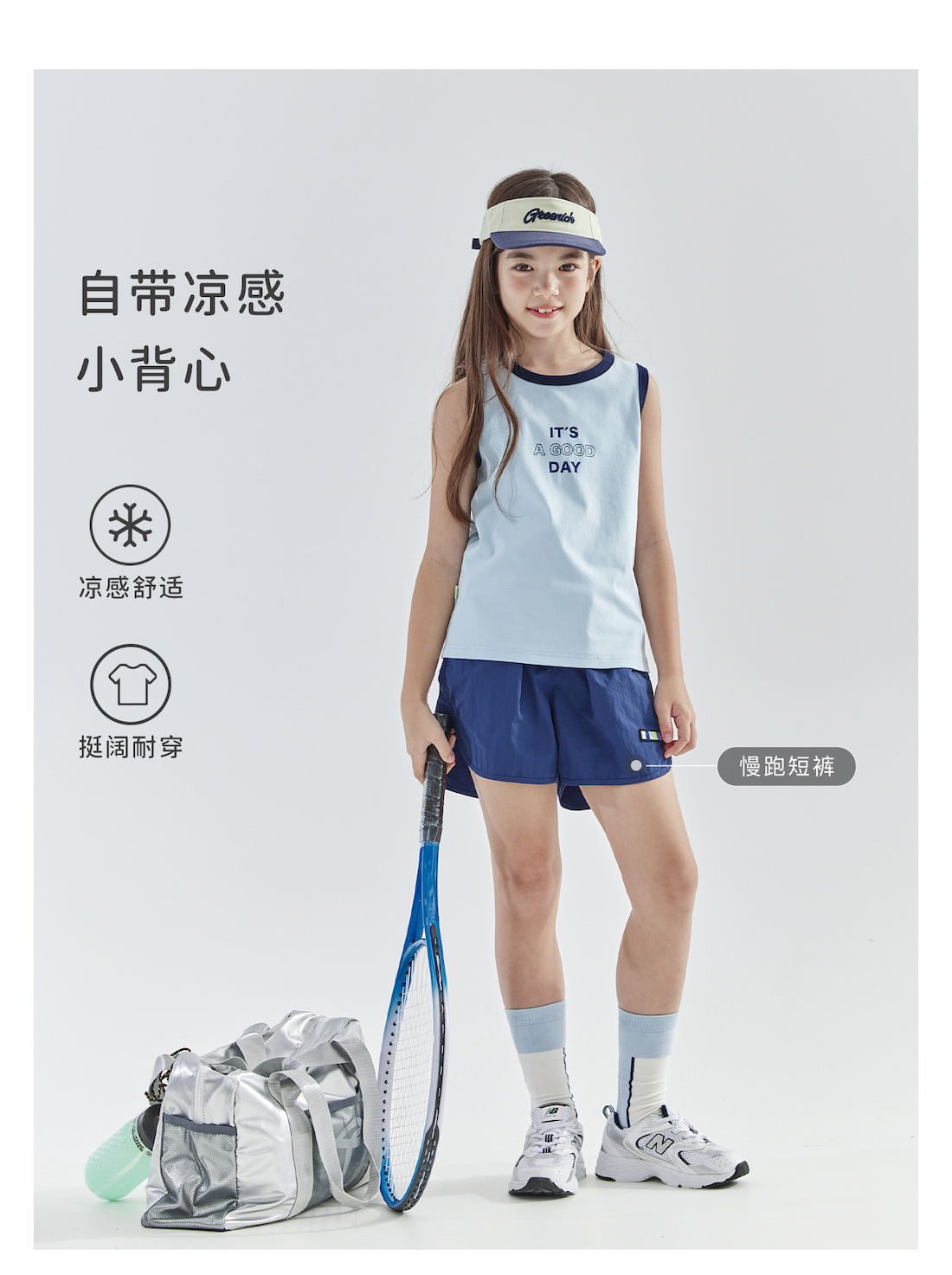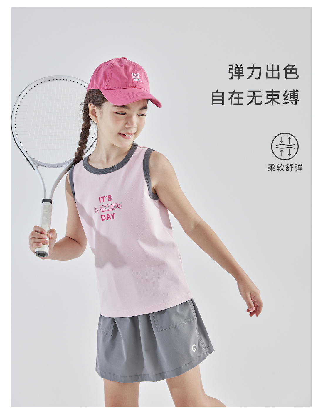 cicochild2025年夏季新款女童撞色包边背心亲子凉感运动T恤