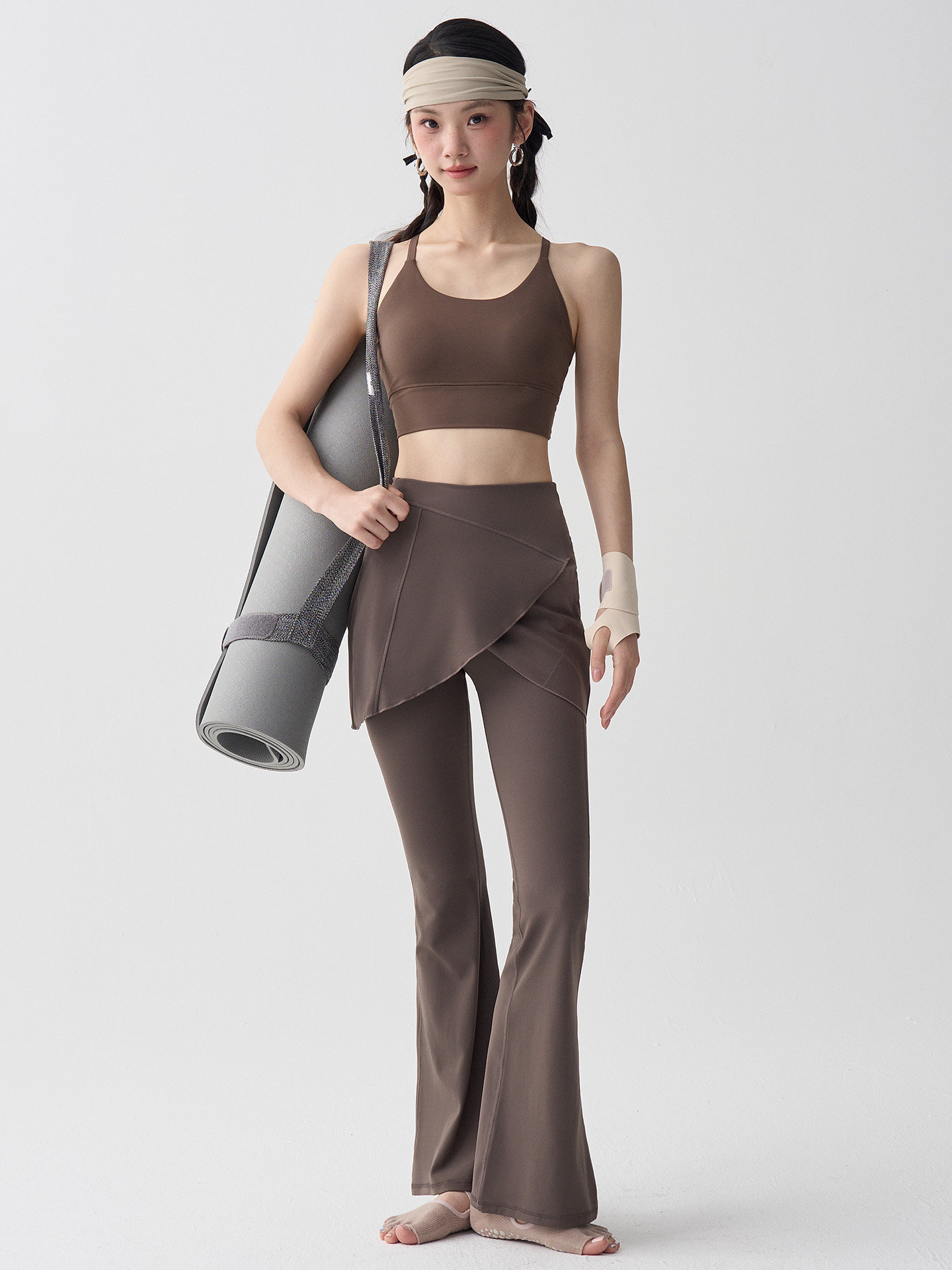 跃牌【美西西系列】现货假两件时尚瑜伽裤微喇显腿长运动屁帘喇叭裤CK-9910