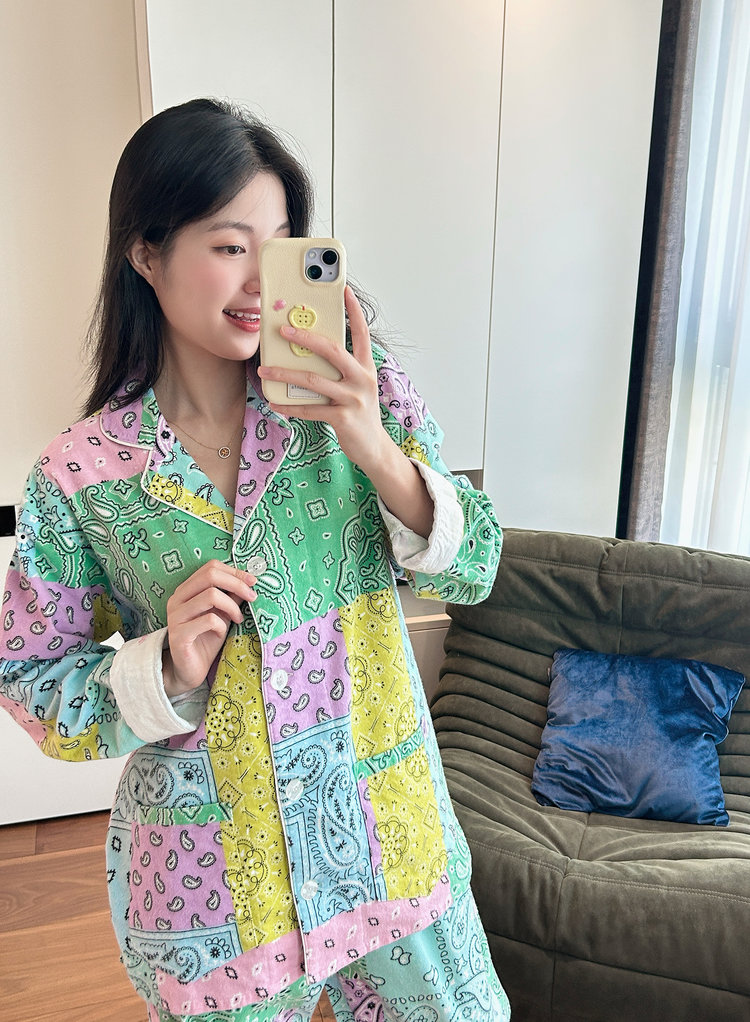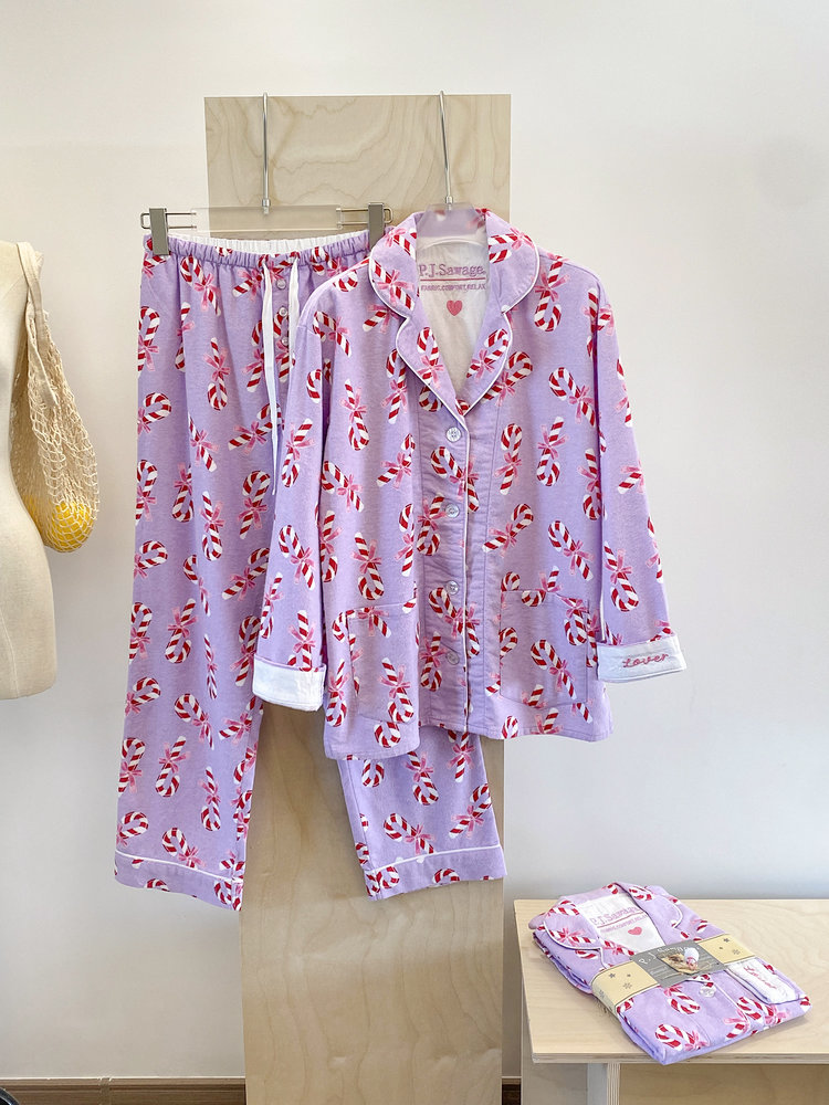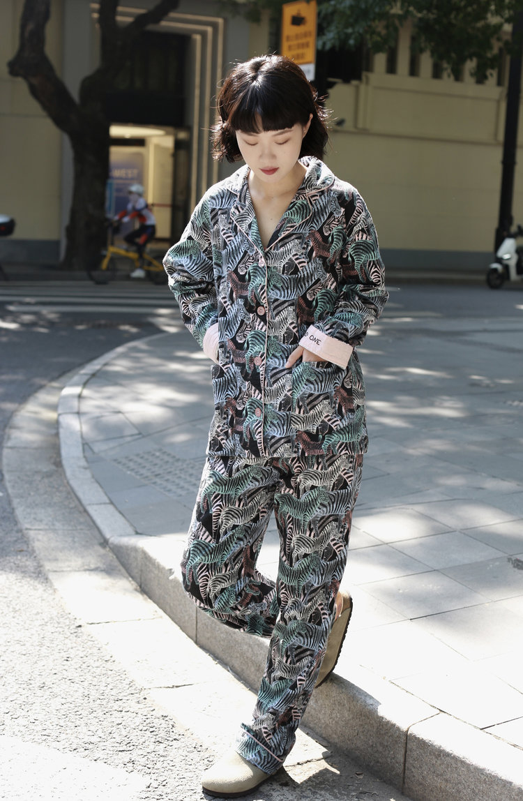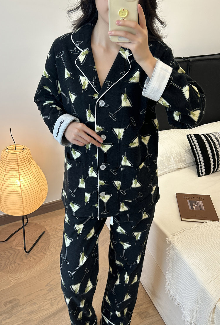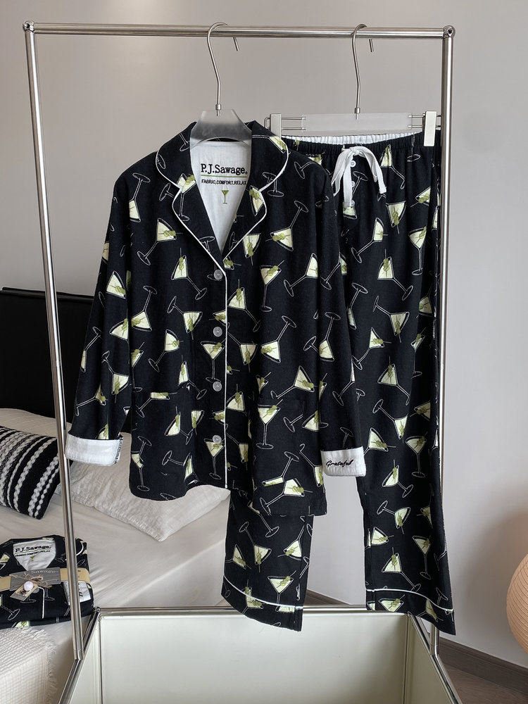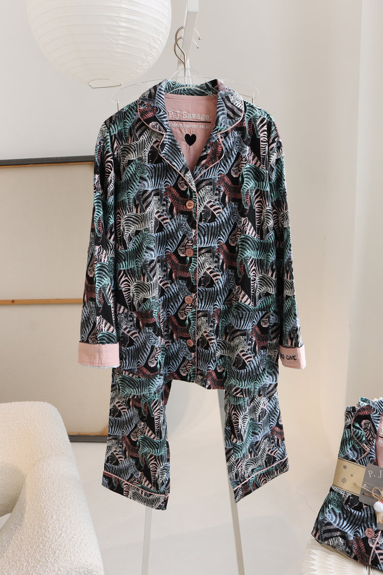 P.J.Sawage秋冬双面磨毛保暖睡衣套装女 轻柔棉质月子服家居服pjs
