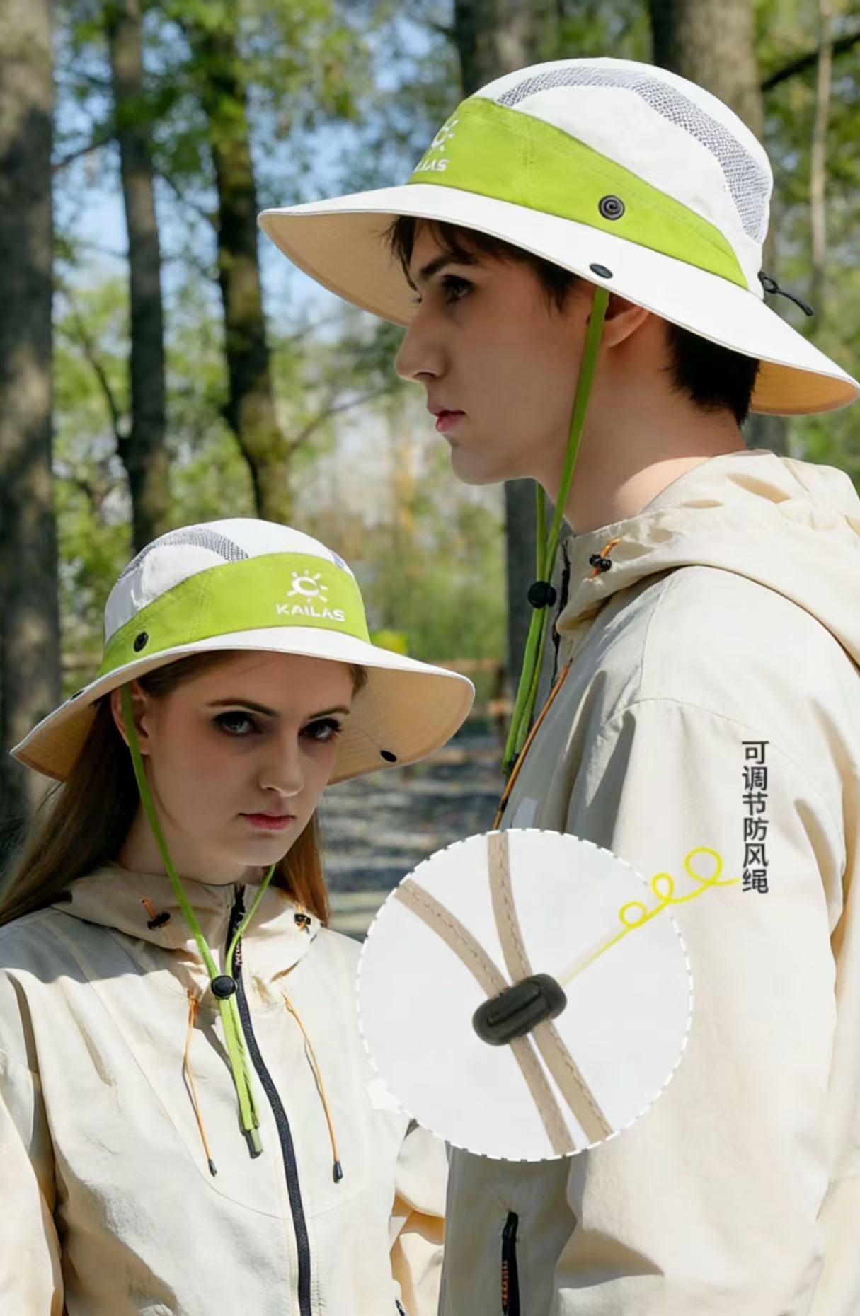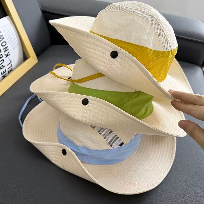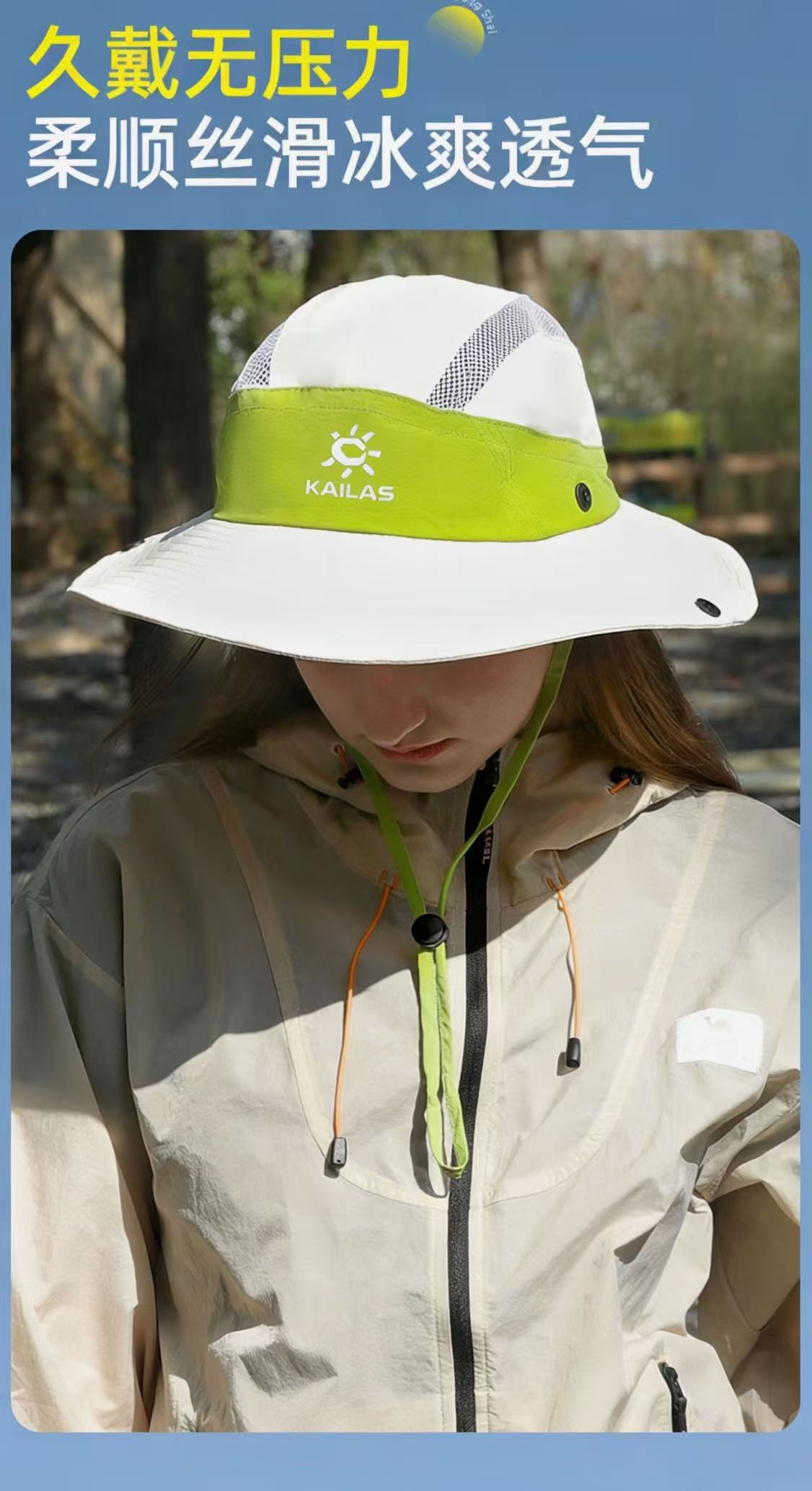 冰丝材质柔顺丝滑,还防泼水面料,久戴完全不压头,网眼设计透气不闷汗,夏天戴一整天都清清爽爽,还有可调节防风绳,大风天也不怕吹飞,徒步、露营、钓鱼、通勤都能用!