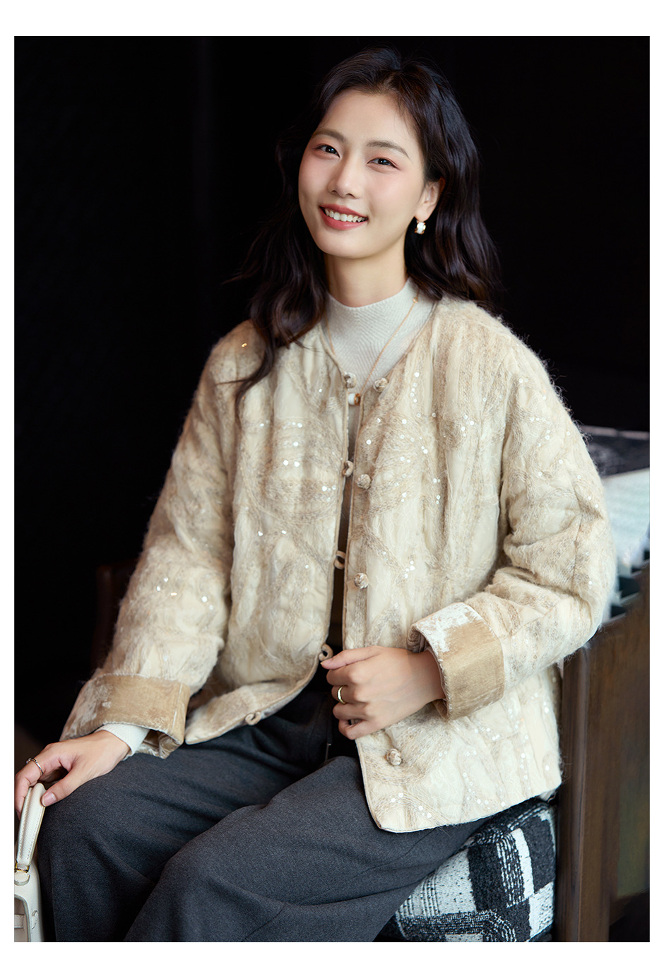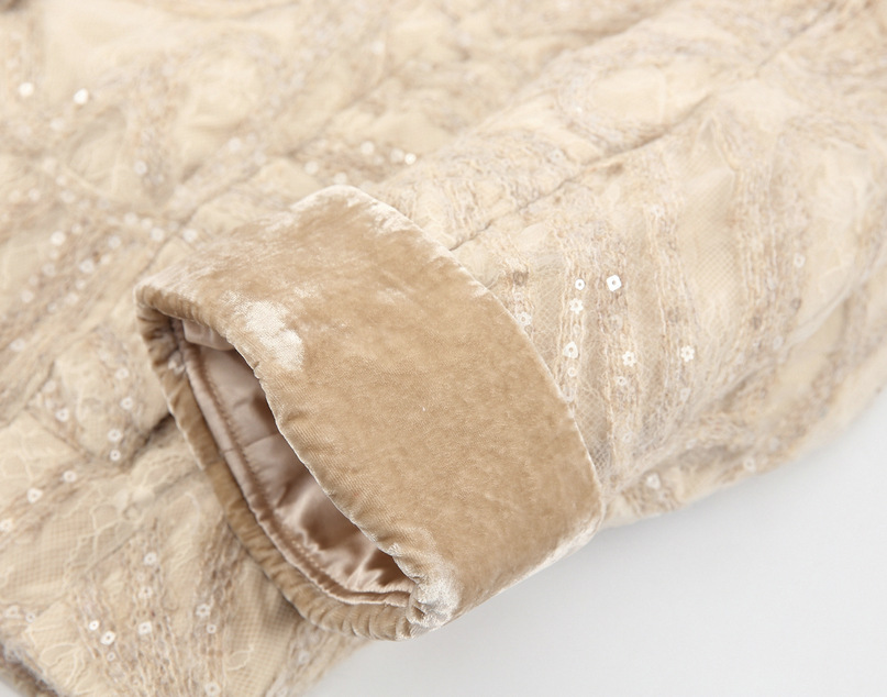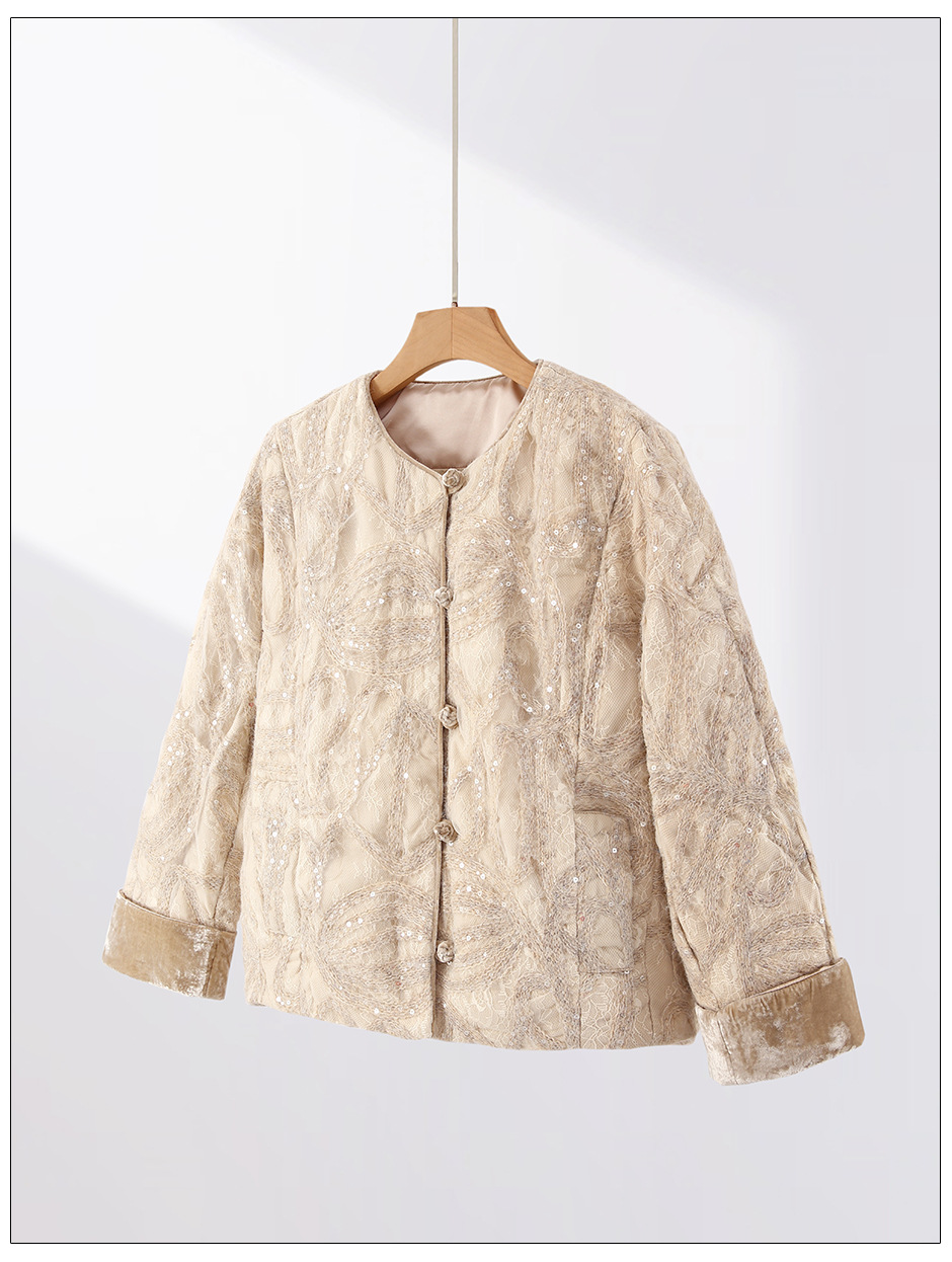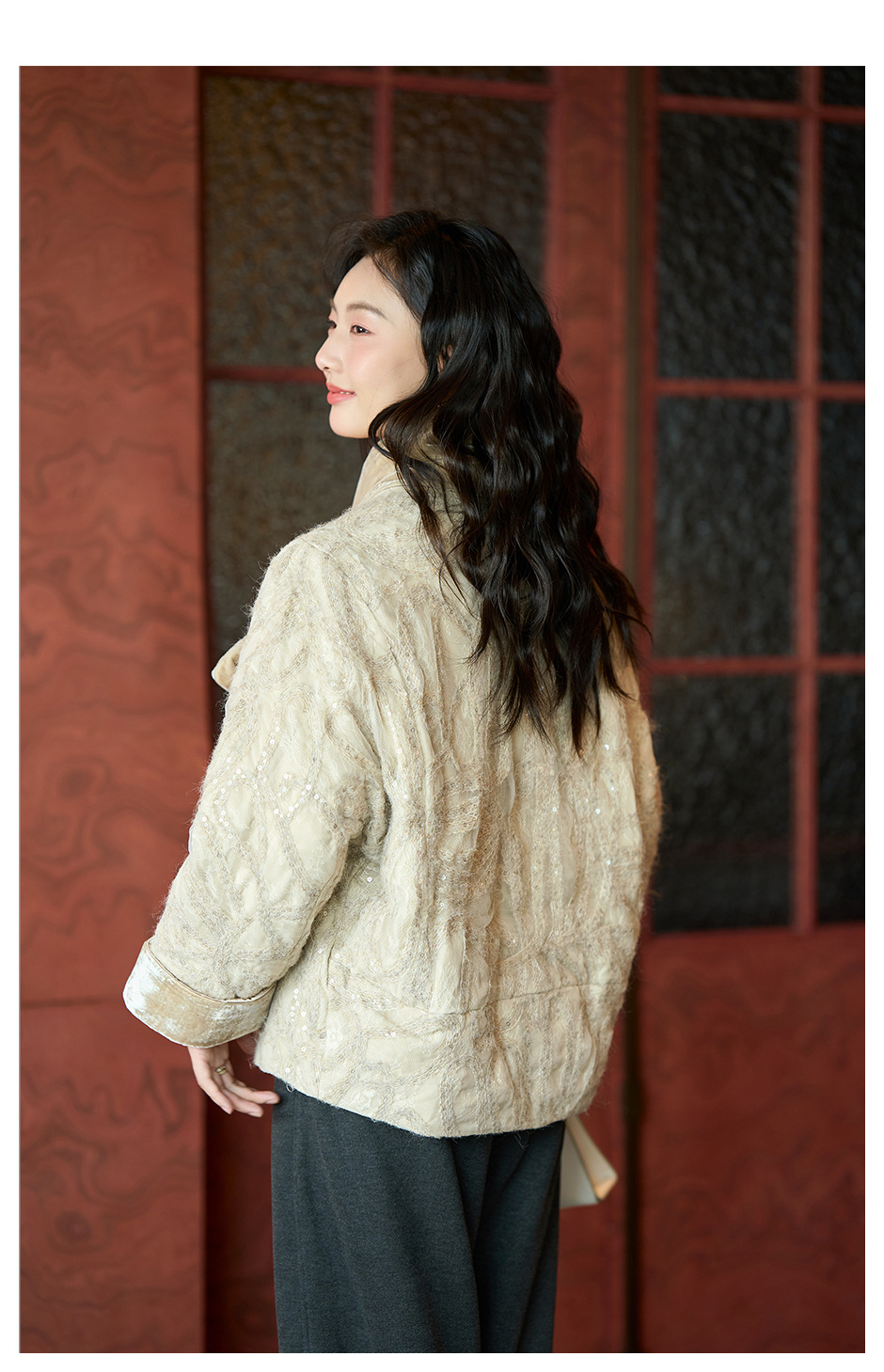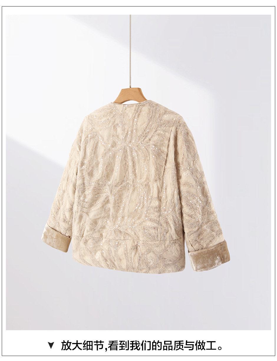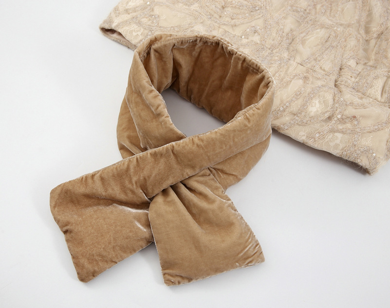 丁摩 桑蚕丝亮片白鹅绒外套女冬送围巾丝绒拼接保暖时尚短款5ZF-76070